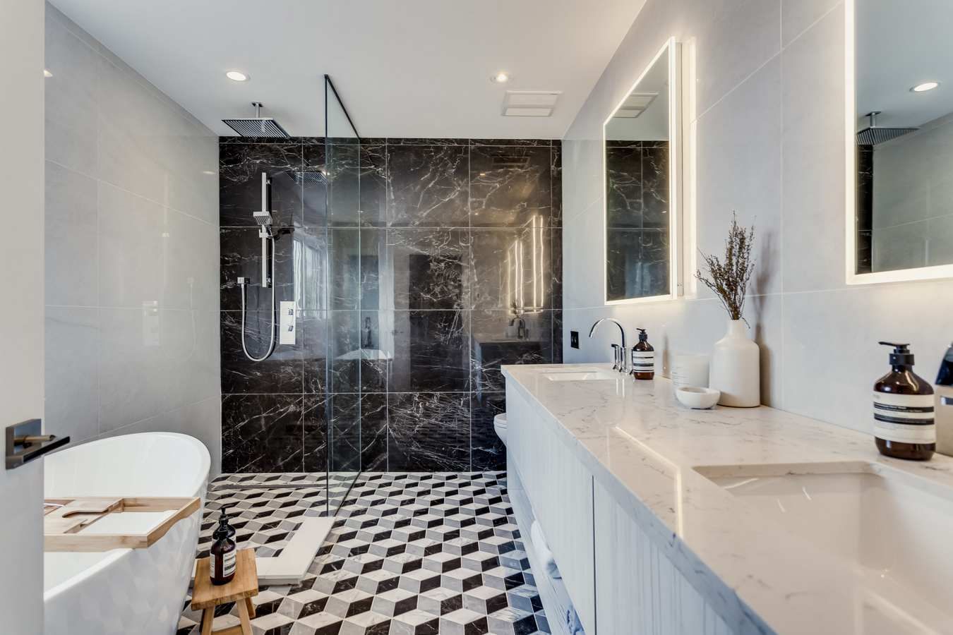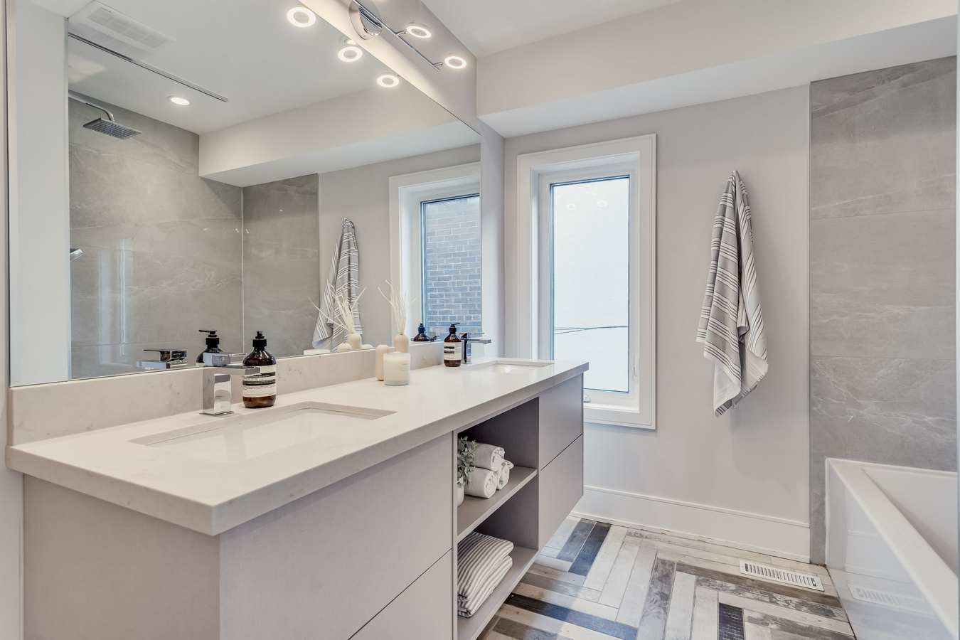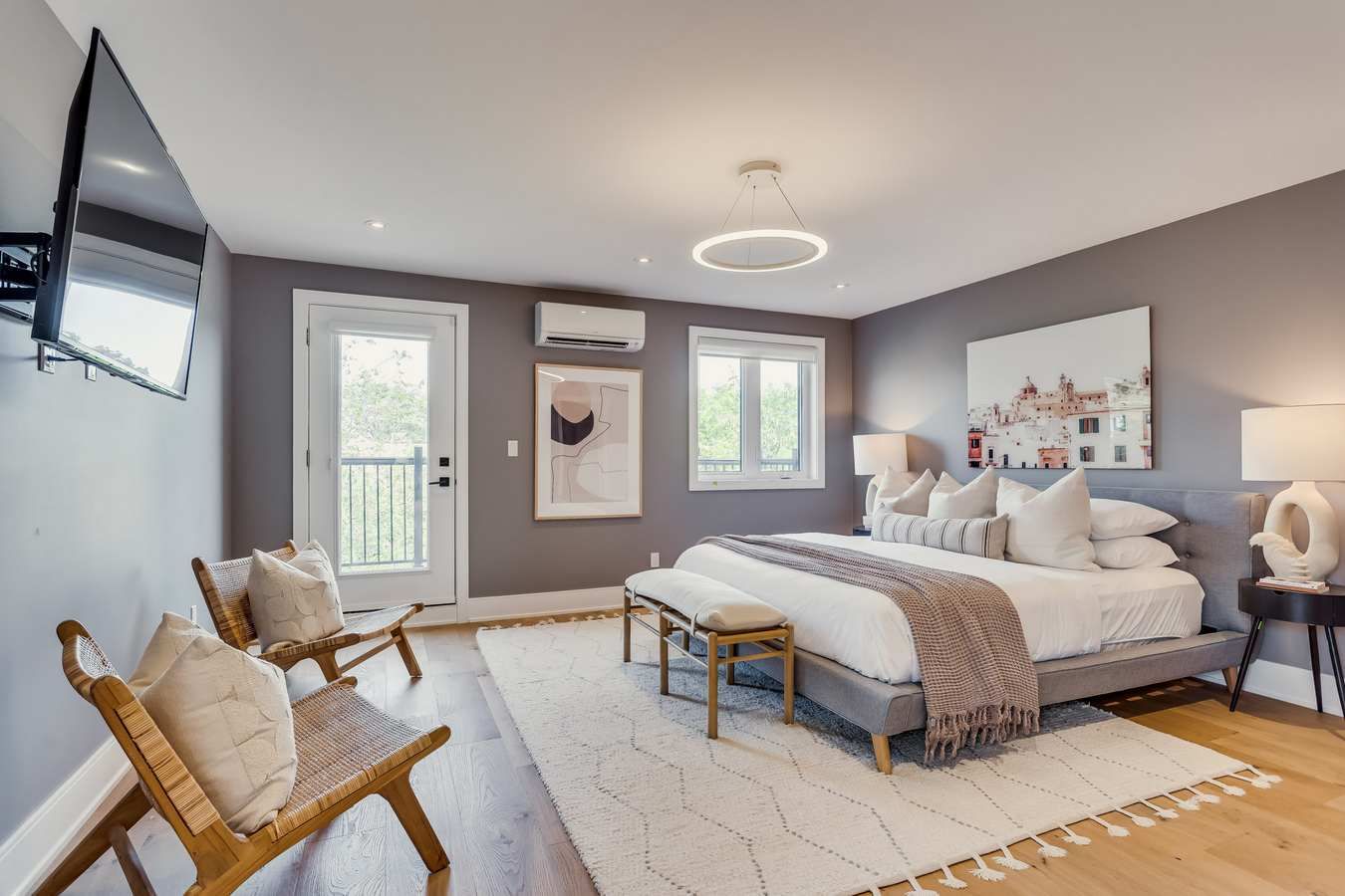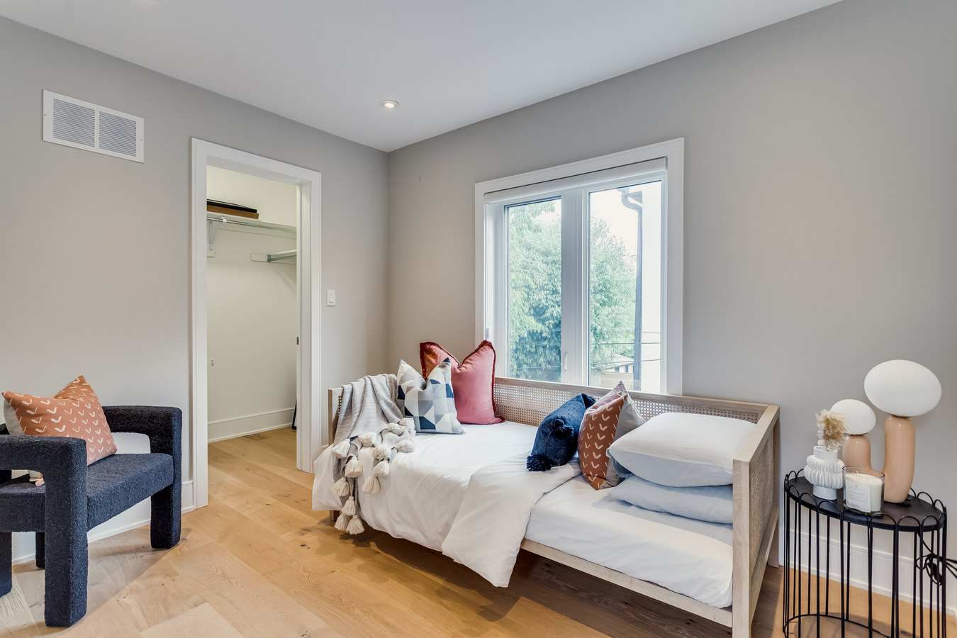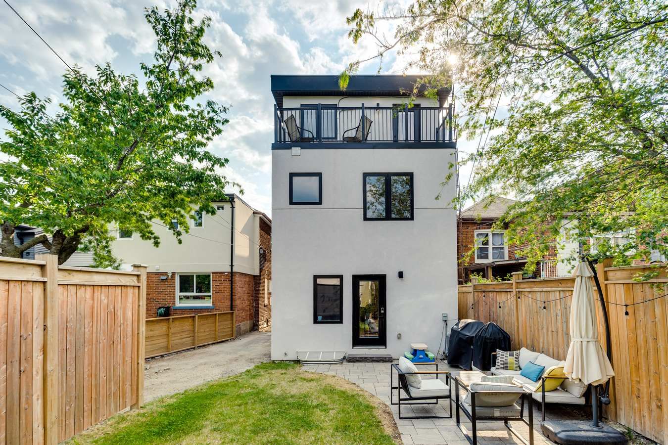 Rarely offered custom modern home with 4+1 beds and 5 baths. Approximately 3,200 sq ft of living space including close to 2,500 sq ft above grade + spacious lower level with soaring ceilings. Two-car parking including legal front pad and large garage at back. Huge custom kitchen with walk-in pantry and island. Large windows throughout enabling tons of natural light. High-end appliances, cabinetry and finishes from top to bottom. Bonus third floor office/study area and sizeable closets in all bedrooms. Shows like a model home. Walk to St. Clair restaurants and shops, Cedarvale Park, Wychwood Barns, transit, and much more.Special backyard system installed to allow for driving in/out of garage over grass. Portable fence for backyard enclosure exists and is included. 3rd flr ductless a/c unit.