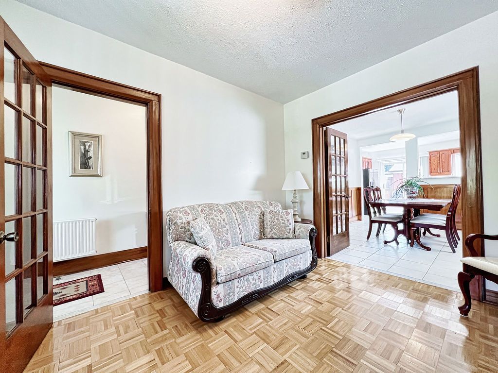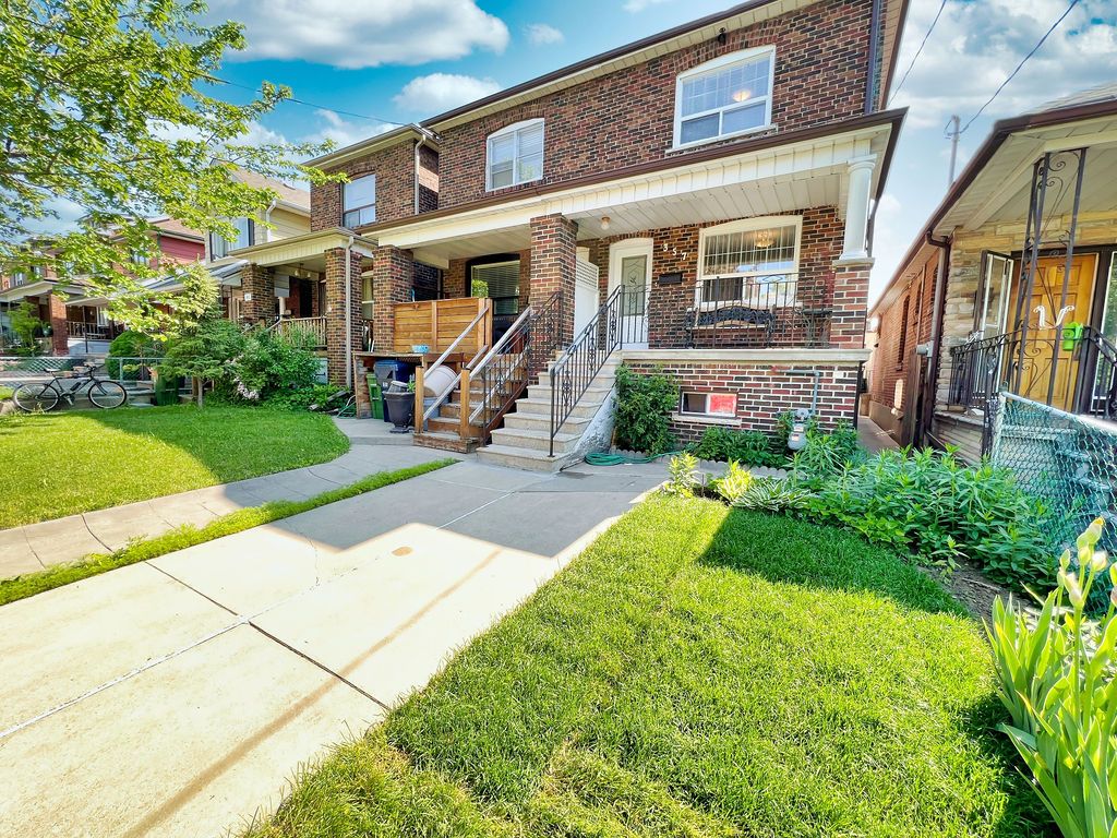 Fantastic Semi in great neighbourhood! Lovingly maintained by the same family for the last 25 years. True pride of ownership! Super clean and very well maintained. Loads of original charm including baseboards, trim, French doors, wainscoting, oak stairs and banister, etc... Perfect for single family, investment, or live-in and rent. 3rd bedroom on 2nd floor currently a kitchen, Seller will remove cabinetry if necessary. Awesome basement with over 7 feet height, with large rec room complete with Wet Bar, cantina, large laundry, and walk out to the yard. Basement apartment or in-law suite a possibility (buyer to do due diligence) Solid 1.5 block garage (19ft x 14.5 ft) with brick facade and mezzanine for lots of storage. Private concrete deck (13.5 ft x 15 ft) ideal for summer BBQ's and entertaining. Walk to schools, TTC, shops, etc... Don't miss this opportunity!Property used to have front yard parking which is no longer valid. Buyer may attempt to re-apply. Buyer must do their due diligence with regards to this.