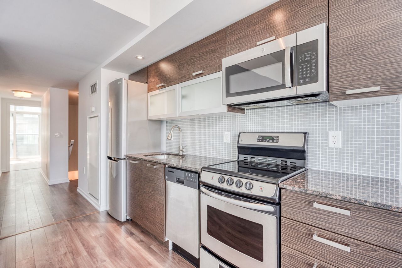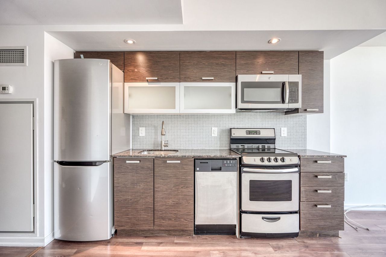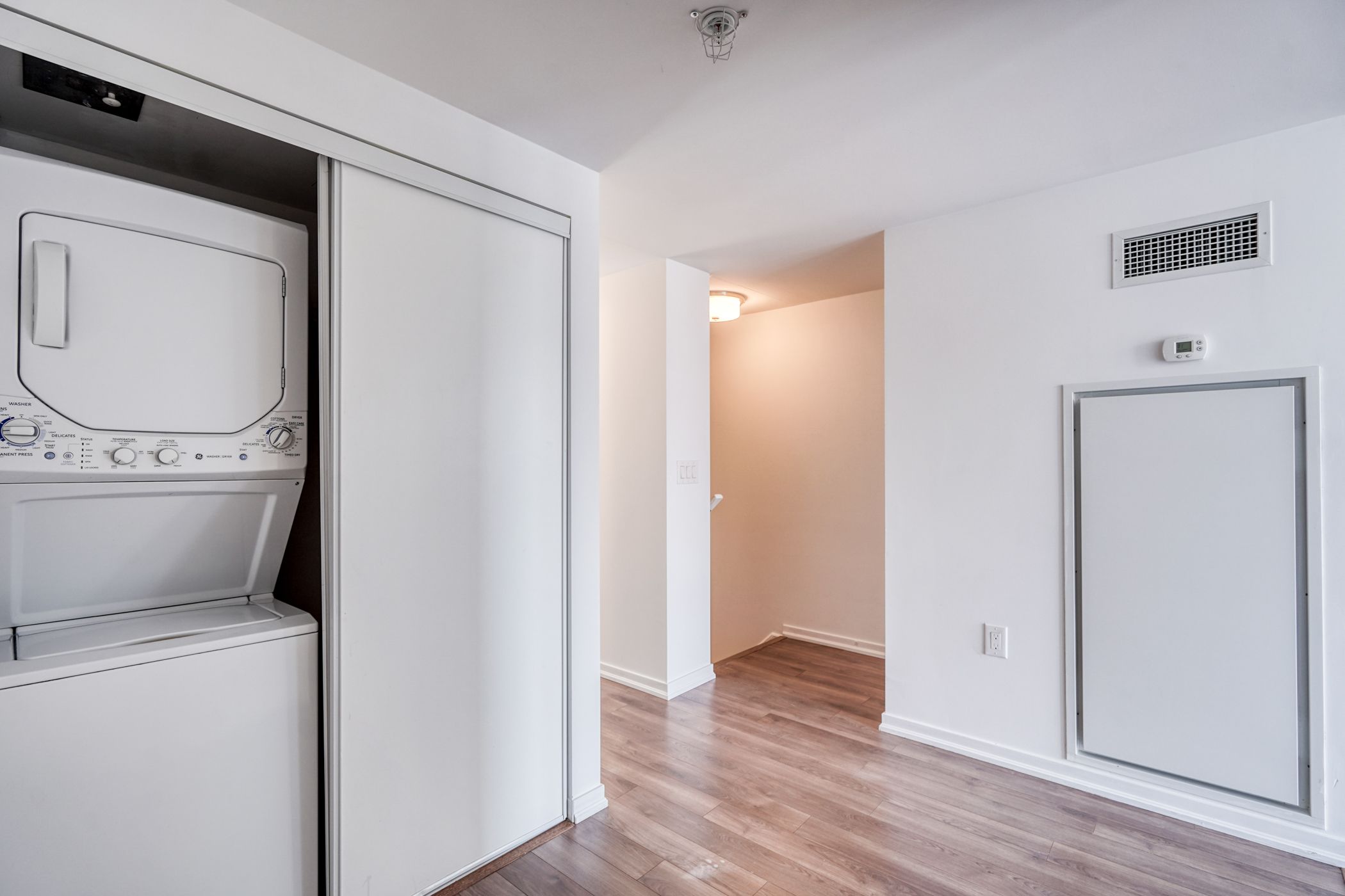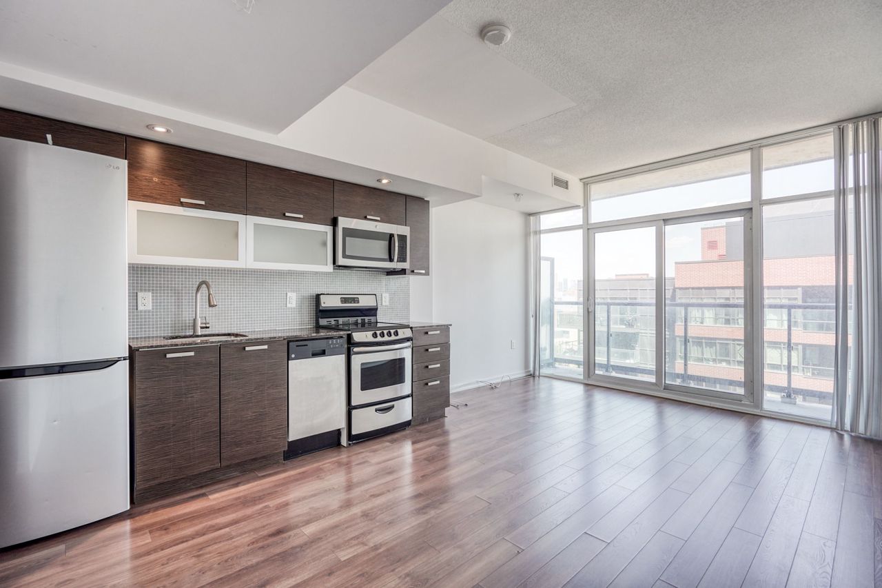 Trendy Queen West 1 Bedroom Plus Den With Balcony. Windows On Both Ends Of The Unit. Floor To Ceiling Windows. Bright And Spacious Layout. Separate Area For Your Sofa And Tv. Located In The Heart Of Queen West, You'll Have Easy Access To All The Best Shopping, Dining, & Entertainment Options That The Area Has To Offer. Steps To Ttc, Easy Access To The Gardiner,Existing Stainless Steel Appliances (Fridge, Stove, Microwave, Dishwasher), Existing Stacked White Washer/Dryer and existing window covering. Freshly pained. Unit comes as is. ****Heat Pump is owned! NO rental fee!!***