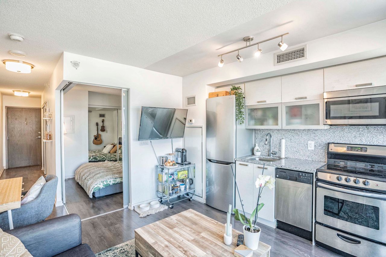 when rent continue to sky rocket, why not owned? this affordable 1 bdrm unit on queen west may fit your budget. w north facing balcony where you can see the park & the drake hotel while cooking or just sitting on your couch. the unit comes w fairly good size locker that can fit patio chairs & 4 winter tires. all appliances, blinds included. pets welcome. you know what queen west has to offer! this is your chance to make your ownership dream come true.previously staged. unit is vacant. take advantage of all the amenities in the bldg such as gym, guest suites, bike storage, 24 conc. don't be a fomo & walk to all the wknd markets & festivals this summer.