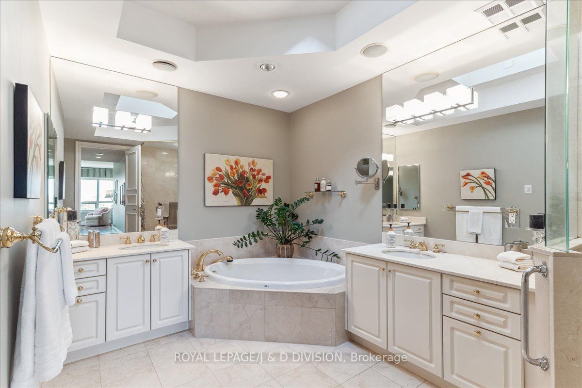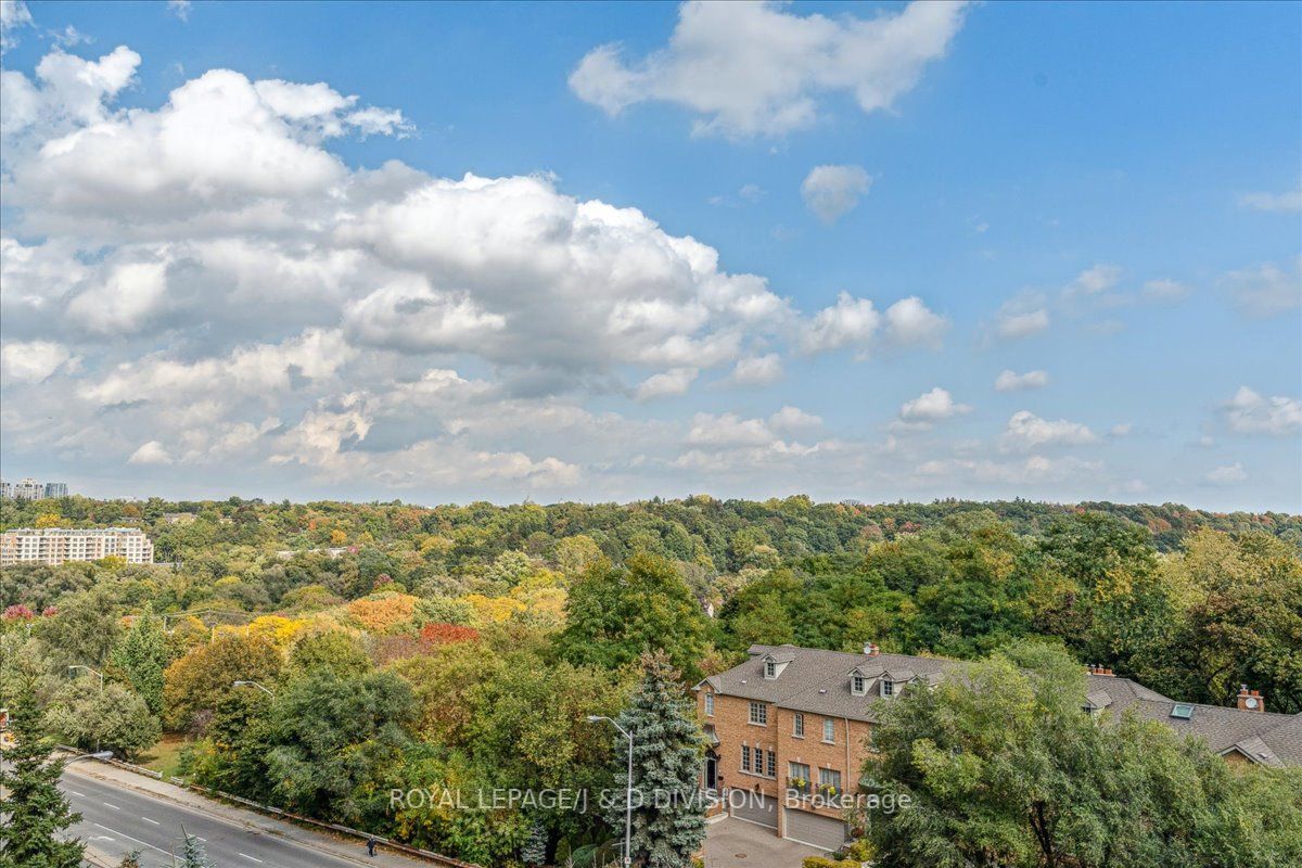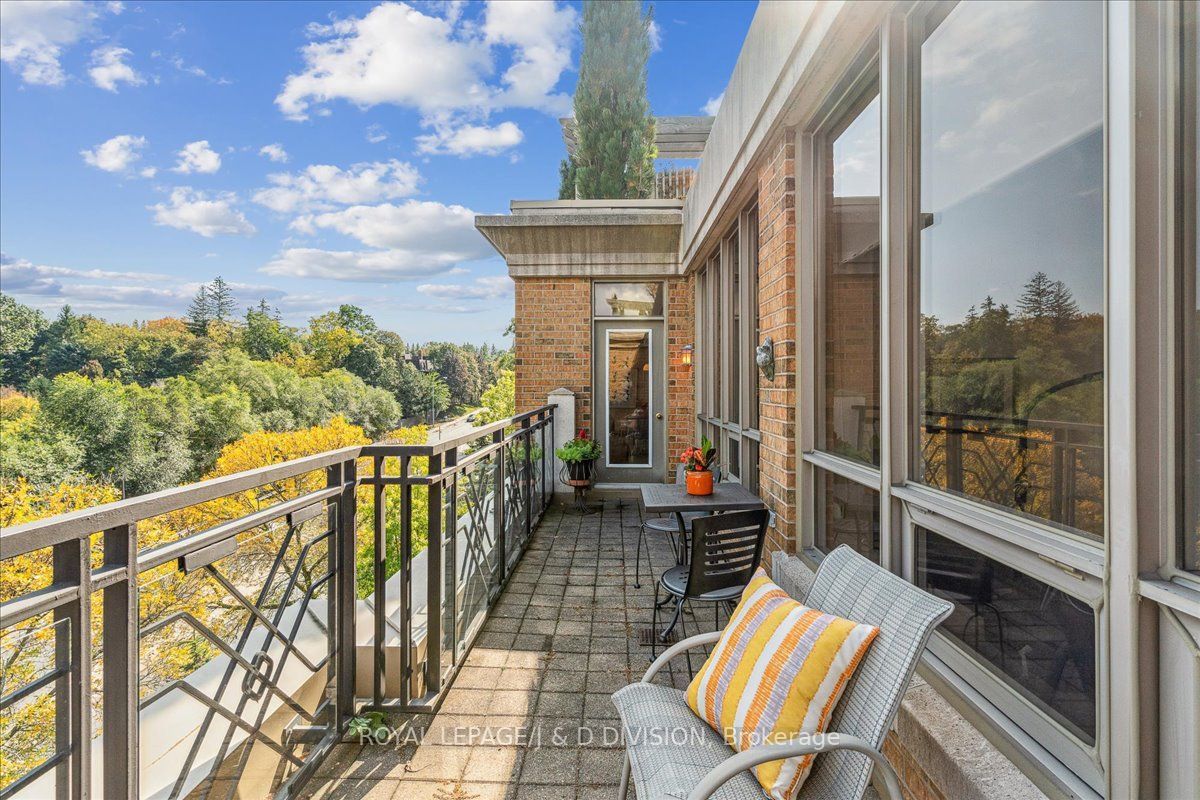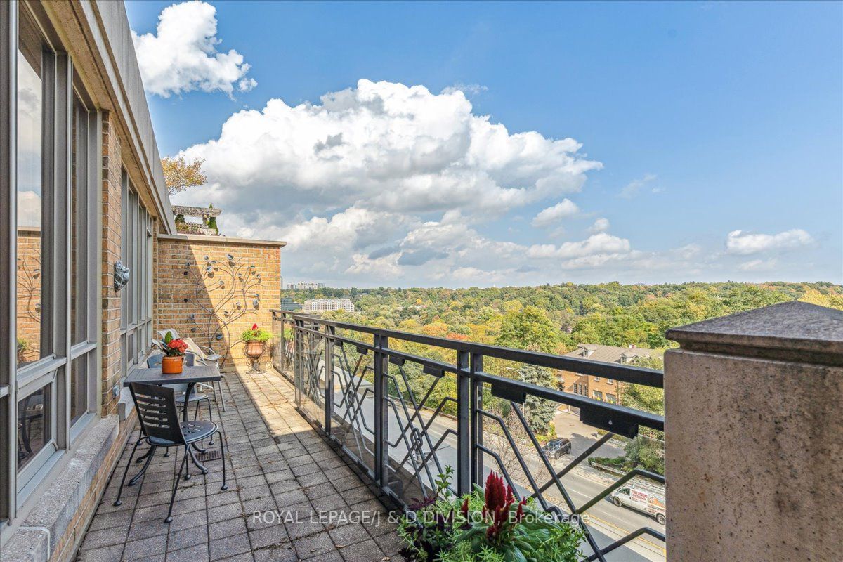 Ideally located 2444 sq. ft spectacular penthouse suite overlooking Hogg's Hollow. Soaring ceilings, spacious and functional layout with luxurious hardwood floors, spacious rooms, renovated eat-in kitchen, principal bedroom with 6 piece ensuite and skylight and two enormouse walk-in closets. Large locker room, private hobby room, 2 wine cellars & 2 prime parking spots. Enjoy the 5-star concierge, saltwater pool, well-appointed gym, guest suites and parking+++