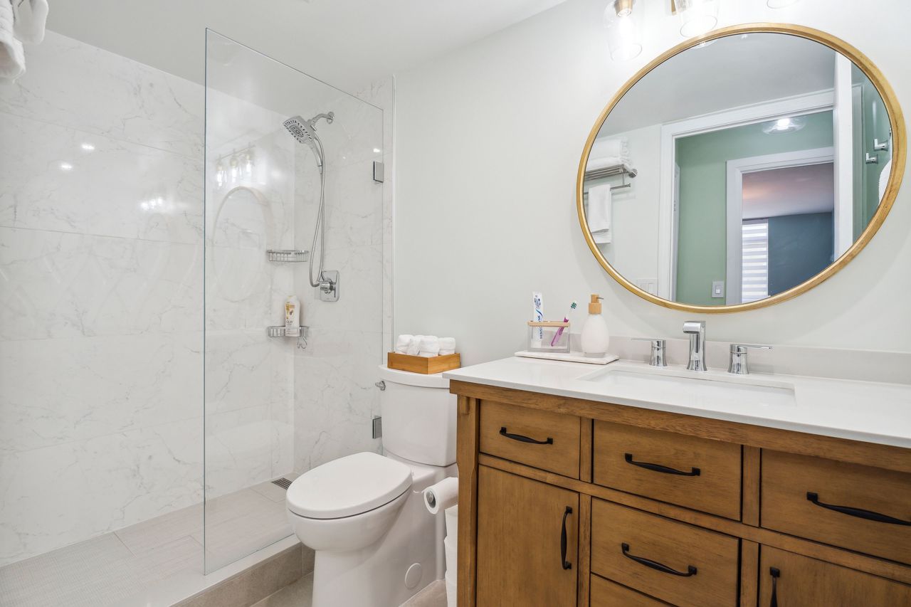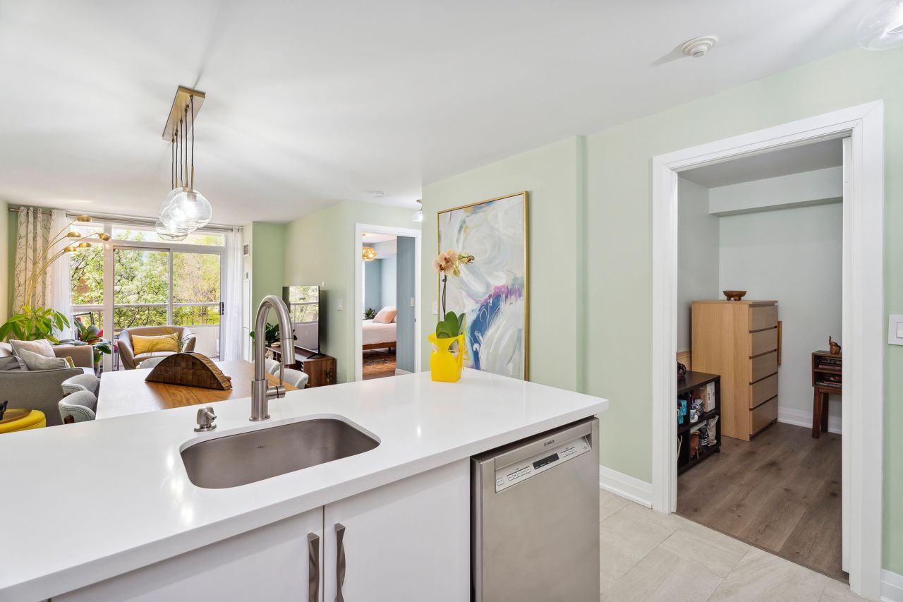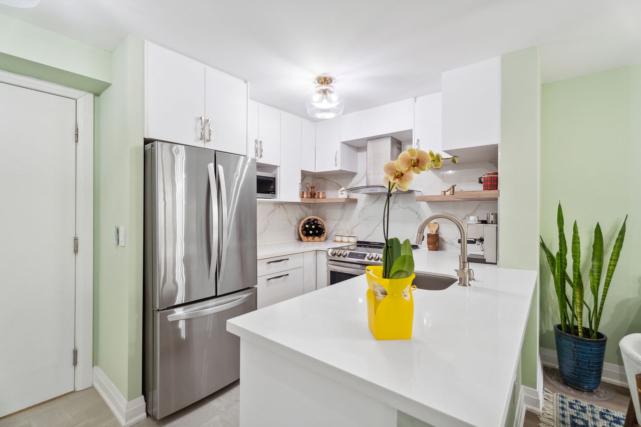Welcome to this magnificent 1+1 condo apartment in the Village at Guildwood, a Tridel development in Scarborough Village. This unit boasts over $50,000 in renovations completed in 2021, featuring a modern kitchen with quartz countertops and backsplash, stainless steel appliances and tile floor. The bathroom is a spa-like oasis with a glass door shower, large wall tiles, linear shower drain and quartz vanity. Enjoy the spacious living room with wide plank vinyl flooring, remote controlled blinds and a walk-out to the balcony with its own interlocked vinyl flooring. The bedroom is bright and cozy with a large window and a closet. The den can be used as an office or a guest room. Also redone were all the light fixtures, window coverings and paint. The building offers great amenities such as a party room, a media room, visitor parking, security guard and more. Don’t miss this opportunity to own this stunning condo in a prime location! ***parking spot currently rented for $60 per month***