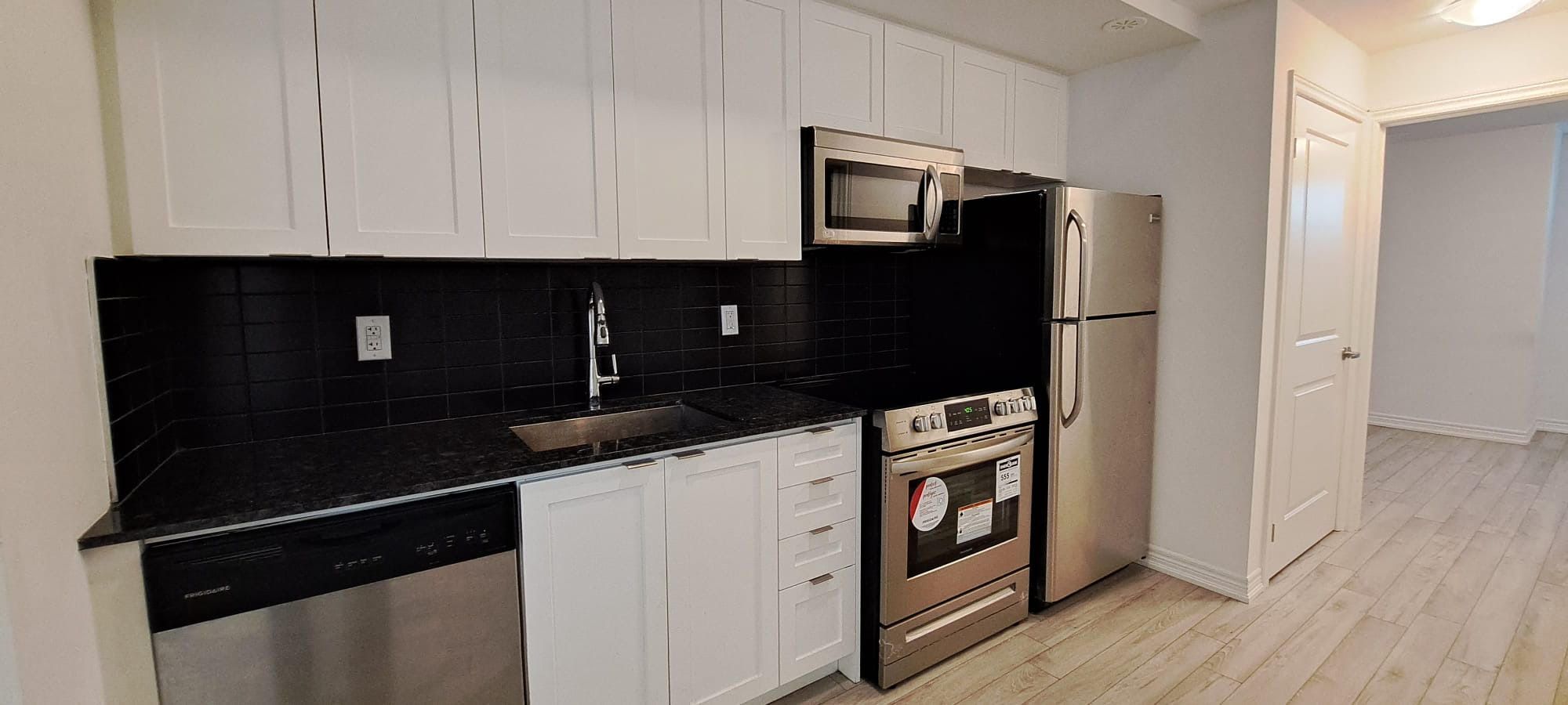 Attention Investors & 1st Time Buyers!! Open Concept Main Floor With Gourmet Kitchen With New Cabinets, Granite Counter, Stainless Steel Appliances, Ceramic Backsplash, 9 Ft Ceilings, New Laminate Floors throughout, Spacious Primary Bedroom W/Large Double Closet! Includes En-suite Laundry,1 Parking, 1 Locker, 1 Bicycle Rack, Spacious Patio, Rear Gate To York Beltline Trail. Walking Distance To Eglinton West Subway And A Short Drive To Yorkdale. Easy Access To Hwy 401 & Allen Rd.Existing Electric Light Fixtures And Existing Window Coverings. Frigidaire Stainless Steel-Fridge, Dishwasher, Stove, Over-The-Range LG Microwave. Frigidaire Washer & Dryer.