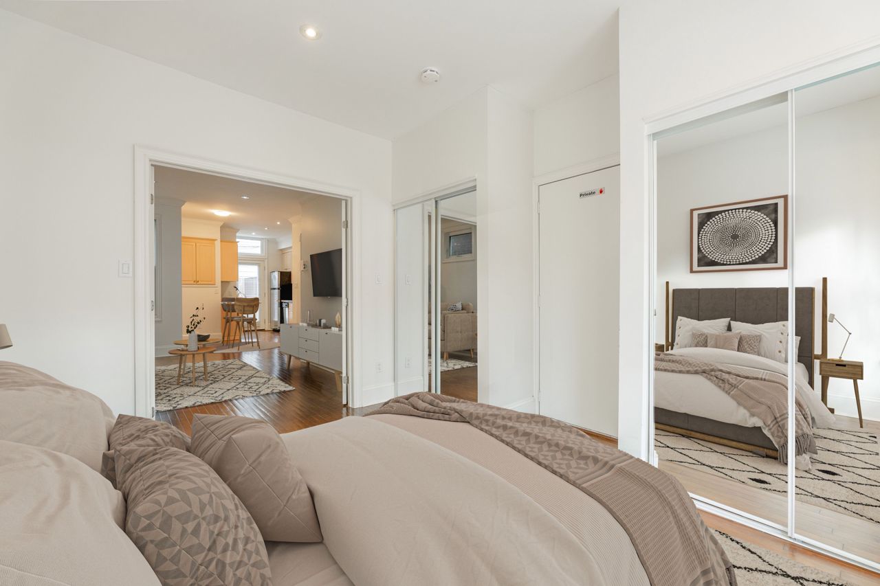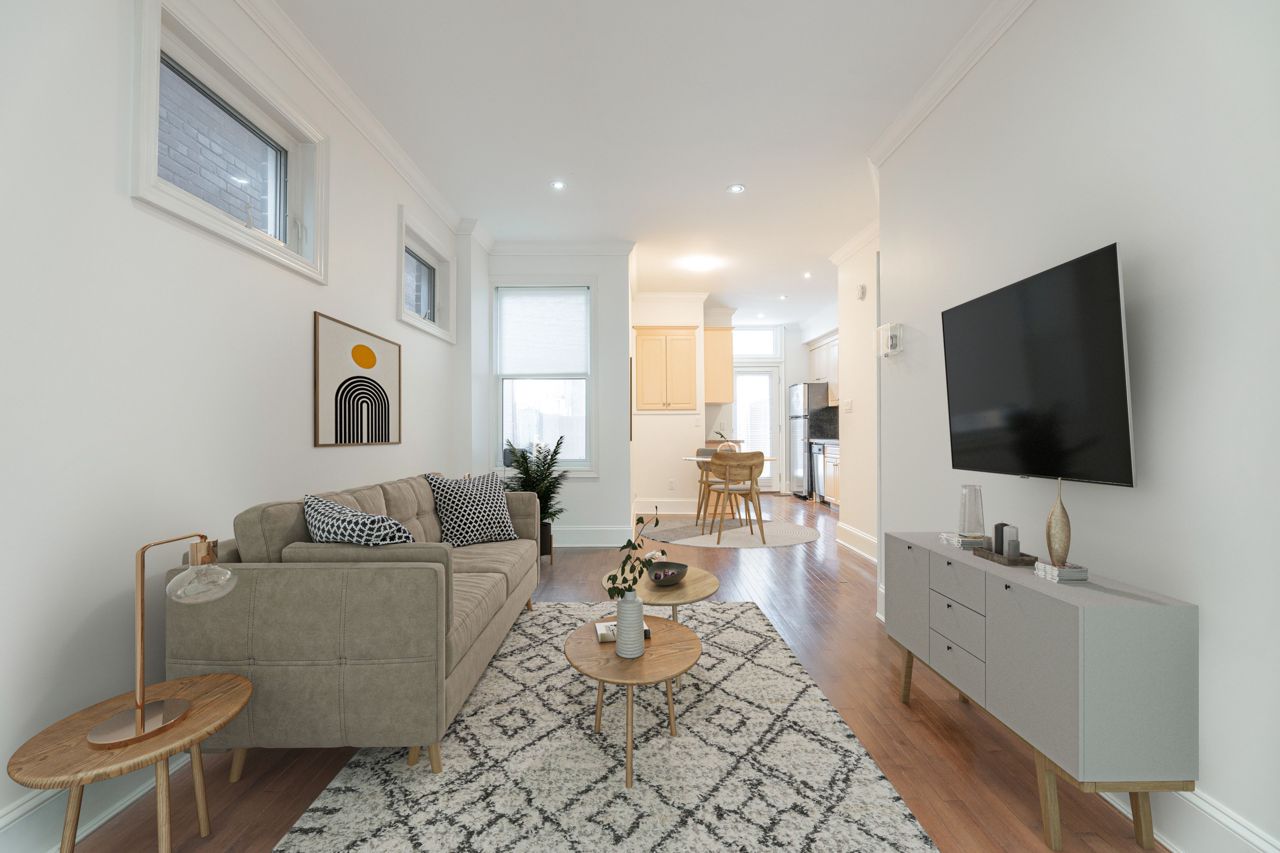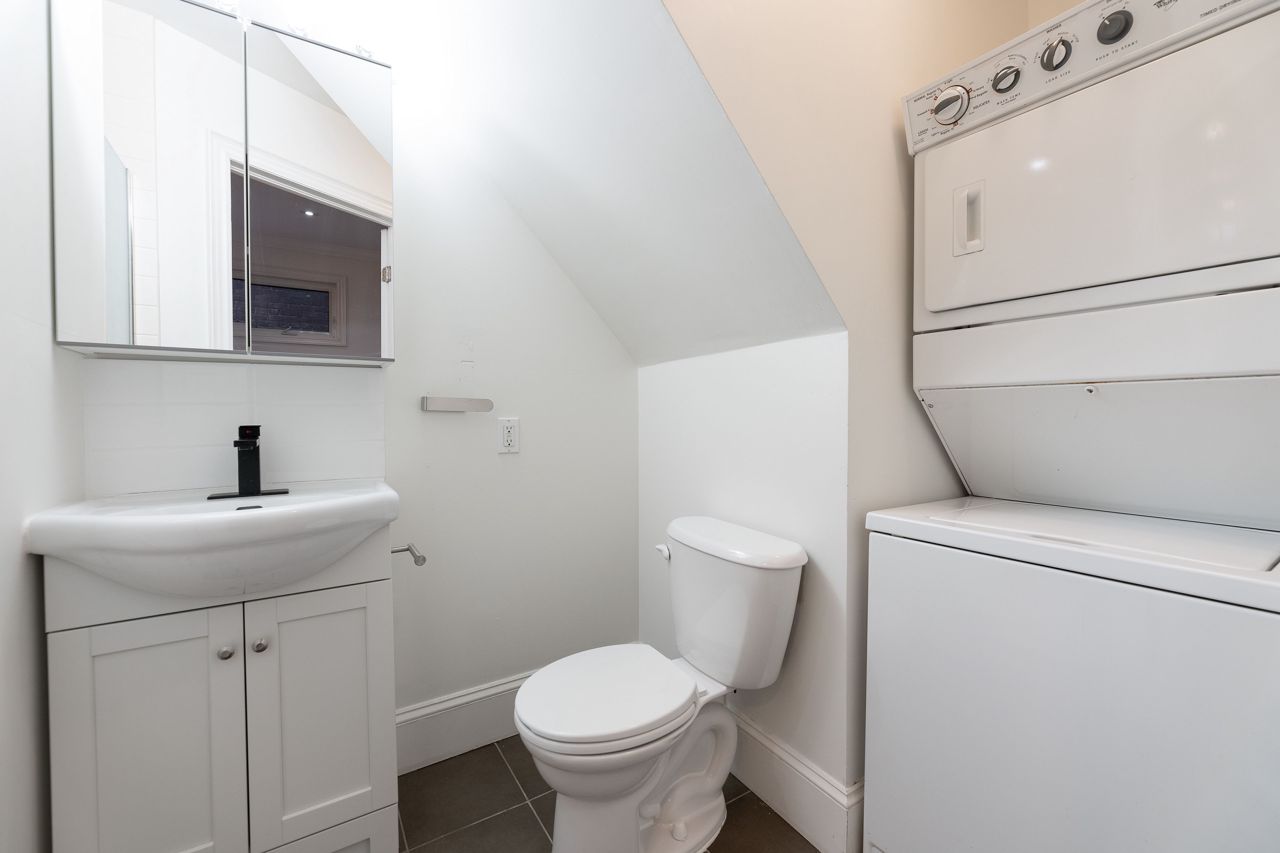 This clean and updated main floor 1 bedroom, 1 bathroom unit checks all the boxes! A spacious open concept living area provides seemless living into the large kitchen with stone countertops, dishwasher, gas range, built in microwave and plenty of storage. Kitchen has a private entrance/walk out to the private oversized back deck - perfect for summer BBQing and entertaining! Bedroom boasts two double door closets for lots of storage, and beautiful natural light. Conveniences such as ensuite laundry and central air conditioning helps to keep you cool in the hot summer months. Located in the heart of the Beach with all of the coffee shops, restaurants, grocery stores & community's amenities at the bottom of the street (beach, bike trails, outdoor pools, tennis and volleyball courts, etc). Several TTC options at your doorstep (Woodbine bus/subway, 24hr Queen street car & downtown express buses).Back deck is private use for this unit. Utilities are extra (gas/heat, hydro, waste/water/sewage), tenant to pay approx 25% percent of house's utiltiies.