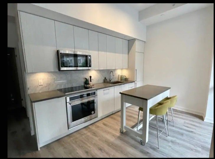 Welcome to Bright and Spacious 'Fortune Condos' in Fort York. This is a Rare Ground Floor Corner 1+1 Unit with an exclusive Private Entrance. The private terrace includes a gas line for BBQ for Hosting and entertaining Outdoors. Open-concept Chef's Kitchen with Marble Backsplash, Stainless Steel Appliances and 10-foot Ceilings. Steps away from Loblaws, LCBO, The Waterfront, Coffee shops, Restaurants and Much More! This condo is perfect for first-time homebuyers, professionals working in the city and Investors.Amenities Include Gym, 24 Hrs Security Guard & Concierge, Party Room, Guest Suite. Building Amenities: Spa W Whirlpool, Steam Rm, Sauna, Yoga, Putting Grn