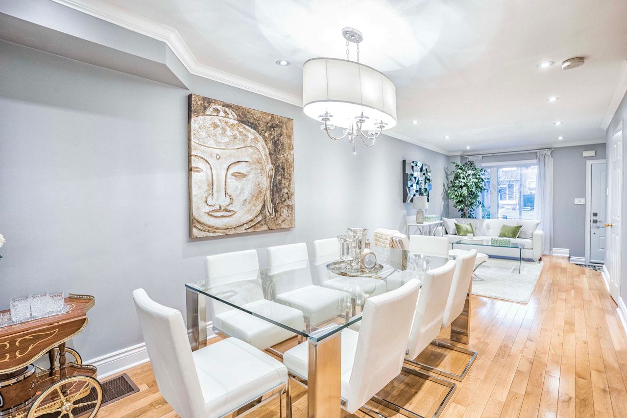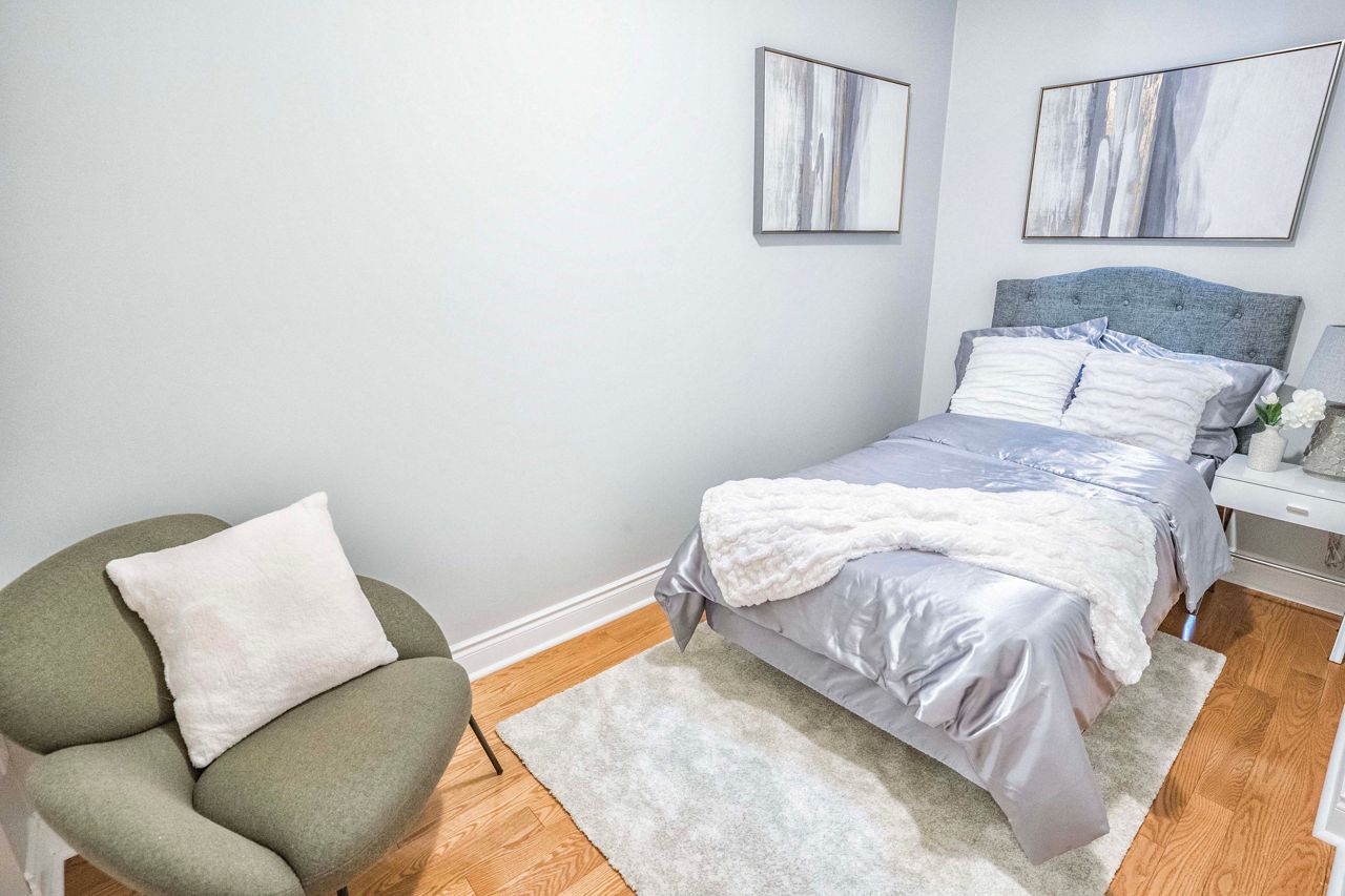 Welcome to this stunning Freehold Townhome nestled in the highly sought-after Maple Leaf Neighbourhood. An exquisitely landscaped front yard welcomes you, complete with a stone walkway and a cozy front porch perfect for enjoying the neighbourhood vibes. Step inside to discover modern upgrades that elevate every corner. The spacious combined living & dining area seamlessly transitions into a renovated Gourmet Kitchen featuring a Quartz Island, Quartz Countertops, Tile Backsplash, and Custom Cabinetry. From there, walk out to a beautiful backyard oasis--a true entertainer's dream! Upstairs, the second floor boasts 3 Chic Bedrooms, one of which offers its own private balcony-- ideal for morning coffees or evening relaxation. The real gem awaits on the third floor a private Primary Bedroom Paradise. This serene space features a fully renovated ensuite bathroom and an incredible L-shaped walk-in closet providing an additional 100+ sqft of storage & style. Venture downstairs to the Finished Basement, where you'll find a versatile Rec Room, a convenient Laundry area, and an extra room perfect for a home office or extra bedroom. Parking is convenient with a single car garage and a permitted Concrete parking pad providing extra space. The location is unbeatable, with proximity to several parks, the renowned Rustic Bakery, Humber River Hospital, TTC transit, and easy access to the Major 400/401 Highways, making commuting a breeze. Over $150,000 has been invested in recent upgrades, ensuring both comfort and peace of mind for years to come. Updates include HVAC (2018), OWNED Water Heater (2019), Bathroom Renovations, Front Walk & Veranda (2022), Doors & Windows (2020), and a brand-new Parking Pad (2021). Additionally, a $1000 annual association fee takes care of the quality and timely maintenance of laneway and rear community roadways, ensuring a pristine and welcoming neighbourhood. Don't miss the opportunity to make this exceptional property your new home!Over $150,000 recently spent on upgrades (HVAC 2018/ OWNED Hot Water Tank 2019/ Bathroom, Front Walk & Veranda 2022/ Doors & Windows 2020/ Parking Pad 2021... $1000 annual association fee maintains of laneway and rear community roadways