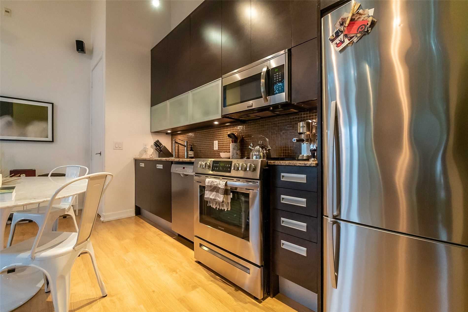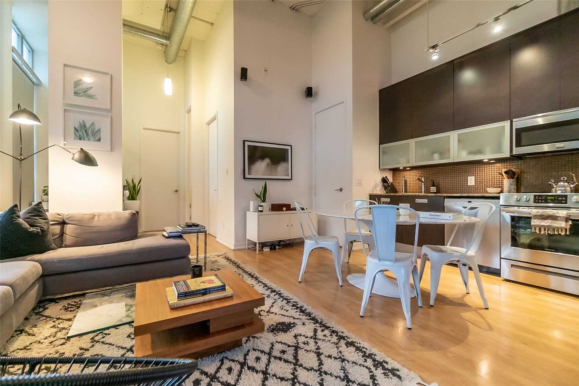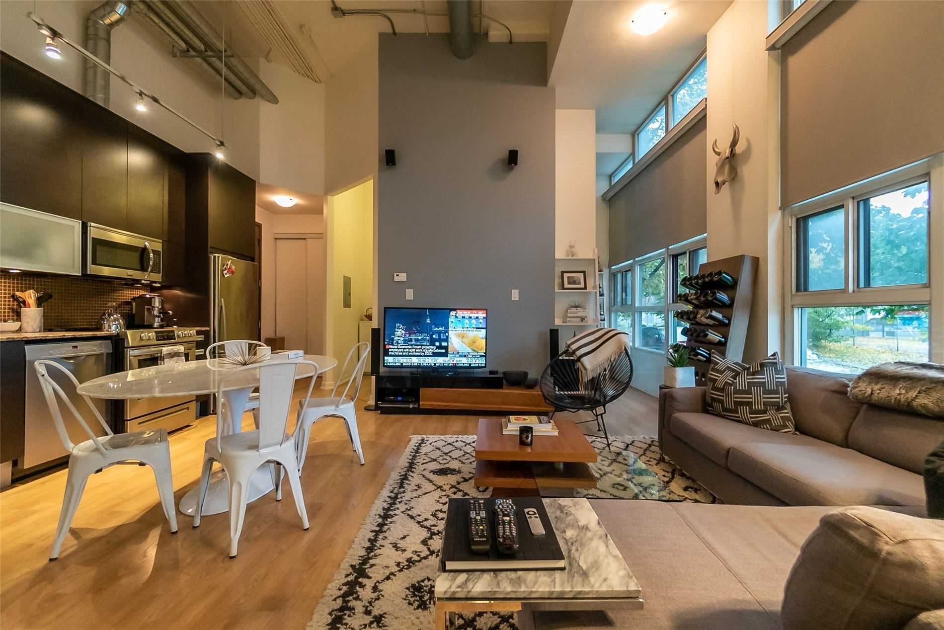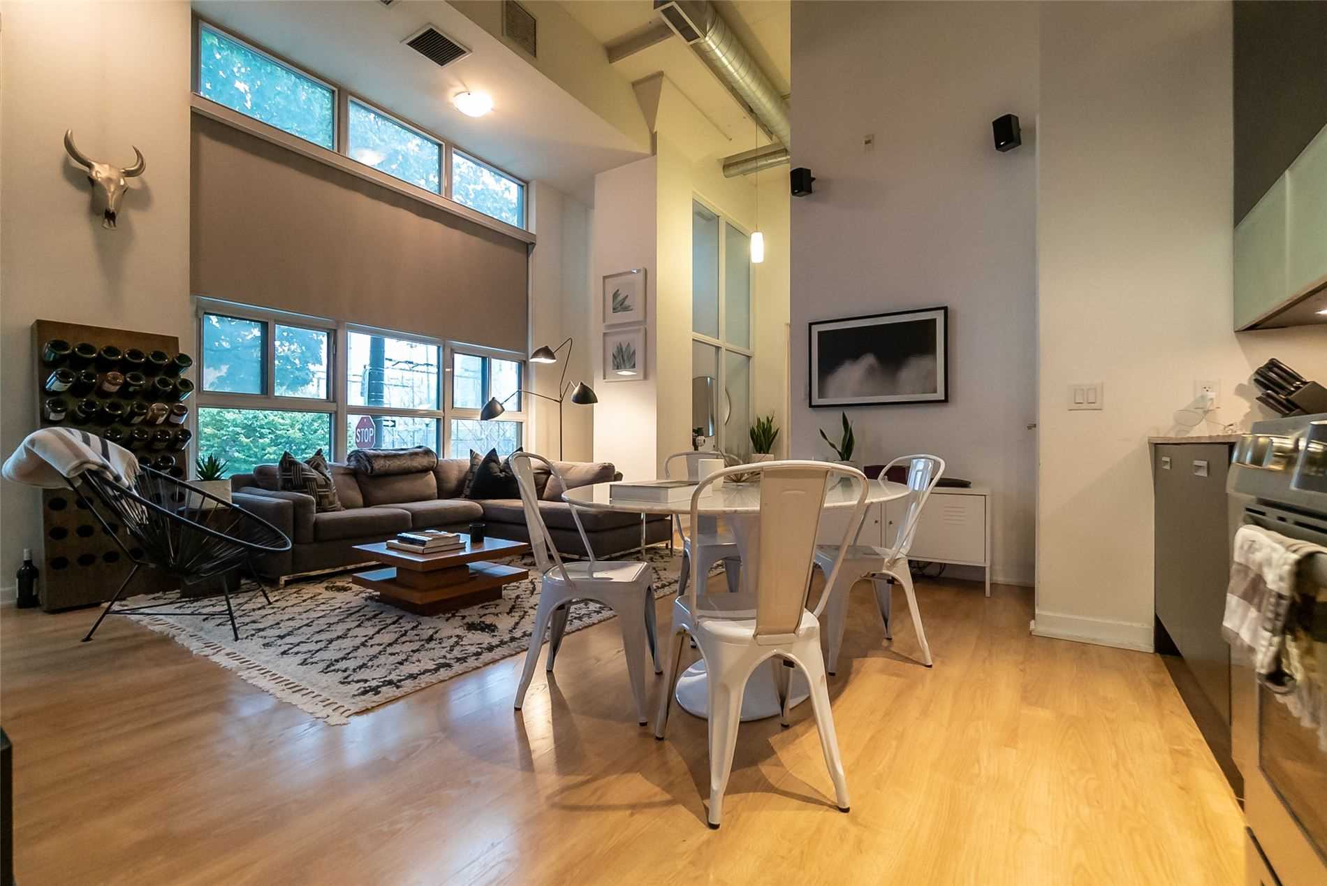 No Need For An Elevator-Walk Straight To Your Spacious Sun-Filled Corner Loft (810 Sq Ft) Boasting Appx 14 Ft. Clgs Throughout, Exposed Ductwork, Open Concept Living/Dining Rm, Updated Appliances, Spacious Den That Can Be Used As An Bdrm/Extra Living Area Plus An Extra Ofc Area W/Lots Of Natural Light! Stunning Hard Loft Conversion Nestled In A Residential Neighbourhood Just Steps To Dupont Station, Yorkville, Casa Loma & The Annex. Includes:Stainless Steel Fridge, Stove, Dishwasher, Microwave, White Stacked Washer-Dryer. All Electric Fixtures And Walk-In Closet Built-Ins & Window Shades. All Speakers. Exclude: Bdrm Wall Lights.