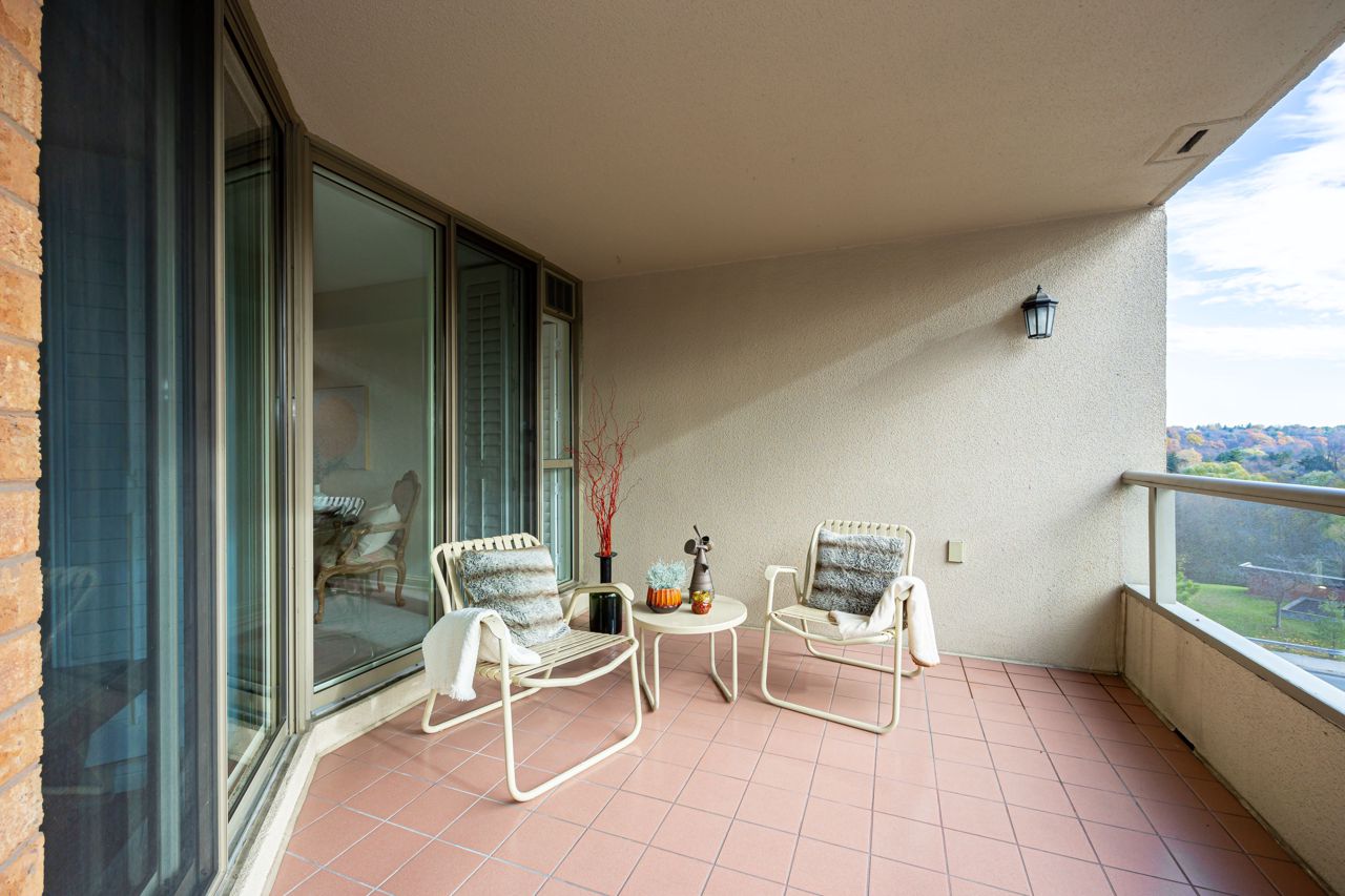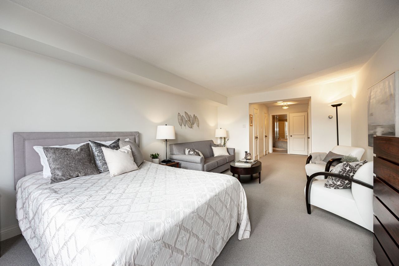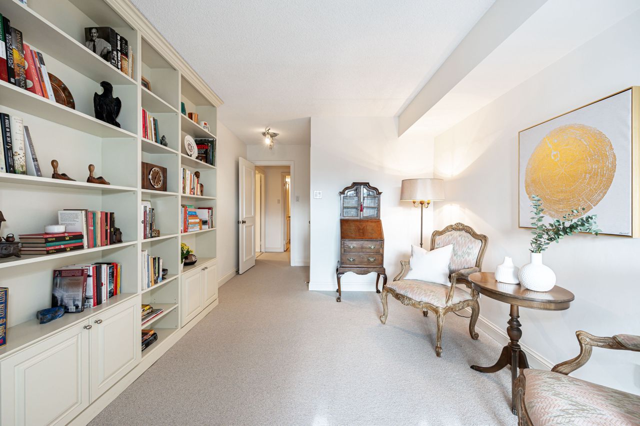 Fabulous light-filled south-east facing unit in prestigious Governor's Hill. Over 2,000 sq ft on one level and not an inch wasted. Unique open concept plan with a split 2 bedroom layout for luxurious privacy. A Sunroom area and Den maximize the use of space. Great flow. A must see! The huge primary bedroom includes 3 large closets and a 6-piece ensuite. The generously-sized second bedroom has it's own bathroom. A powder room off the foyer is available for your guests. The laundry room has side-by-side washer and dryers with plenty of storage and room to fold. Enjoy the comfort of 24/7 security, concierge, and a slew of amenities including an indoor pool, steam room, sauna, gym, party room, library, pool tables, squash and a golf cage as well as hotel-like guest suites and visitor parking. Proximity to the 401, public transit and local shops, cafes, restaurants top it all off.The suite comes with 2 parking spaces and a full-sized indoor locker.