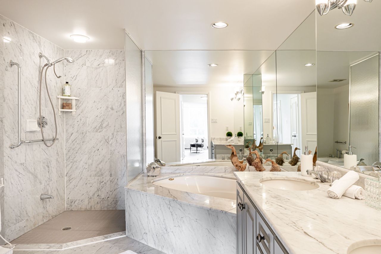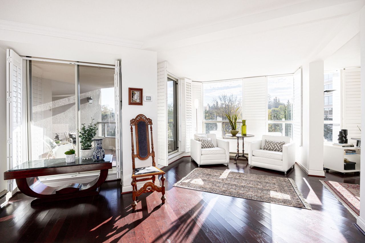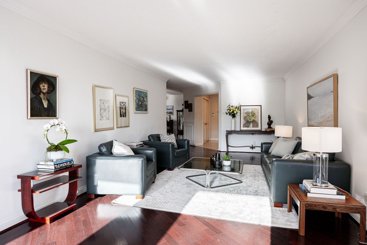 Fabulous light-filled south-east facing unit in prestigious Governor's Hill. Over 2,000 sq ft on one level and not an inch wasted. Unique open concept plan with a split 2 bedroom layout for luxurious privacy. A Sunroom area and Den maximize the use of space. Great flow. A must see! The huge primary bedroom includes 3 large closets and a 6-piece ensuite. The generously-sized second bedroom has it's own bathroom. A powder room off the foyer is available for your guests. The laundry room has side-by-side washer and dryers with plenty of storage and room to fold. Enjoy the comfort of 24/7 security, concierge, and a slew of amenities including an indoor pool, steam room, sauna, gym, party room, library, pool tables, squash and a golf cage as well as hotel-like guest suites and visitor parking. Proximity to the 401, public transit and local shops, cafes, restaurants top it all off.The suite comes with 2 parking spaces and a full-sized indoor locker.