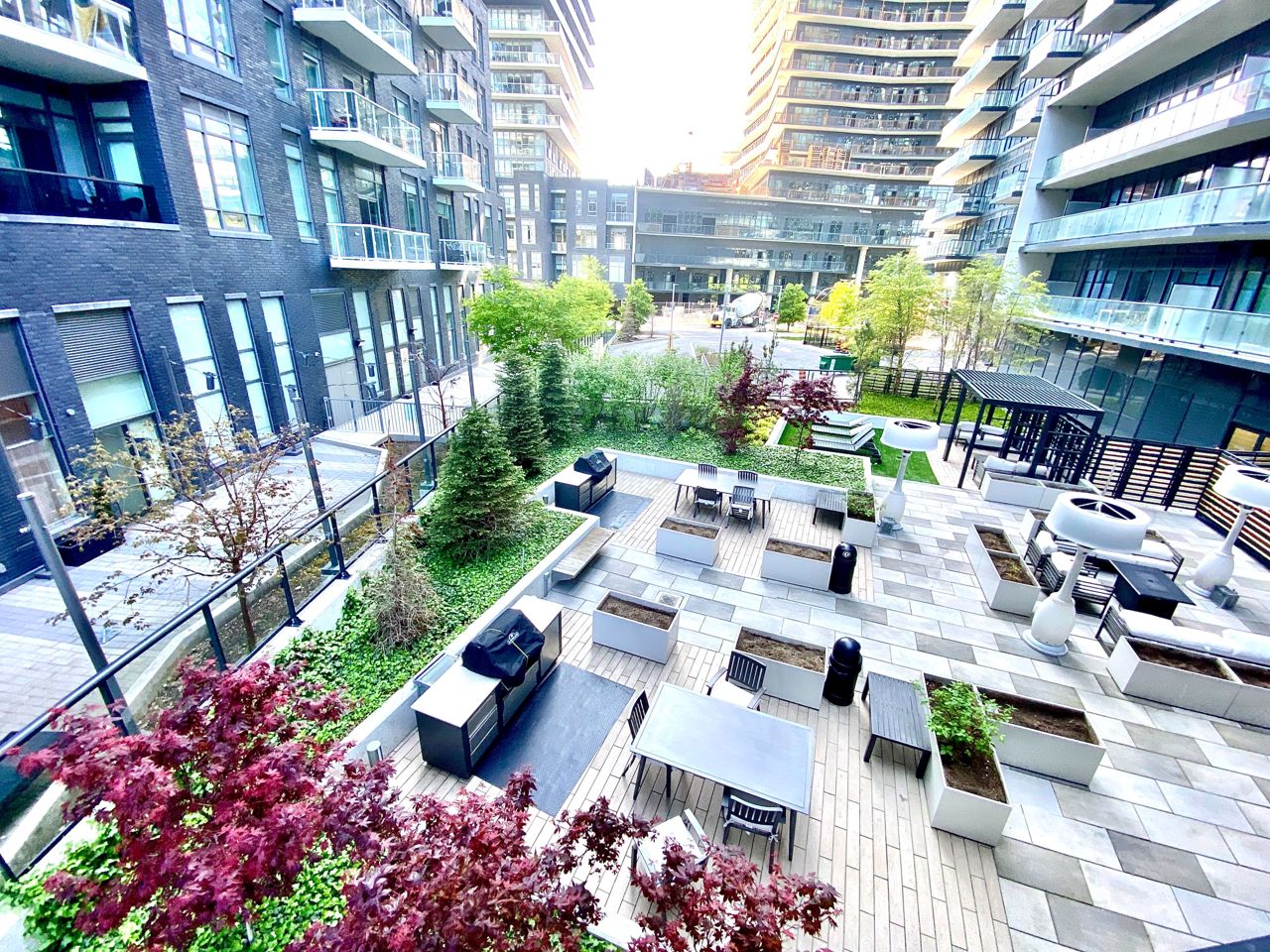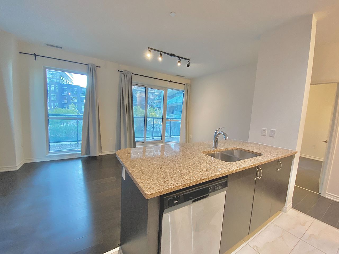 Great Opportunity To Live In A 2 Years New, Luxurious Lakefront Condo - Cove At Waterways. 2 Bedroom + Den, 2 Full Baths, Spacious Southwest Corner Unit, 942 sf + 350 SF Wraparound Terrace, Overlooking The Huge Outdoor Terrace/Garden. Enjoy Outdoor Living From The Expansive Wraparound Terrace, With Walkouts From The Primary Bedroom, Dining Room And Kitchen. 9 Ft Ceilings, Functional Layout, Floor To Ceiling Windows, Granite Kitchen Counter Top With Ceramic Backsplash, Stainless Steel Appliances. 1 Parking & 1 Locker Included. Lake, Bike, Boardwalk & Restaurants With Patio Dining. Steps To Waterfront, Trails, Shops, Metro, Restaurants & More. Minutes To TTC, QEW & Downtown Toronto.All Elfs, All Existing Window Coverings, S/S Fridge, Stove, Dishwasher, Over The Range Microwave/Hood Fan, Stacked Washer & Dryer.