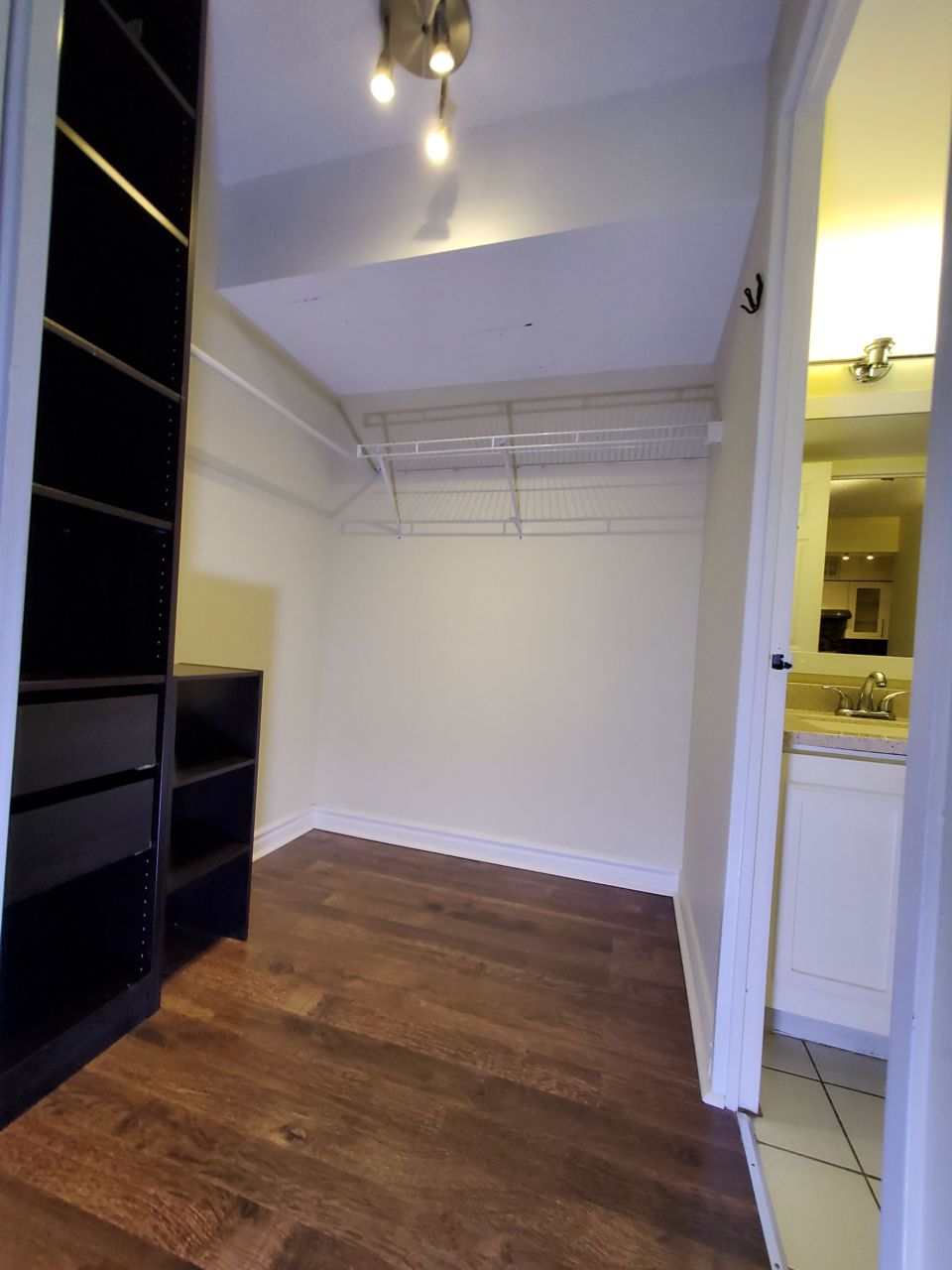 All Utilities Included. Very Spacious (Over 700 Sq Ft) 1+Den Unit Features Open Concept, Full Size Prime Bedroom With Walk-In Closet, Large Living Room And Dining Room, High Quality Laminate Floor Throughout. Eat-In Kitchen, S/S Appliances and Ceramic Floor. Located on a Quiet Cul-de-sac and Only Steps Away from Taylor Creek Park & Trails to Enjoy the Nature! Easy Access To Downtown, Gardiner Expressway And Dvp, Walking Distance To Main Subway Station. Pakring & Locker Included! (Short Term Avaiable).All Existing Appliances, Refrigerator, Dishwasher, Stove, Range Hood, Washer, Microwave & Dryer. All Window Coverings & Electric Light Fixtures. 1 Exclusive Use Parking Spot & Locker Included!
