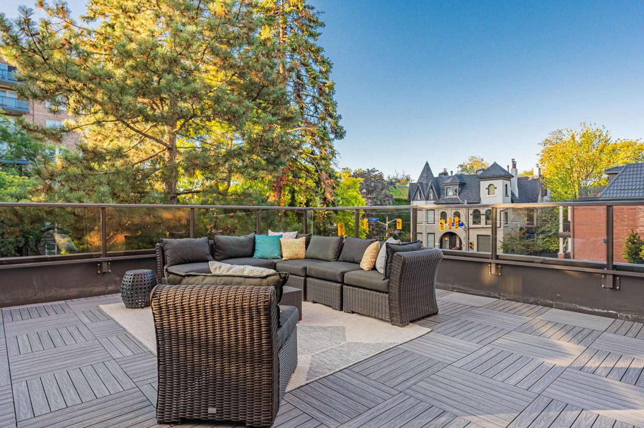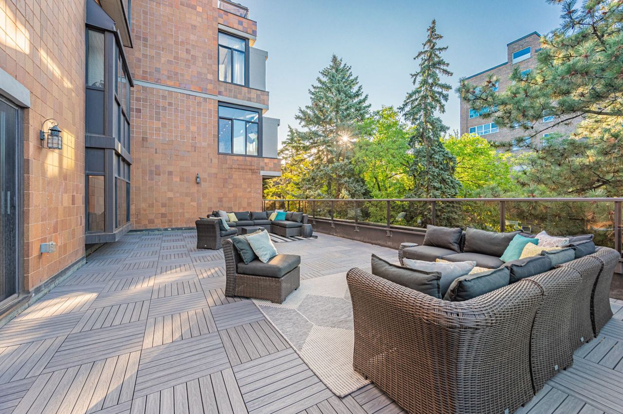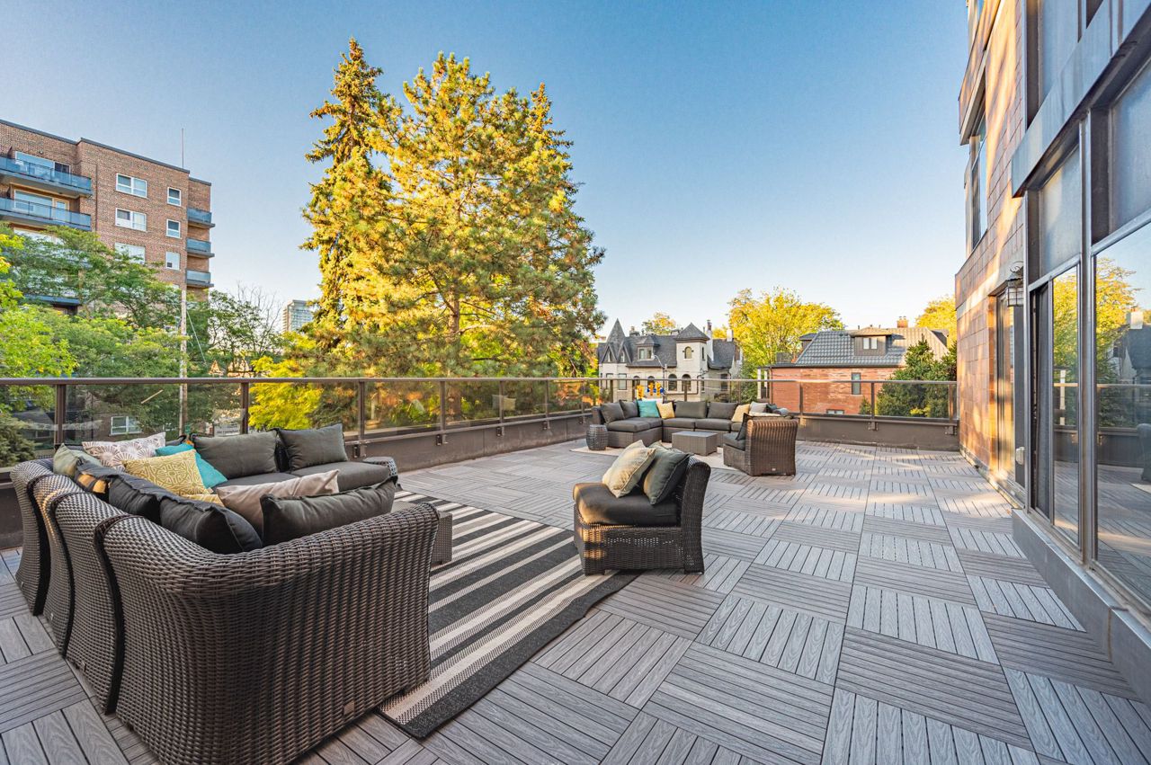 Experience turnkey luxurious urban living in this magnificent 2-sty condo that boasts over 2,300 sf of elegant living space. Nestled in a boutique bldg, this corner unit offers the ultimate blend of sophistication & comfort. With tree lined south-facing views, this residence is bathed in natural light, creating an inviting ambiance throughout. As you step inside, you'll immediately notice the thoughtful design & renovations that have transformed this condo into a move-in-ready masterpiece. The spacious 2 Bedroom, 3 Bathroom layout features a private balcony off the primary suite, providing a serene escape & a perfect spot to enjoy your morning coffee. One of the standout features of this unit is the sprawling 800 SF terrace, one of the largest in the building. Whether you desire a tranquil retreat to unwind & soak up the sun or a dynamic setting for hosting gatherings, this terrace allows you to create multiple seating & dining areas, making it a true extension of your home."Other Rm" is Terrace. Rare 2 Car Parking + Large Ensuite Locker. Elegant Outdoor & Indoor Grdns, 24 Hr Security System, Concierge, Visitor Parking, Bike Storage, Free Ignite TV & Internet through Rogers - Buyer to verify/confirm & set up.