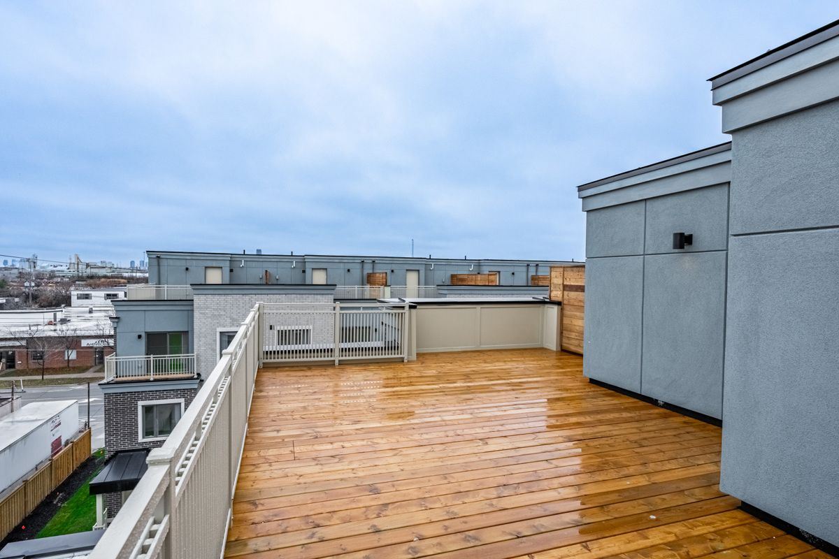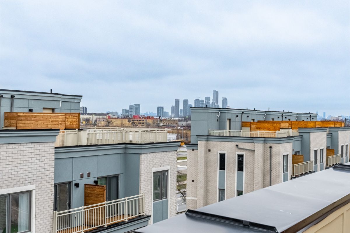 This exquisite 2-storey townhouse in South Etobicoke boasts a prime location just moments away from the lake. With 3 bedrooms, 2.5 bathrooms, and custom blinds throughout, it includes 1 underground parking spot and a locker. Revel in the large rooftop terrace, complete with a gas BBQ hookup for outdoor gatherings. Approximately $20K in upgrades including upgraded kitchen with a chimney hood fan, quartz countertops, upgraded porcelain tiles, plush carpeting, cultured marble washroom countertops, oak railings, and more. Come and discover the beauty of this stunning property! Virtually staged photos.Close to Humber college, Mimico GO, Longbranch GO, Gardiner, HWY 427 and short drive to Sherway or downtown. Short walk to Lake, parks, and public transit.