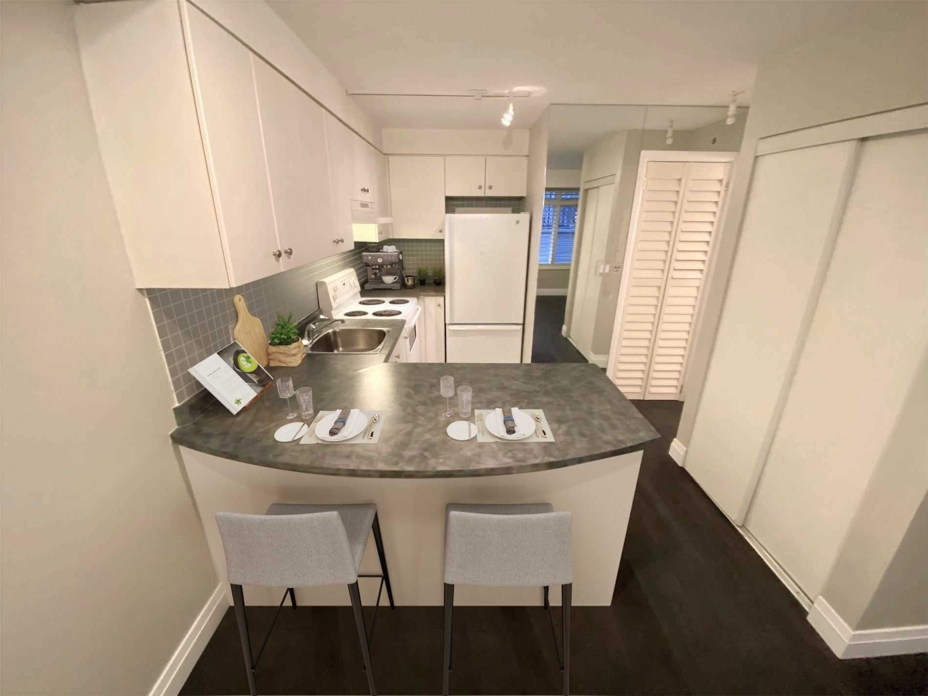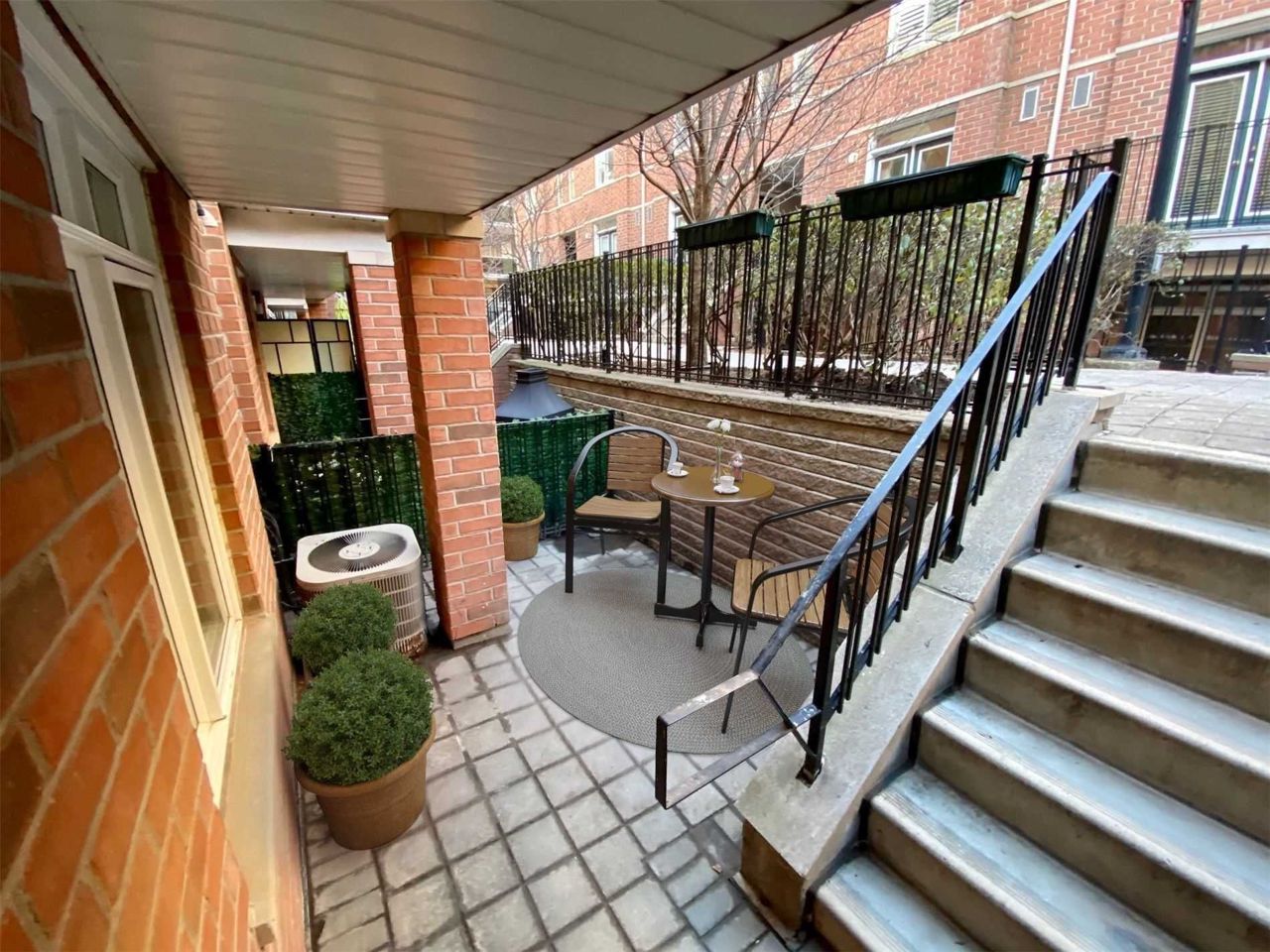 Enjoy Quaint & Quiet Living In This Lower Level Stacked Townhouse Studio With A Private Entrance & Large 130 Sqft Patio + Bonus Gas Bbq Hookup! This Functional Floorplan Has Everything You Need To Be Comfortable + Brand New Laminate Floors!! Spacious Kitchen With Oversized Breakfast Bar. Large Walk-In Closet. This Is Urban Living At Its Best & Steps Away From Ryerson University, Yonge-Dundas Square, Allan Gardens & The Eaton Centre! All The Excitement Of Downtown Toronto At Your Doorstep - Shops, Restaurants, Transit & More! Make It Yours Today!White Kitchen Appliances (Stove, Dishwasher, Fridge), Stacked Washer/Dryer. All Existing Light Fixtures & California Shutters Included.