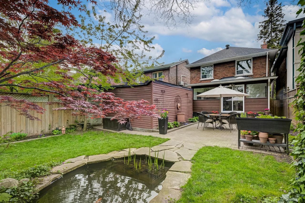 Welcome to this stunning family home nestled in prestigious Playter Estates, boasting a ravine setting and located within the coveted Jackman school district. Situated on a picturesque tree-lined street, this residence offers the perfect blend of traditional charm and modern convenience.Step inside to discover grand principal rooms featuring a fireplace and adorned with traditional trim, high baseboards, a beamed ceiling, and original built-ins, creating an inviting atmosphere. Gleaming hardwood floors flow throughout the main level, adding warmth and elegance to the space. Bright and spacious, this home offers a comfortable and inviting living space for the whole family.The main floor features a spacious family room, ideal for relaxing or entertaining guests, along with a convenient powder room. The family-size eat-in kitchen is a chef's delight, offering ample space for meal preparation and casual dining.Originally designed as a 4-bedroom home, it has been thoughtfully converted to a 3-bedroom layout, providing generous bedroom sizes and ample storage space. The finished basement boasts a comfortable family room, perfect for movie nights or playtime.Additional features of this home include a spa-like principal bathroom with a standalone tub and spacious shower, ensuring relaxation and luxury at every turn.Step outside to the professionally landscaped garden, featuring a serene Koi pond, creating a retreat in the heart of the city.Enjoy the convenience of being just a 10-minute walk to Broadview Station, providing easy access to transportation. With its close proximity to the DVP, commuting in and out of the city is a breeze.Don't miss this opportunity to own a spacious and elegant family home in one of Toronto's most desirable neighborhoods. Schedule a viewing today and experience the charm and beauty of Playter Estates living.