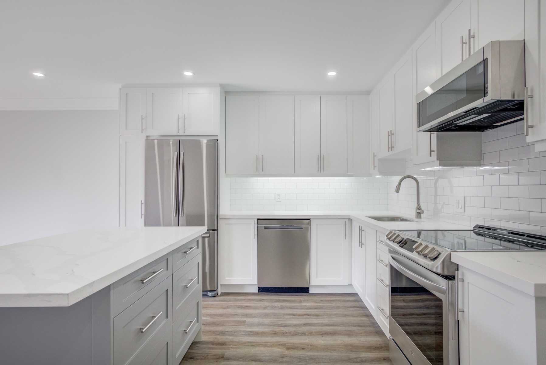 Unbelievable Bright, New & Completely Renovated 3 Bedroom, 2 Full Bath Apt. A True Must See To Believe. With Approx 1200 Sqft, 2 Storey Living. No Elevator Waits! Set Up Bbq In Back. Inside Is Insulated & Quiet. Close To Shops, Parks, Highways & Grocery. Tenant Pays Hydro. Ensuite Laundry, All New Appliances! Everything Is Brand New.