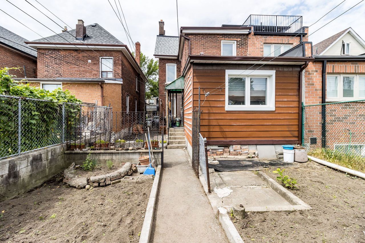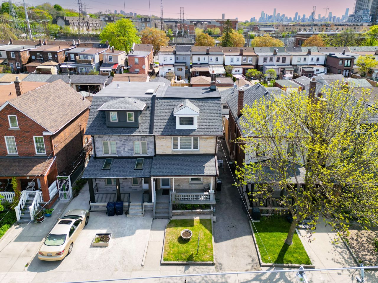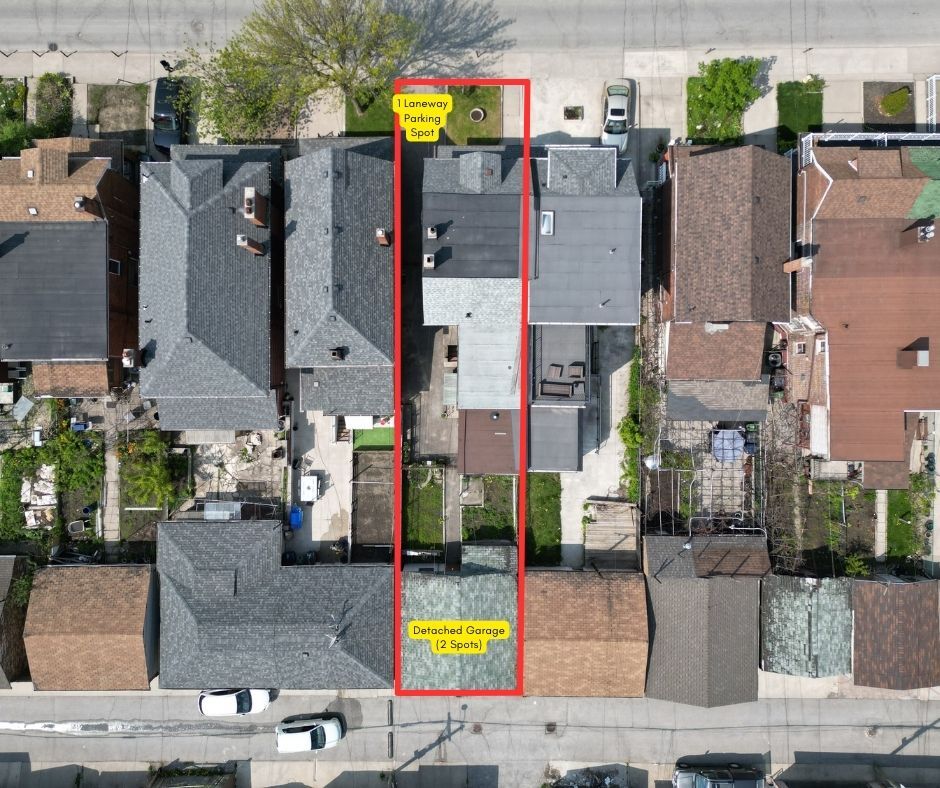 SEMI-DETACHED WITH PRIVATE DRIVE & GARAGE! Renovated In 2019, 1800+ Sq. Ft. 3-storey Located Near Historic Junction Triangle! A Spacious Open Concept Liv & Din Rms, Sun-Filled Den/5th Bedroom, Family-Sized Eat In Kitchen W/Updated Cabinetry & W/O To Yard, Private Driveway at front & Detached Double Garage by laneway. 2nd Floor Boasts Of 2nd Kitchen W/ Gas Line, 4Pc. Bth and Spacious Primary Bedroom W/ Double Closet And Hardwood Floors. 3rd floor Features Two Large Bedrooms w/windows. Finished Bsmnt. W/ Sep. Entry Features large rec room, modern Finished Kitchen W/Gas Line, utility area, 2 cantinas, Gorgeous Terrazzo Flooring W/ Marble & Granite Tiles, Brick Fireplace, 4Pc. Bth, And Much More! New Vinyl Windows & Doors (19), New Roof (19) & New Electrical 100Amp Service. Close To Transit, Shops, School, Cafes, Restaurants, Parks & Much More. Move In Ready. Note: 3 Kitchens and exterior separate entrance to basement. Plenty of potential to live and create an income!! See Attached plan.PRIVATE DRIVEWAY AT FRONT& GARAGE AT REAR (LANEWAY)
