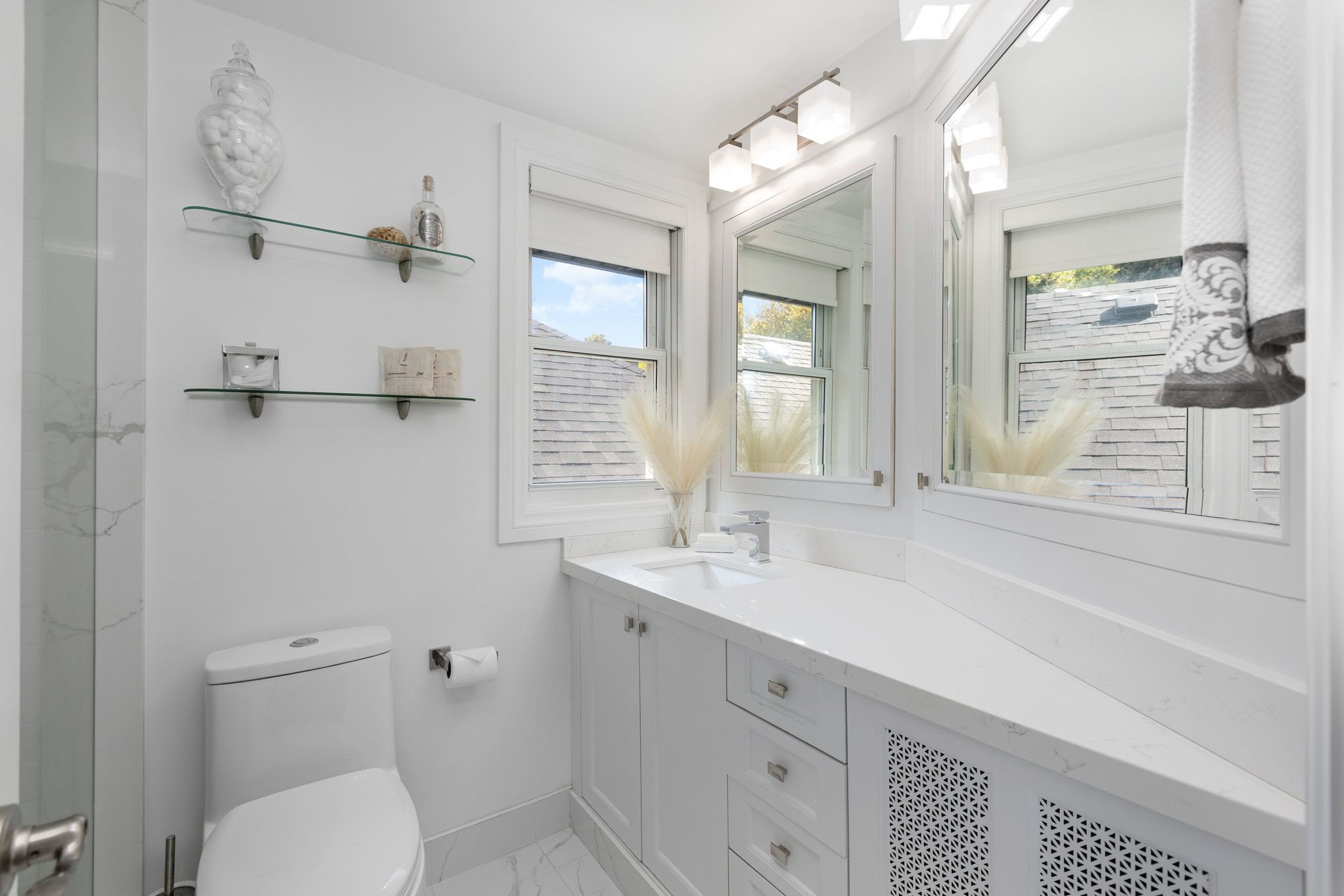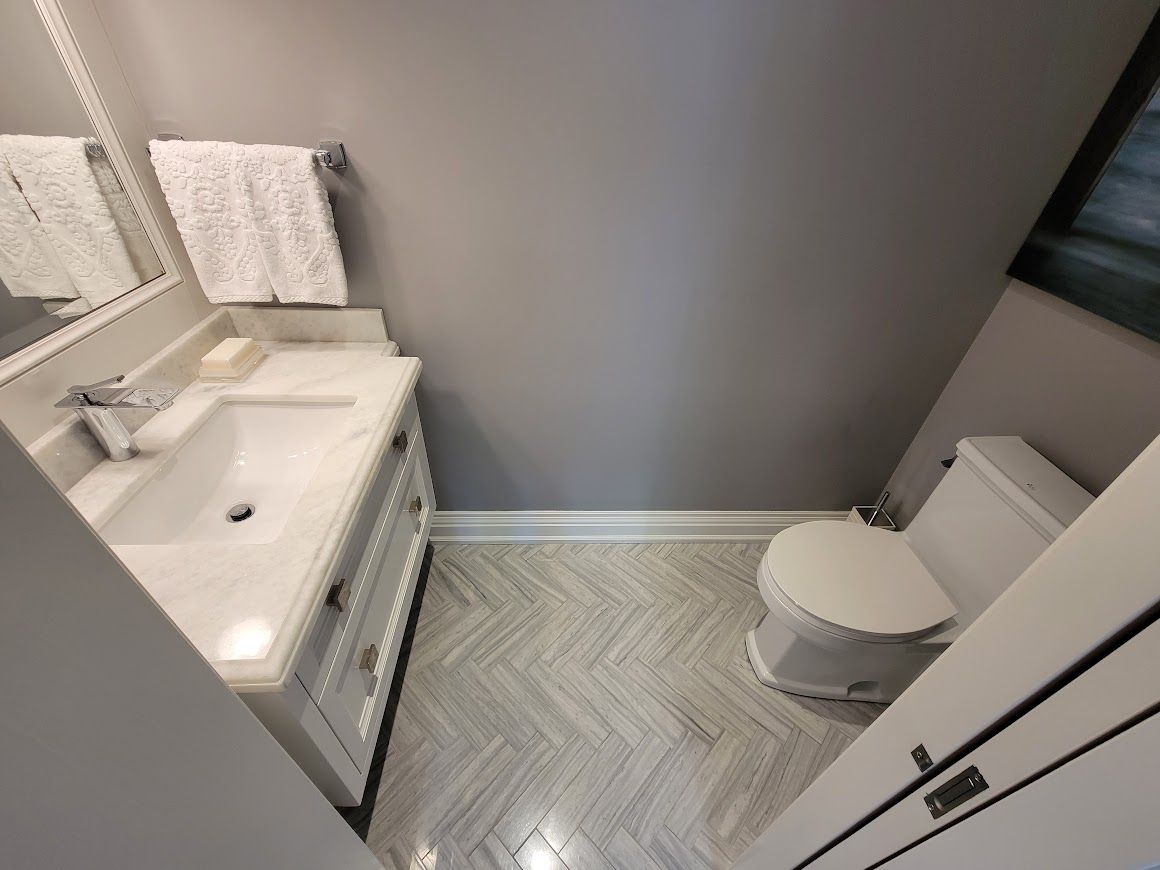3 Pc Bath Porcelain Floor Quartz Counter