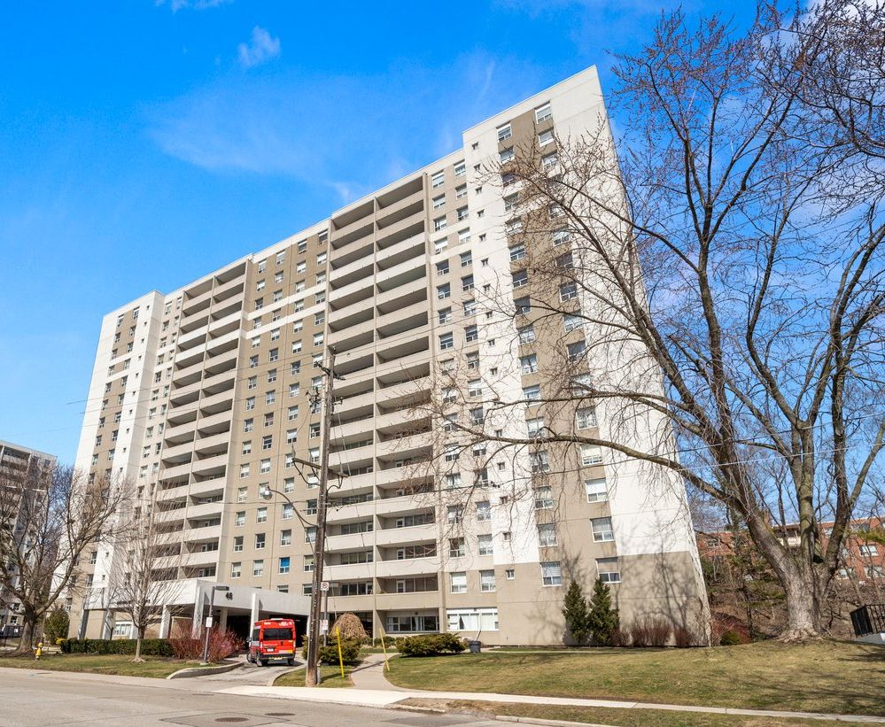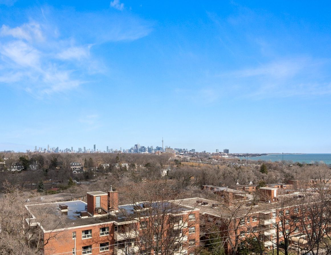Enjoy stunning unobstructed views of the downtown Toronto skyline from this spacious 1,000 sq ft, 2-bedroom condo. With large principal rooms and abundant natural light, this well-kept unit is ready for you to move in or to add your own finishing touches. Conveniently located steps from parks, trails and a quick hike or bike to Lake Ontario shoreline. Nearby bus stop for easy access to the Bloor subway line. Quick commutes are made possible with nearby Lake Shore Boulevard and the Gardiner Expressway. Amazing opportunity to move into this desirable neighbourhood!Fridge, Stove, Washer, Dryer. All utilities, Rogers TV and internet included in maintenance fees. Exclusive use of 1 parking spot and 1 locker.