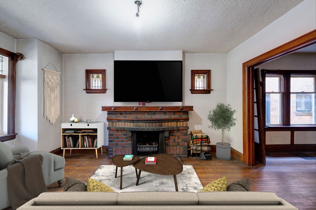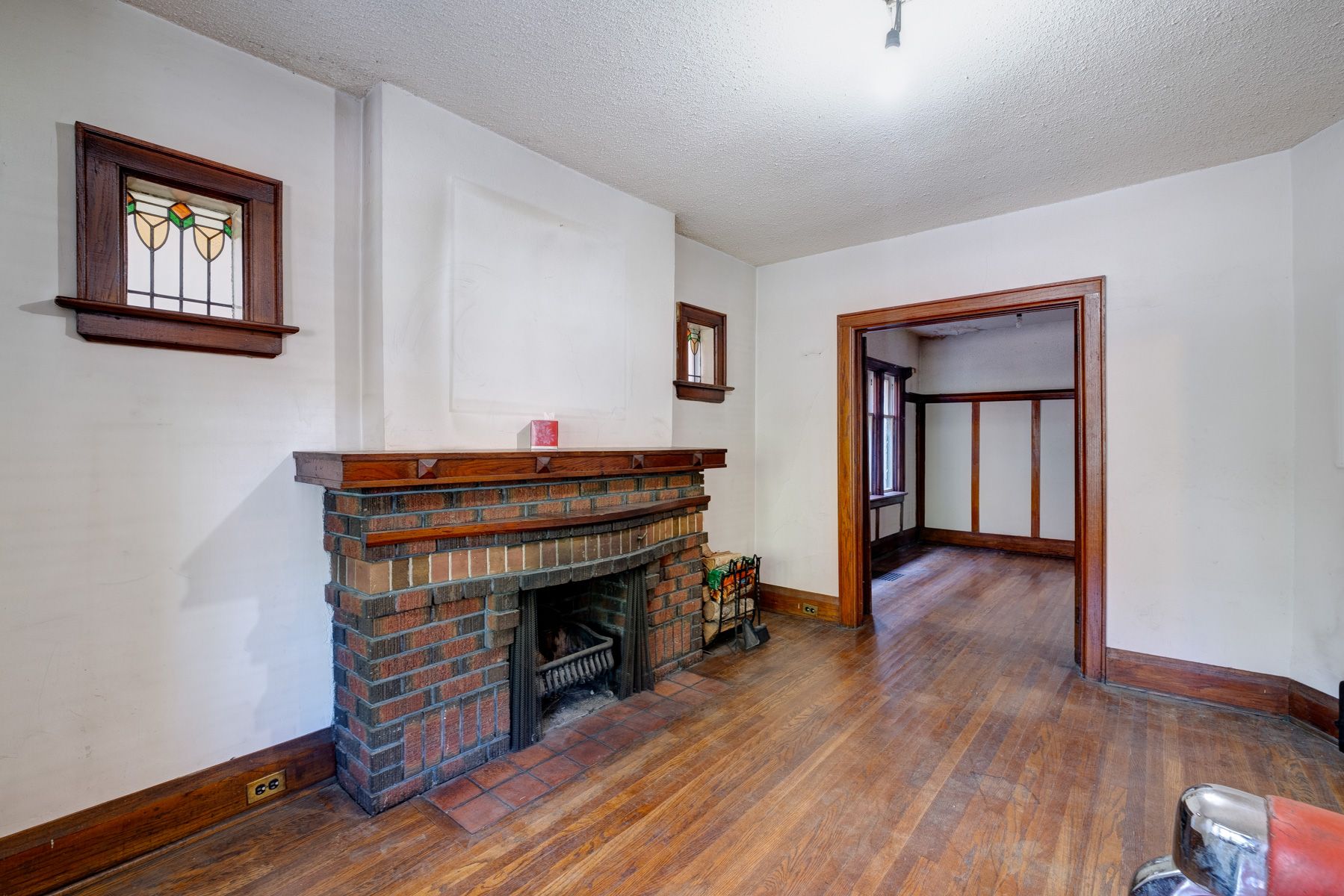 Fireplace Stained Glass Hardwood Floor