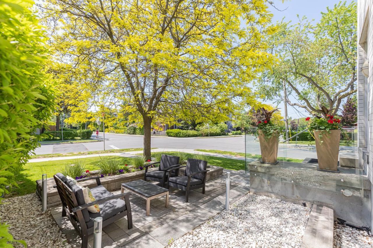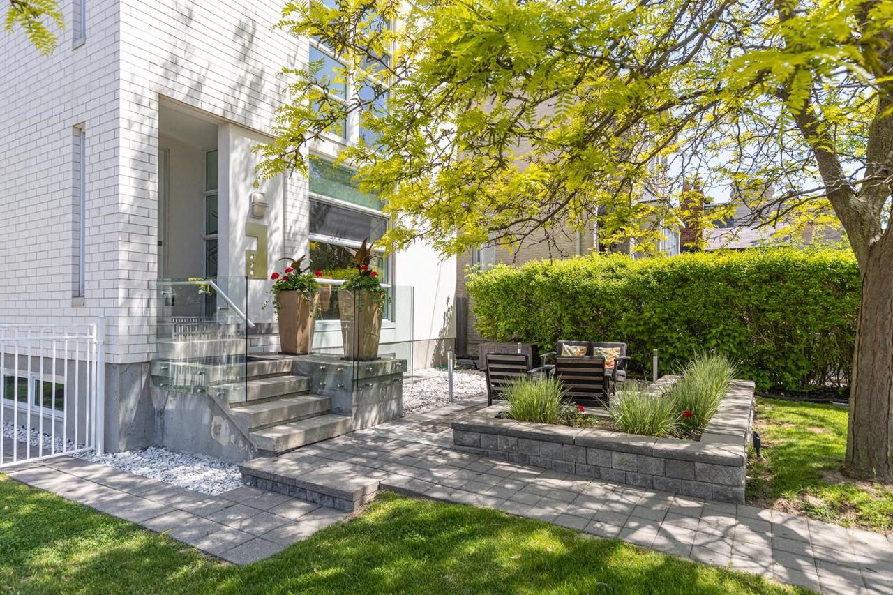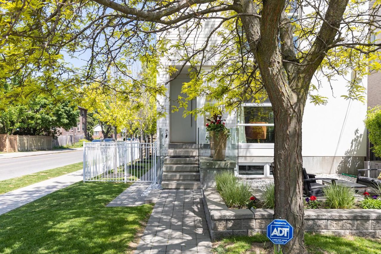 Stunning Unique custom design with true floor to ceiling windows & skylights allows for an abundance of natural light thru out. Open concept design ideal for entertainers. Gas fireplace in family room& w/o to back deck. Beautiful solid floating steel staircase. Quality hardwood floors thru out. Bright living room overlooks quaint front patio & garden. Upper & Lower balconies for evening dinners (screened in) or open air work outs. Basement offers separate back entry, bdrm & ensuite, spacious living area and kitchenette w/island. Heated floors thru out basement & above grade windows. All house Rave Audio system with receiver. Alarm system. 2278 sq ft of ABOVE grade living space PLUS basement. Private drive can fit 2 cars plus one perpendicular. Walk to Avenue Rd & to Ledbury park (offering outdoor pool & rink), near Hwy 401. Atelier RZLBD architect built in 2011Automatic Blinds & metal shutters, garden shed, covered driveway, 20 speakers thru out home with 5 zones, photo cell landscape lighting, bbq gas hook up,