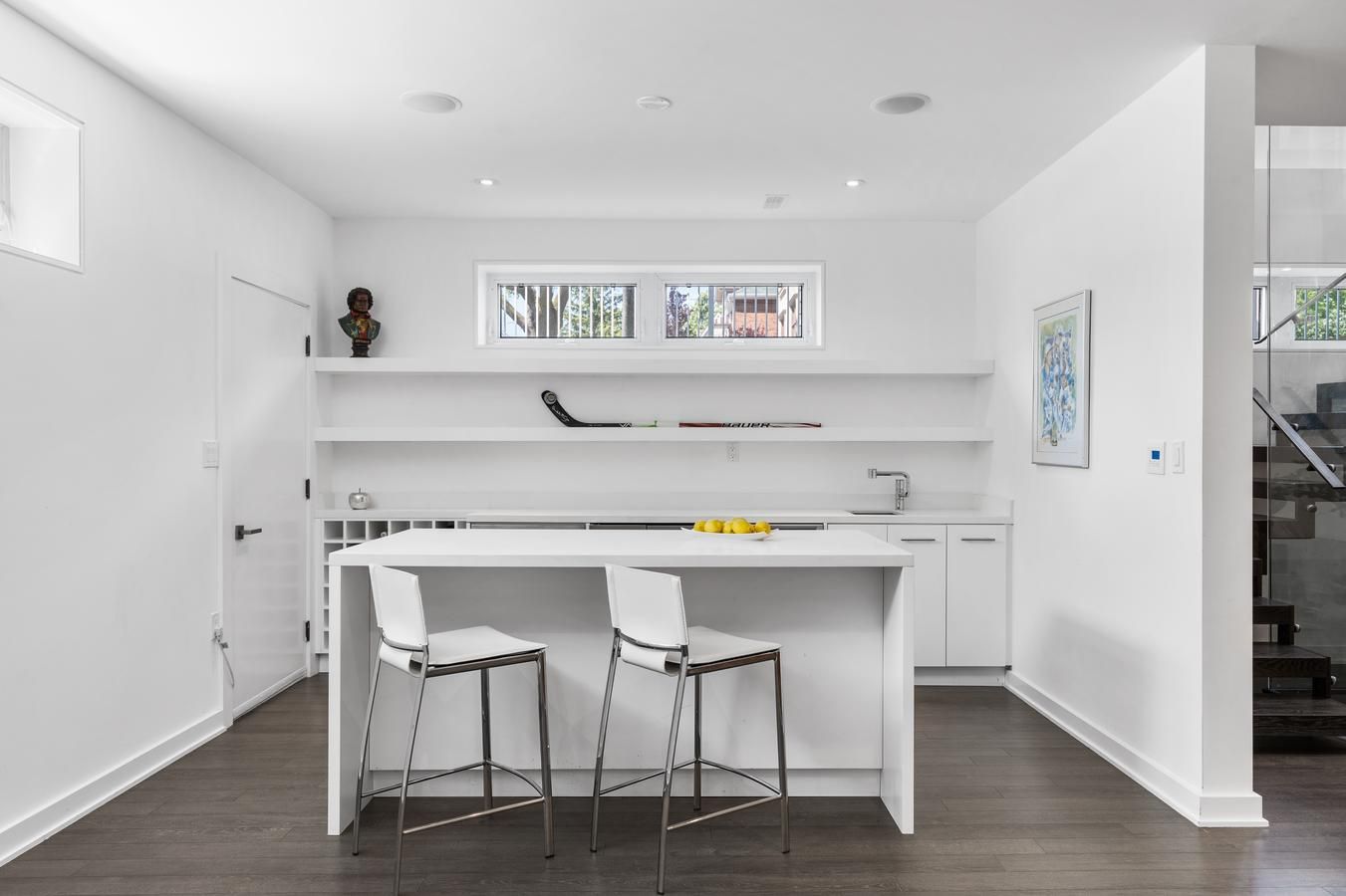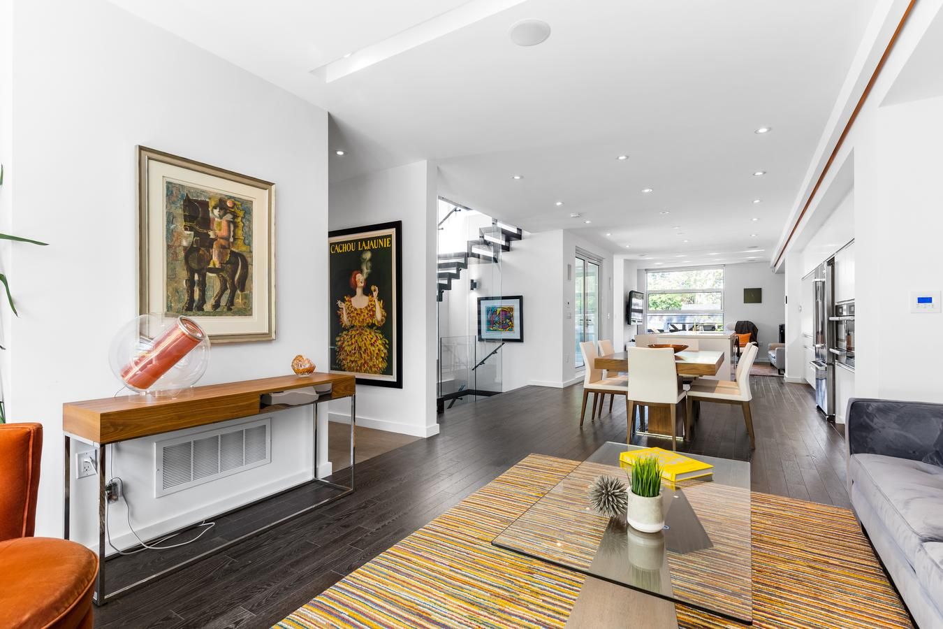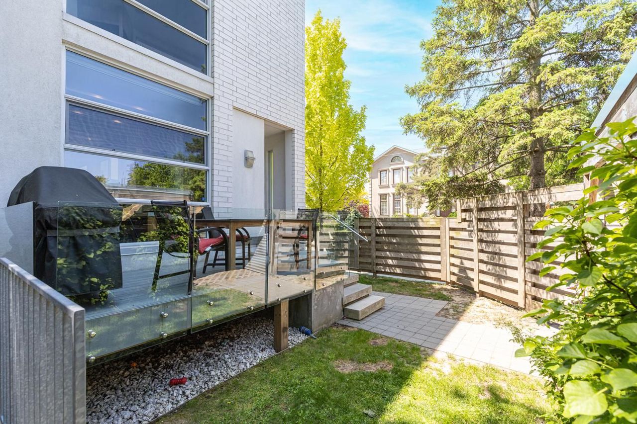 Stunning Unique custom design with true floor to ceiling windows & skylights allows for an abundance of natural light thru out. Open concept design ideal for entertainers. Gas fireplace in family room& w/o to back deck. Beautiful solid floating steel staircase. Quality hardwood floors thru out. Bright living room overlooks quaint front patio & garden. Upper & Lower balconies for evening dinners (screened in) or open air work outs. Basement offers separate back entry, bdrm & ensuite, spacious living area and kitchenette w/island. Heated floors thru out basement & above grade windows. All house Rave Audio system with receiver. Alarm system. 2278 sq ft of ABOVE grade living space PLUS basement. Private drive can fit 2 cars plus one perpendicular. Walk to Avenue Rd & to Ledbury park (offering outdoor pool & rink), near Hwy 401. Atelier RZLBD architect built in 2011Automatic Blinds & metal shutters, garden shed, covered driveway, 20 speakers thru out home with 5 zones, photo cell landscape lighting, bbq gas hook up,