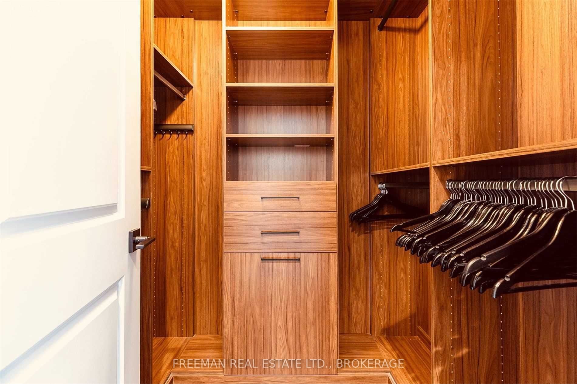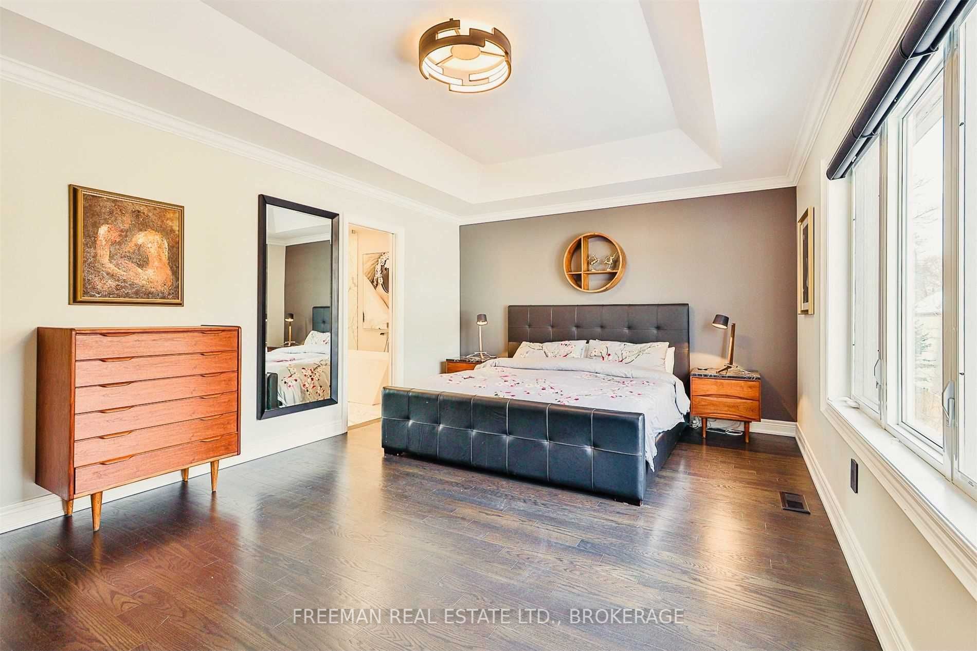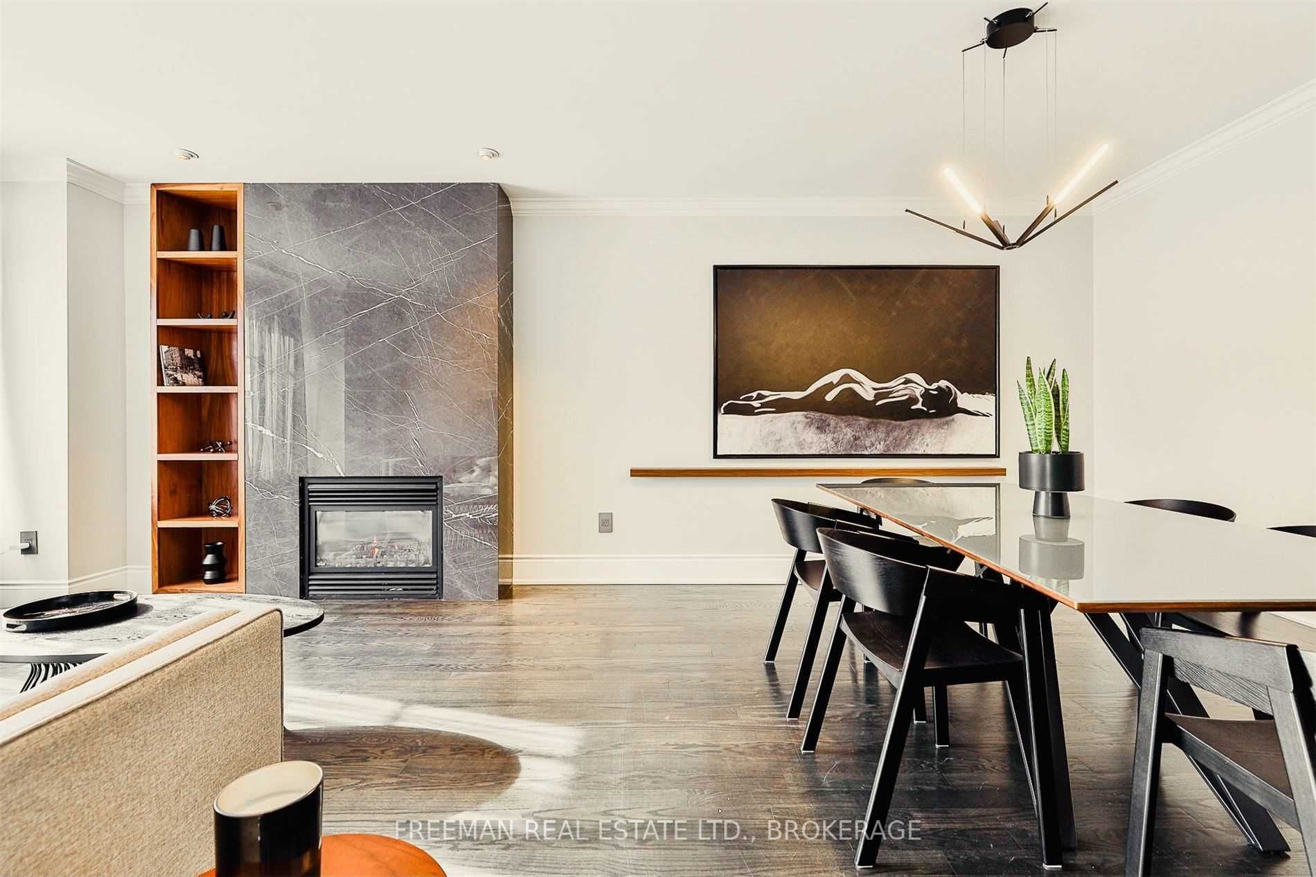 Price Reduced. An exceptional deal for Gorgeous modern masterpiece, includes furniture and art!! Dark oak hardwood floors and high-end marble surfaces throughout. Modern styling features coffered soaring ceilings, stunning architectural floating solid walnut staircase with glass surround, epicurean built-in kitchen appliances & wine fridge, two walkouts to backyard, gas fireplace, audiophile stereo system, heated bathroom floor in spa-like ensuite bathroom.