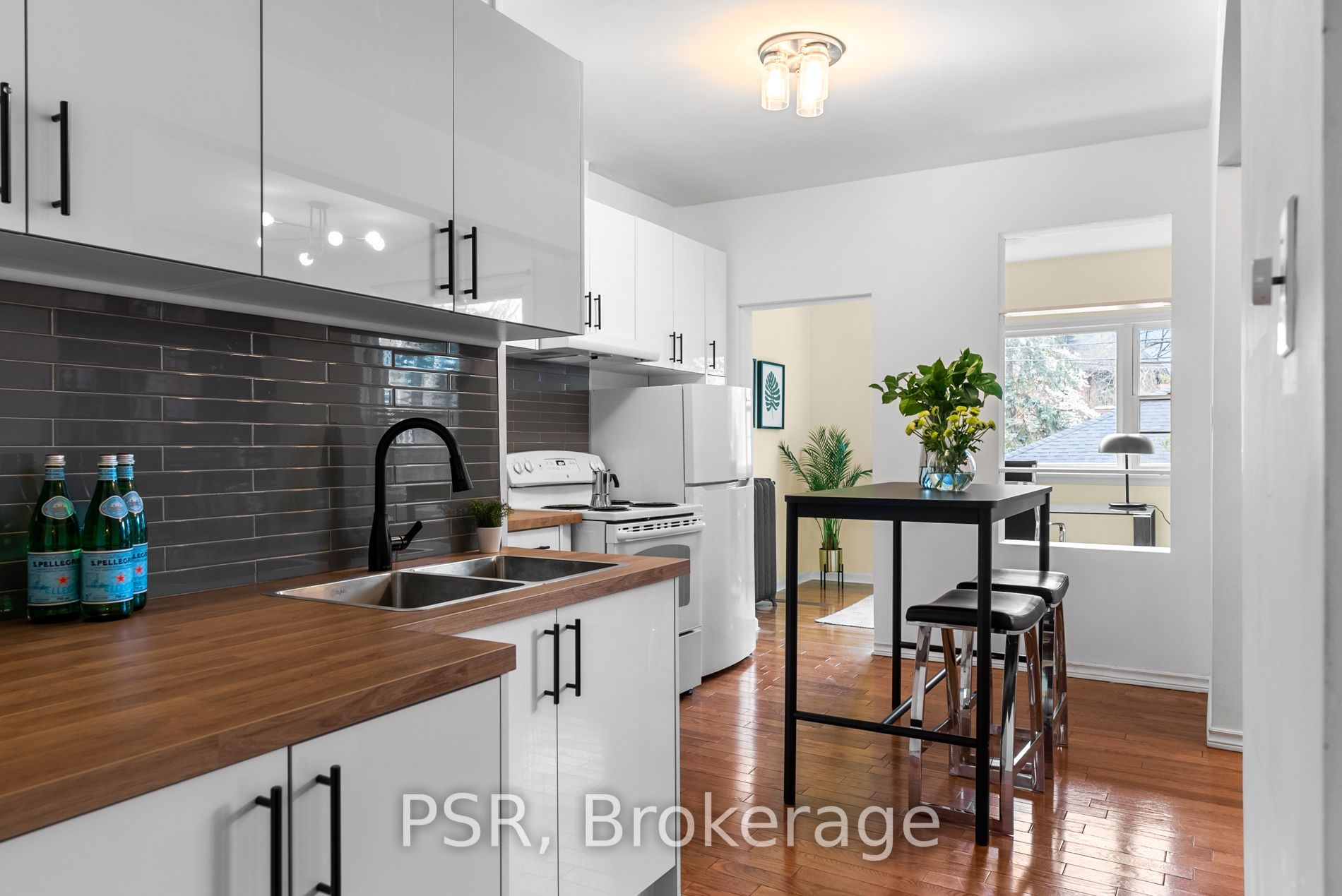Hardwood Floor Eat-In Kitchen Backsplash