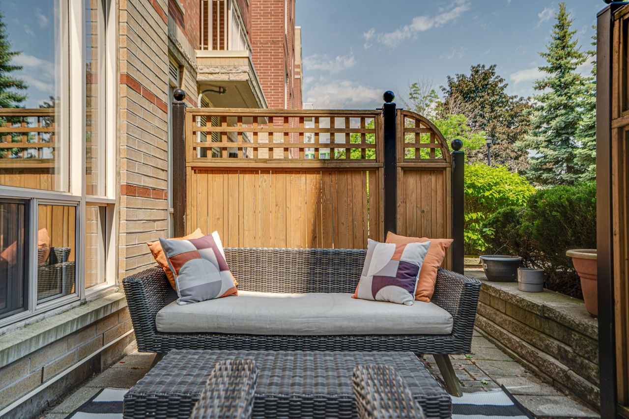 Beautiful, well maintained Main Floor Suite With 2 Large Bedrooms (Split Plan), 2 Baths And A Rare 300 Sq Ft Terrace Facing East. Highly Desired Lawrence/Avenue Location Just Steps To The Best Private And Public Schools, Trails, T.T.C And Pusateri's. Lots Of Visitor Parking And Friendly 24hr Concierge.