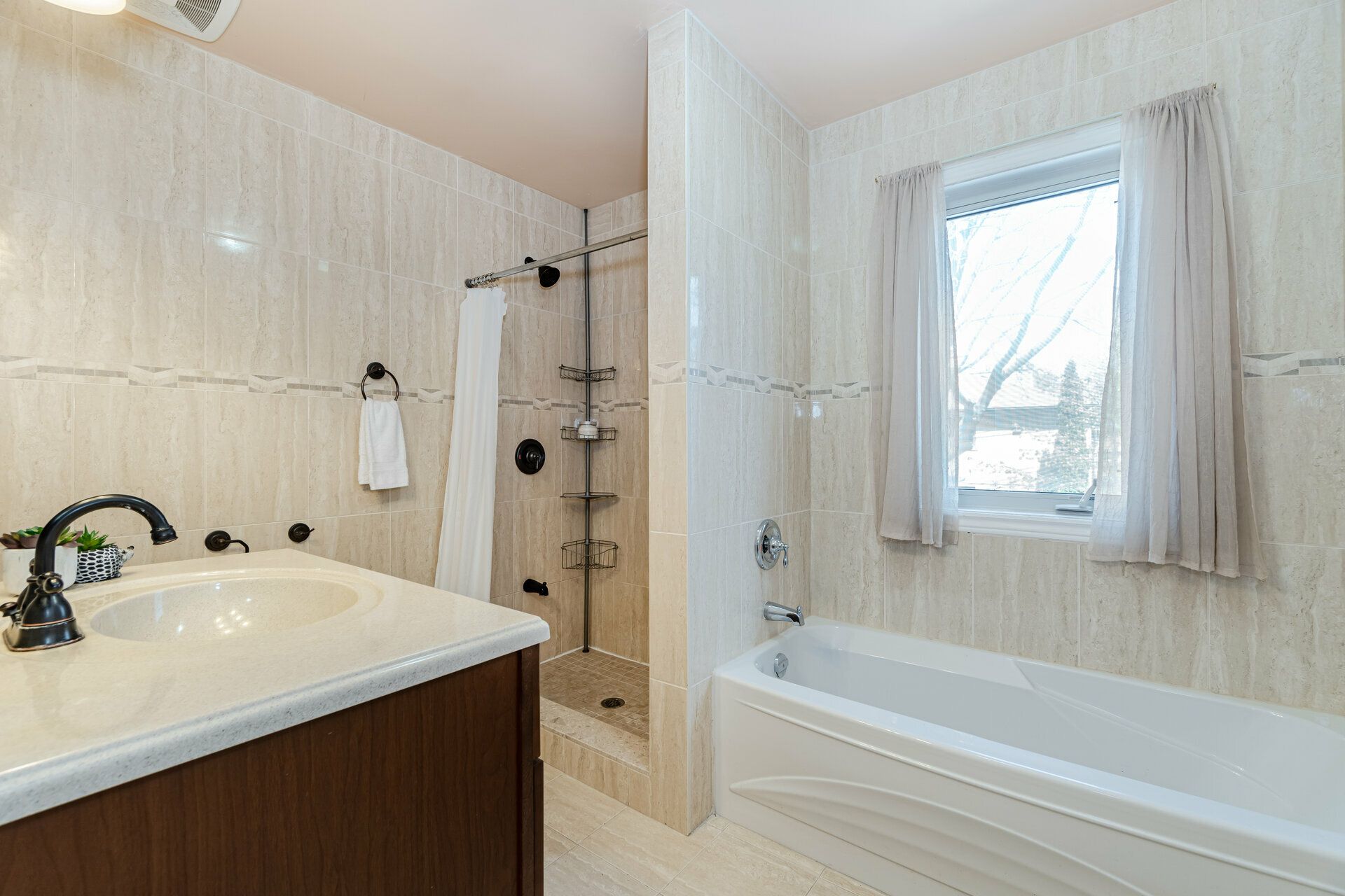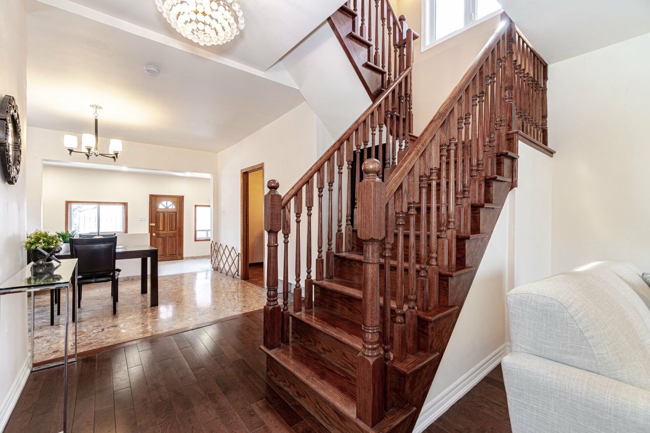 Spacious Main Floor Layout With High Ceiling, Oversized Living & Dining Open Conveniently To The Large Eat-In Kitchen, Side Entrance Off The Kitchen. Perfect For Hosting Dinner Parties! Set Up Your Office / Library In The Large Study Room On The Main Level With New Flooring; Simply Use It As A 4th Bedroom. The Upper Level Features 3 Spacious Bedrooms & A Fabulous Family Bathroom. The lo Level Is Finished With A Separate Entrance & Features A Rec Room & Laundry Room. Renovated Bathrooms.