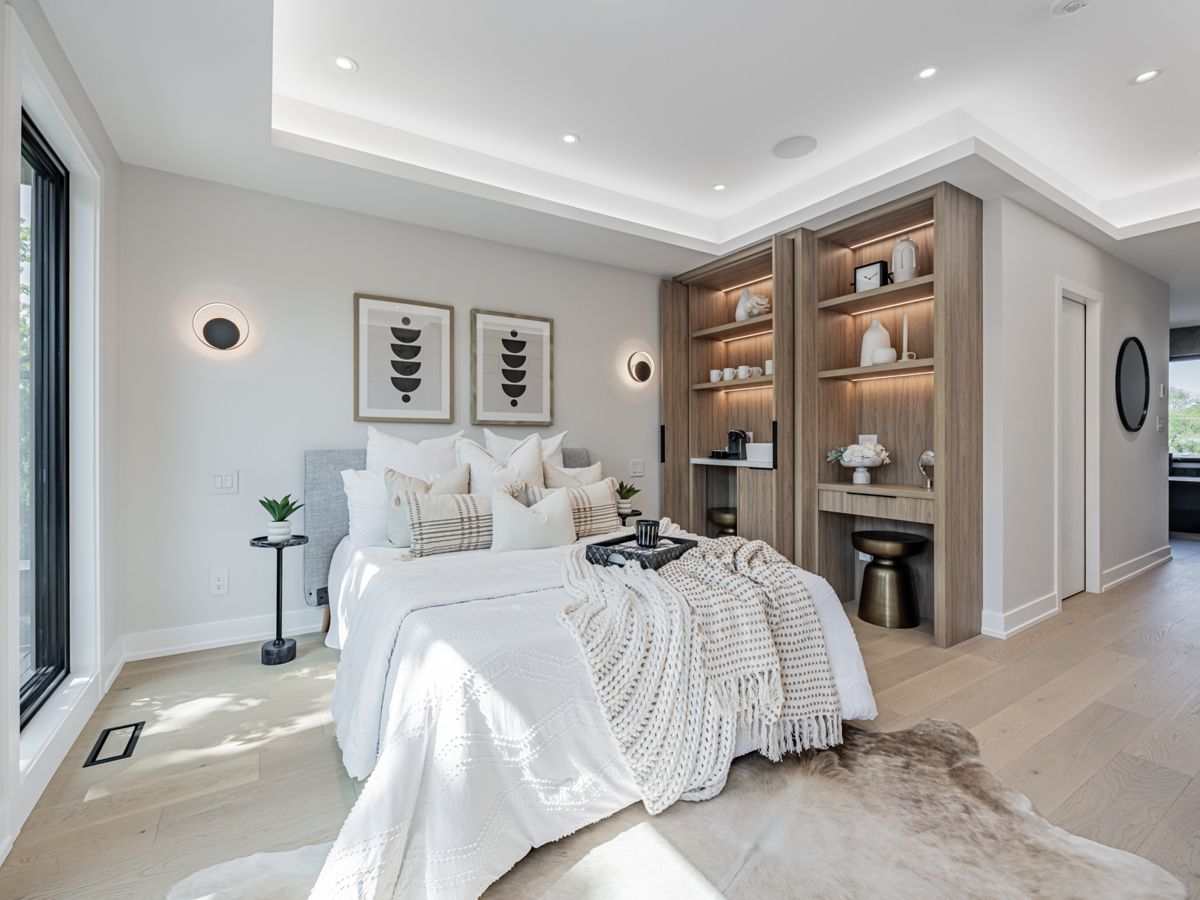 Contemporary custom built high-efficiency home in the prestigious Cedarvale neighbourhood. This house has a total of new finished area of 2,895 sq. ft with an exceptional open concept main floor with high ceilings and tons of natural light, white oak flooring, stunning linear corner gas fireplace, and entertainment kitchen with built-in appliances. Equipped with surrounding sound system, surveillance system, central vac, washroom heated floors, and for your full comfort, a home elevator. All bedrooms contain walk-in closets, the primary bedroom features a wet bar, a gas fireplace unit, and a relaxing spa ensuite. In the basement, you have a 300 bottles wine cellar and a fully operational wet bar. Last but not least, a coach house that can be used as your personal gym or home office. Close to Toronto's top schools, shops, restaurants, and transit. It is one of Toronto's very best neighbourhoods!
