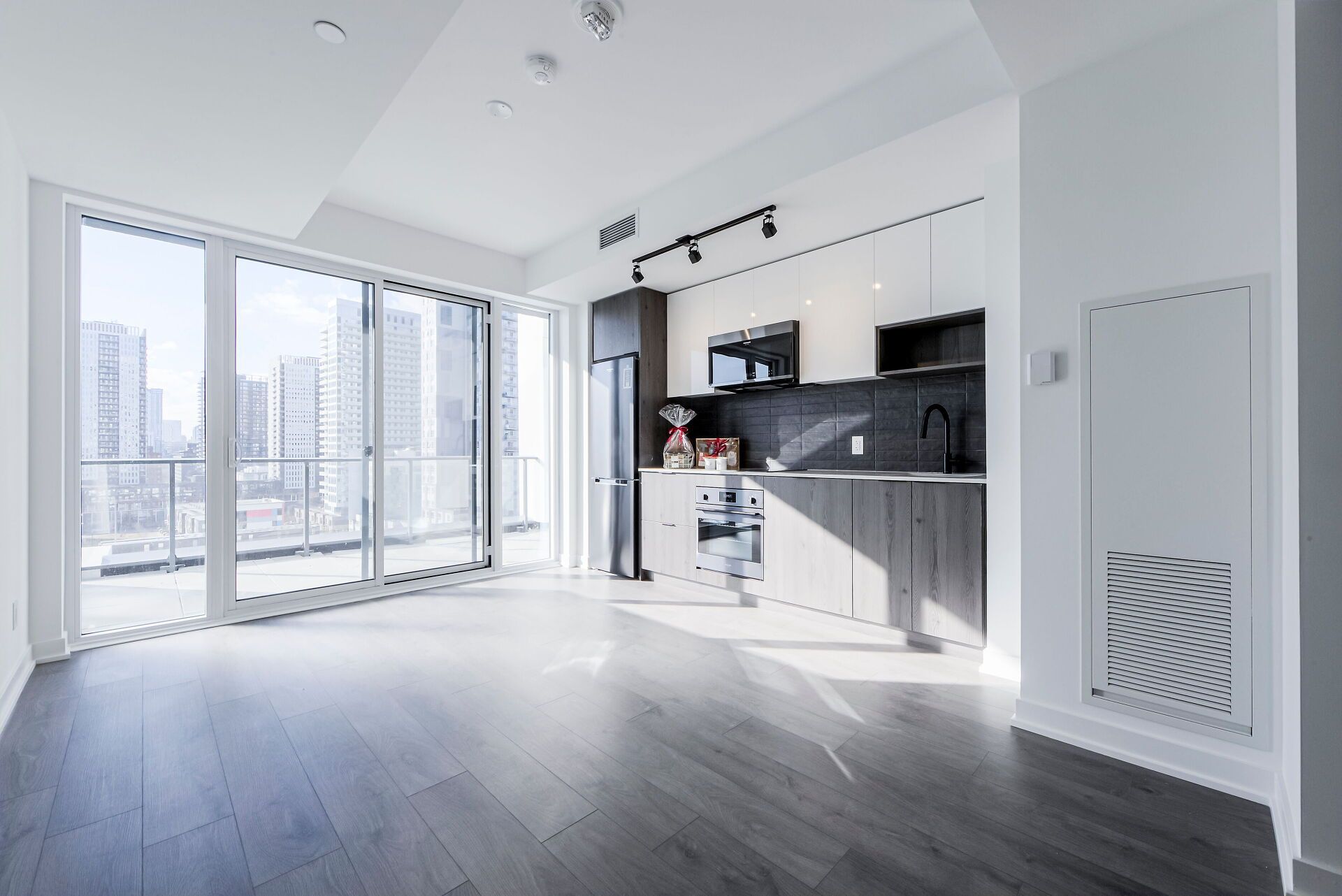Brand New Never Fived-In Before, Luxurious 1 Bedroom + 1 Full Bathroom, Smart Building With Entry, High End Modern Kitchen & Appliances, High Ceiling & Floor to Ceiling Window.! Amenities Include Rooftop Lounge and Pool, Games Room, Great Suites, Co-Working Space, Fitness Yoga Studios Few Steps To Public Transport - TTC's Main Streetcar Routes / Easy Access To DVR & Gardiner Expressway / Close To Eaton Centre Mall, Toronto Metropolitan University, University of Toronto George Brown College. Grocery Stores, RestaurantsFridge, Microwave, Oven, Cooktop, Dishwasher, Washer, Dryer, All Electric Light Fixtures, Basic High Speed Internet Included With Option To Upgrade On Tenant Cost.