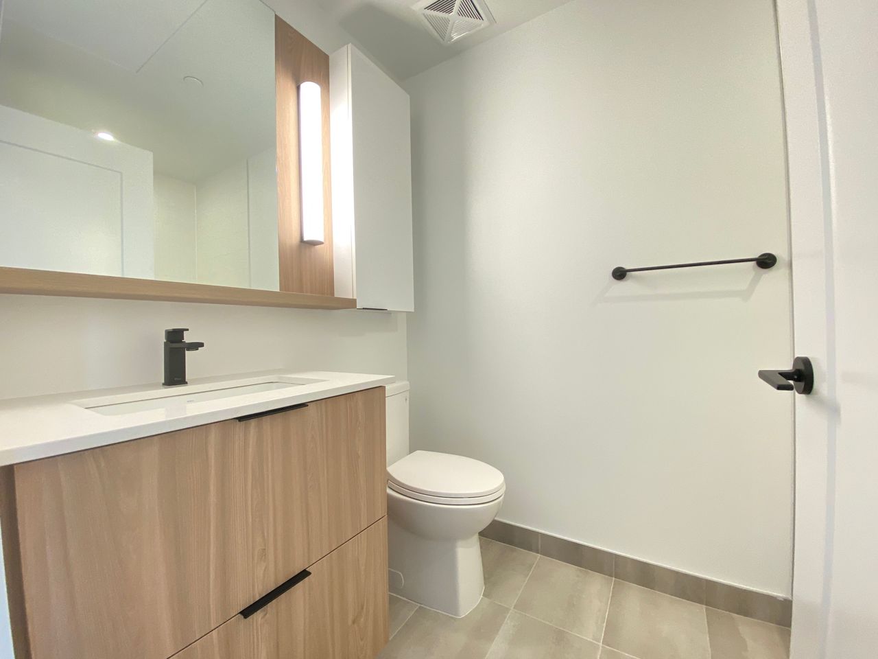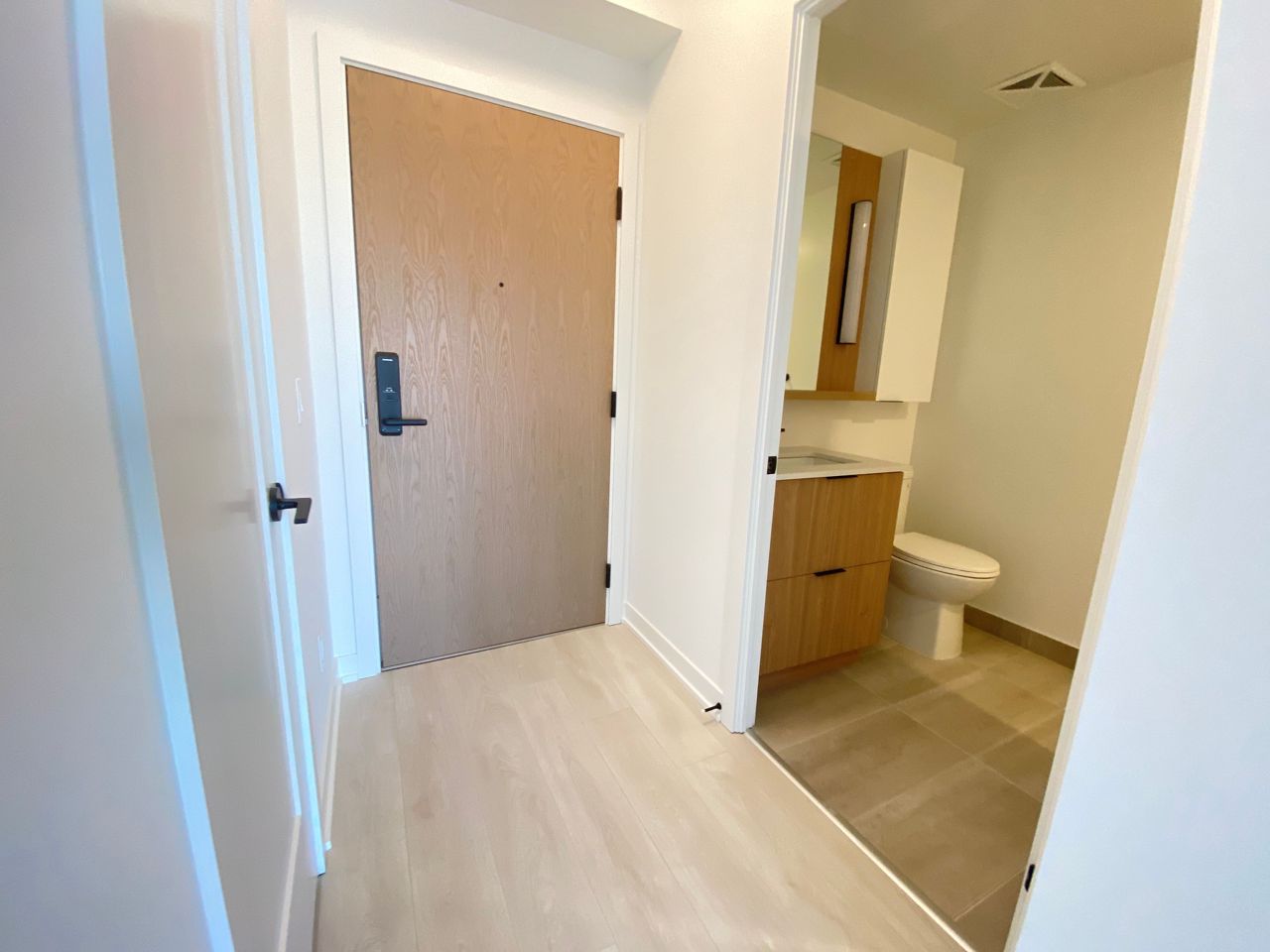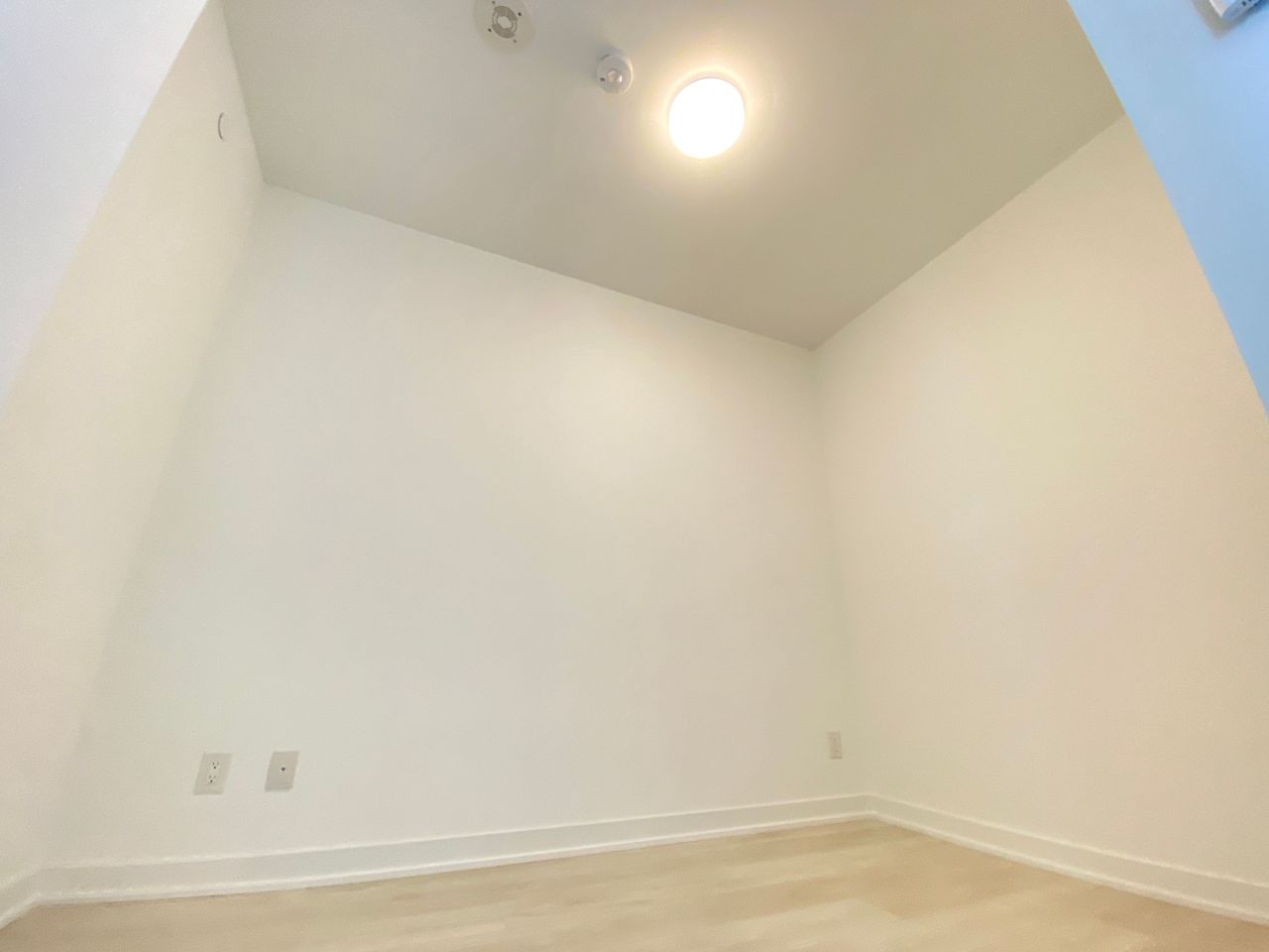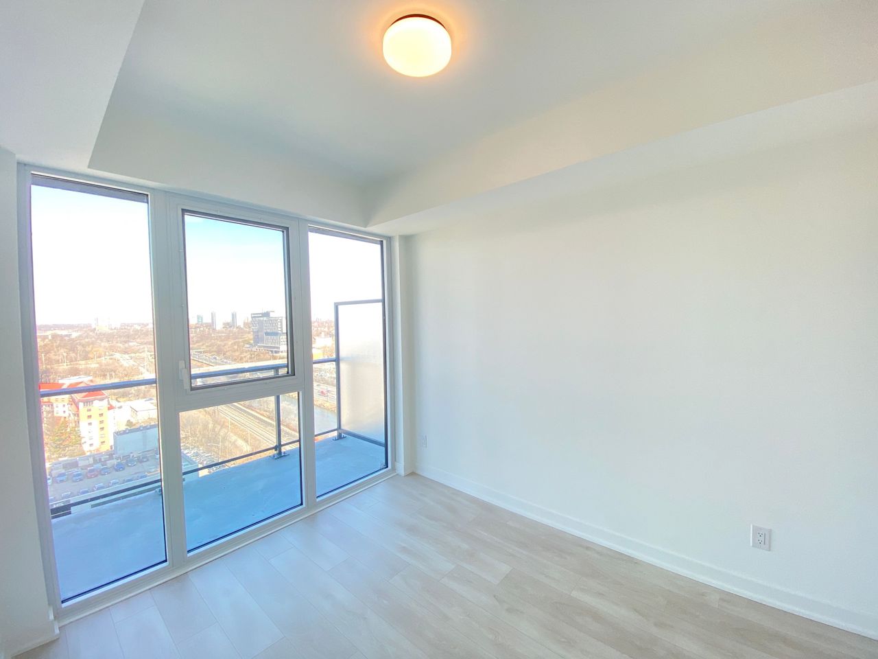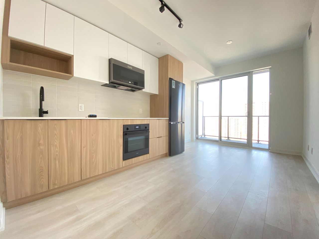 Sunlit Spacious Brand New 1 Bedroom + Den with 1 Bath Condo in Downtown. Den is A Separate Room that can be used as Small Bedroom or Office. Conveniently Located Close to Dundas St. & Queen St. Hop on a Streetcar to reach Downtown Core. Walking Distance to the East Harbor & Queen St. Walking Distance to the East Harbor Commercial, Short Distance to Ryerson University. Amenities Include Rooftop Terrace, 24 Hr Concierge, Guest Suites, Outdoor Pool, Firepit, Outdoor Dining Stations, Comprehensive Workout Centre, Fitness Studio, Co-Working Rec Spaces and More. Close To Queen, King, Cork town, 10 Mins to Yonge St, Quick Access to Gardiner, Bayview, DVP Lakeshore.New S/S Fridge, Flat Top Stove, B/I Dishwasher And Microwave. Quartz Countertop, Ceramic Backsplash. Washer And Dryer. All Electrical Light Fixtures. One Above Ground Parking Spot And One Locker. No Pets, No Smokers.