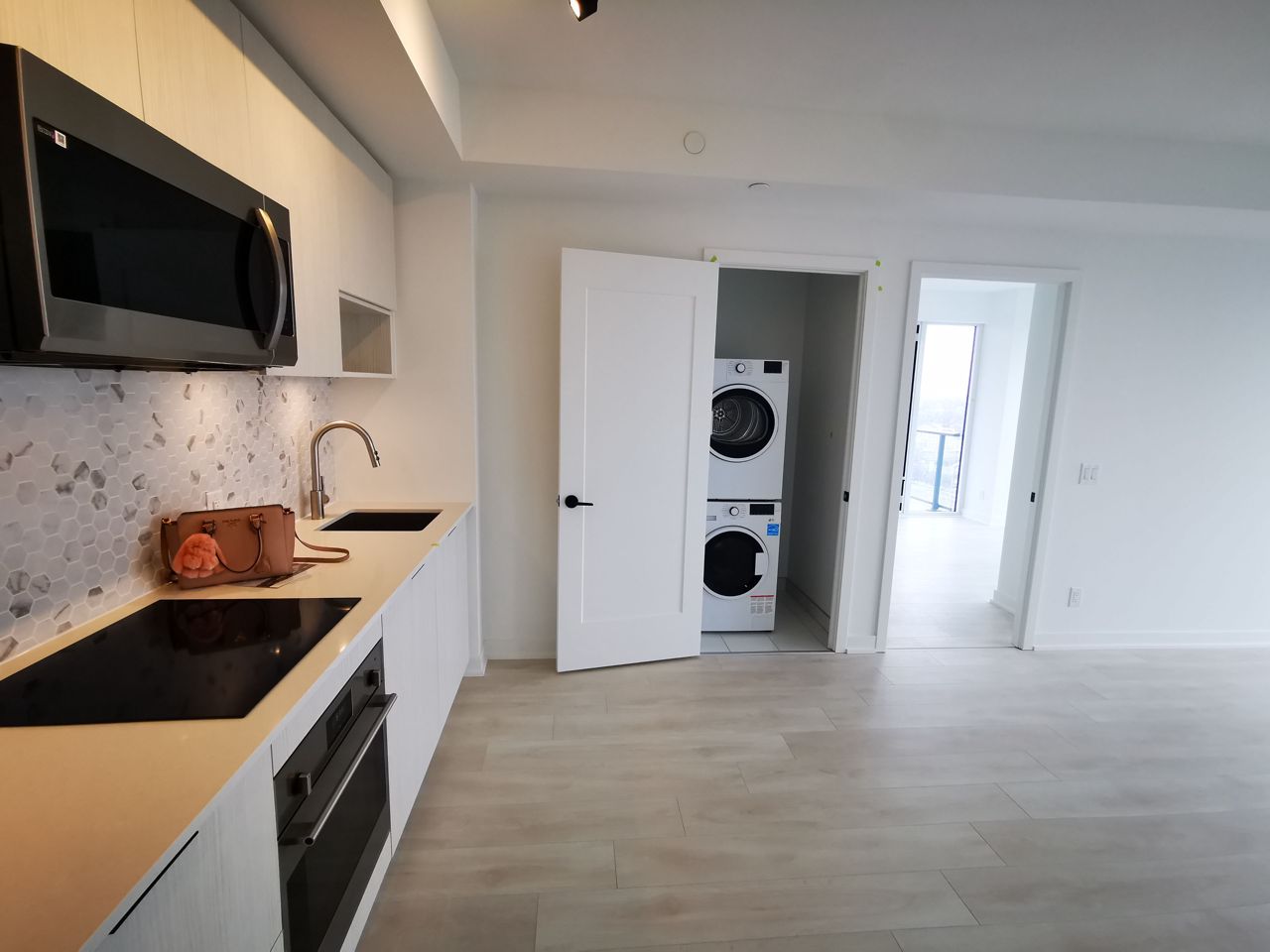 Welcome to this luxurious brand new 2 bedroom 2 bathroom condo including one parking and one locker, with stunning NE clear view, located in the emerging Downtown East, where sophistication meets urban living! 10k upgrade in the unit!!! This condo unit features spacious 9' smooth ceilings for an open and airy feel, upgraded quartz countertop and ceramic backsplash in the kitchen, Stainless Steel Appliances, and large living space with ample natural light. Steps away from all amenities, public transit, and universities. Proximity to the Financial Core, Riverdale Parks and Trails, Distillery District and Tommy Thompson Park, etc. Well-quipped gym for your fitness needs, 24-hour concierge for added security, Co-work working space for remote work or study, kids' playroom for family-friendly living, rooftop infinity pool, pets shower room for your furry companions, Party room for entertaining guests. Perfect for Young Professionals and Students!WIFI is included