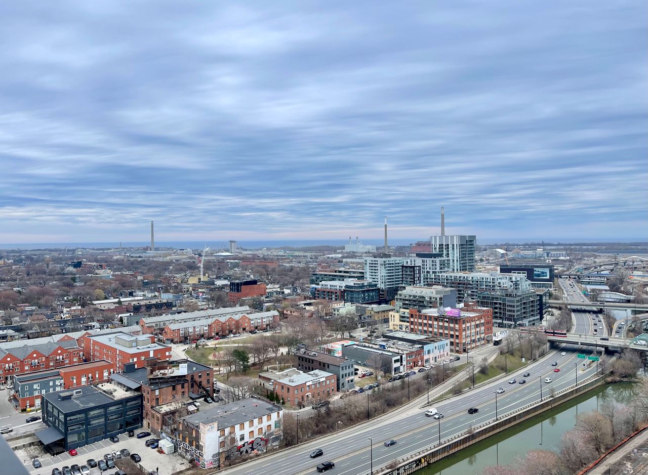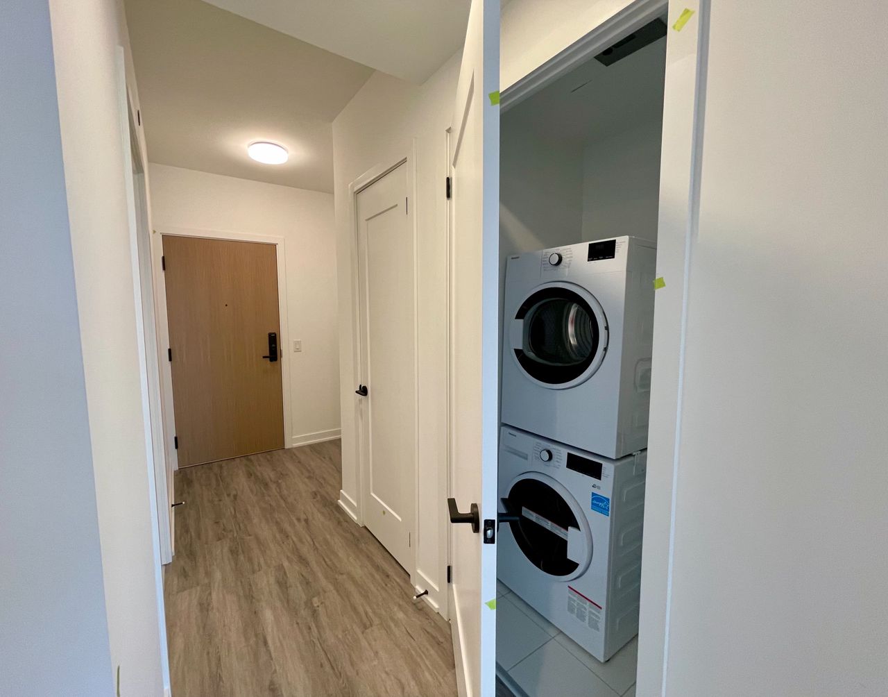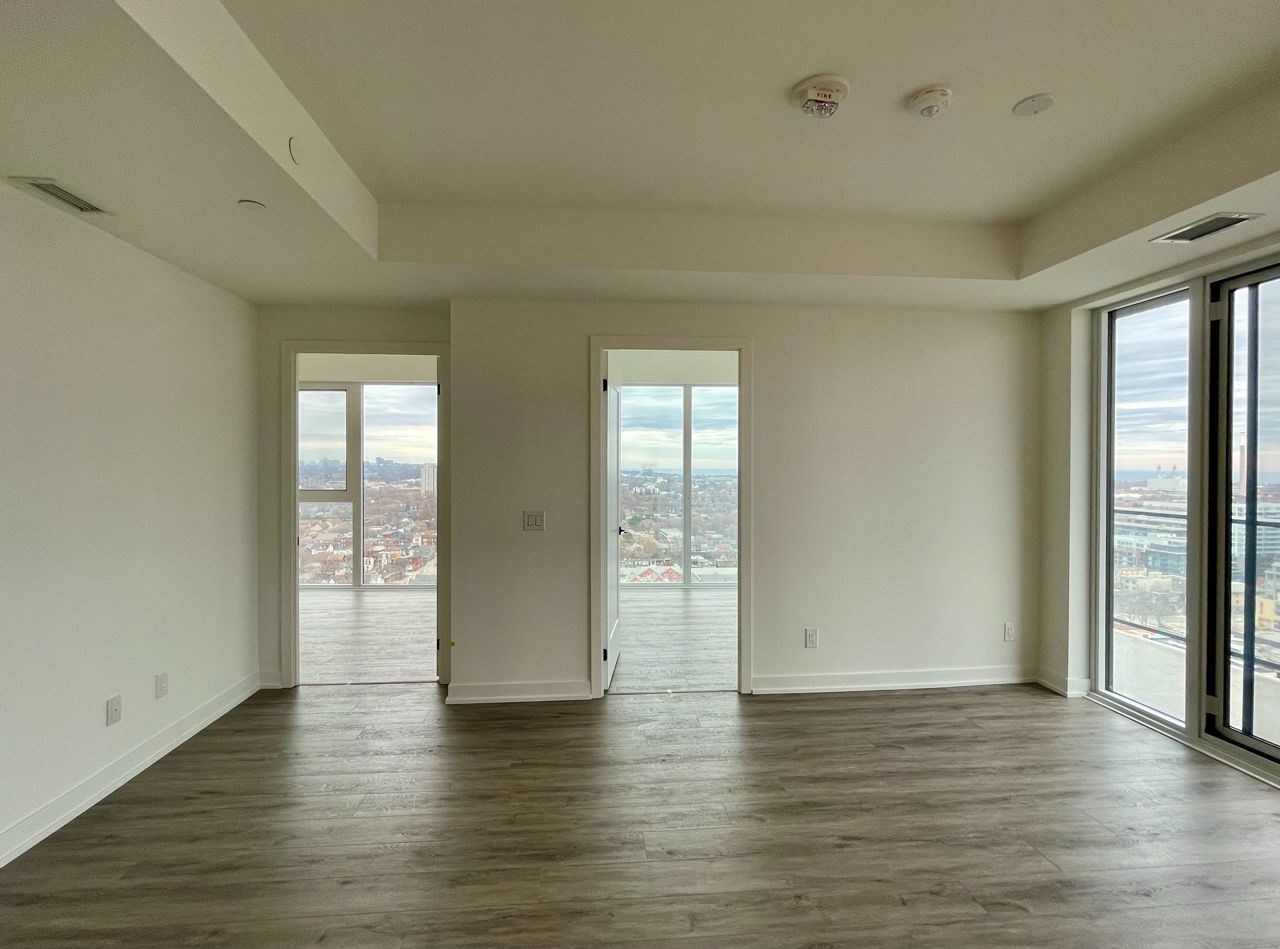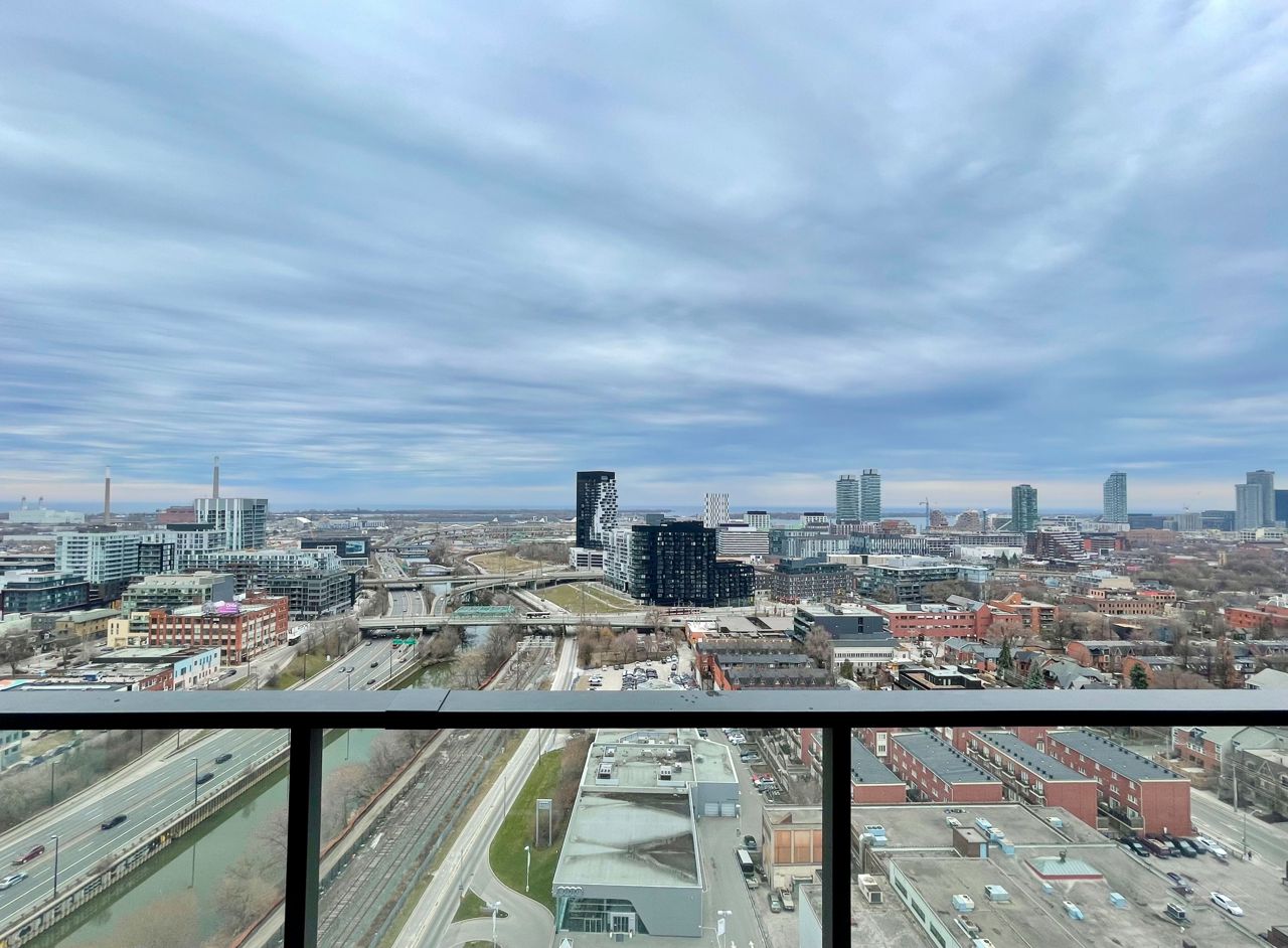 Welcome to this exquisite, newly constructed southeast corner unit boasting 2+1 bedrooms, 2 bathrooms, along with convenience of one parking spot and a locker. Revel in breathtaking, unobstructed views of the lake and skyline. Luxurious features include keyless entry, a smart home system, and soaring 9-foot smooth ceilings.This unit has undergone a 15K upgrade, showcasing wide plank laminate flooring, quartz countertops, ceramic backsplash in the kitchen, and a bedroom walk-in organizer. Located mere steps away from an array of amenities, public transit options, and prestigious universities. Enjoy close proximity to the Financial Core, Riverdale Parks and Trails, the Distillery District, Tommy Thompson Park, and more. Amenities abound with a 24-hour concierge, a 12th-floor rooftop terrace boasting an outdoor pool and cabanas, a party room, fitness center, co-working space, games room, yoga studio, guest suite, and more. Experience urban living at its finest.******EV Parking, WIFI is included******