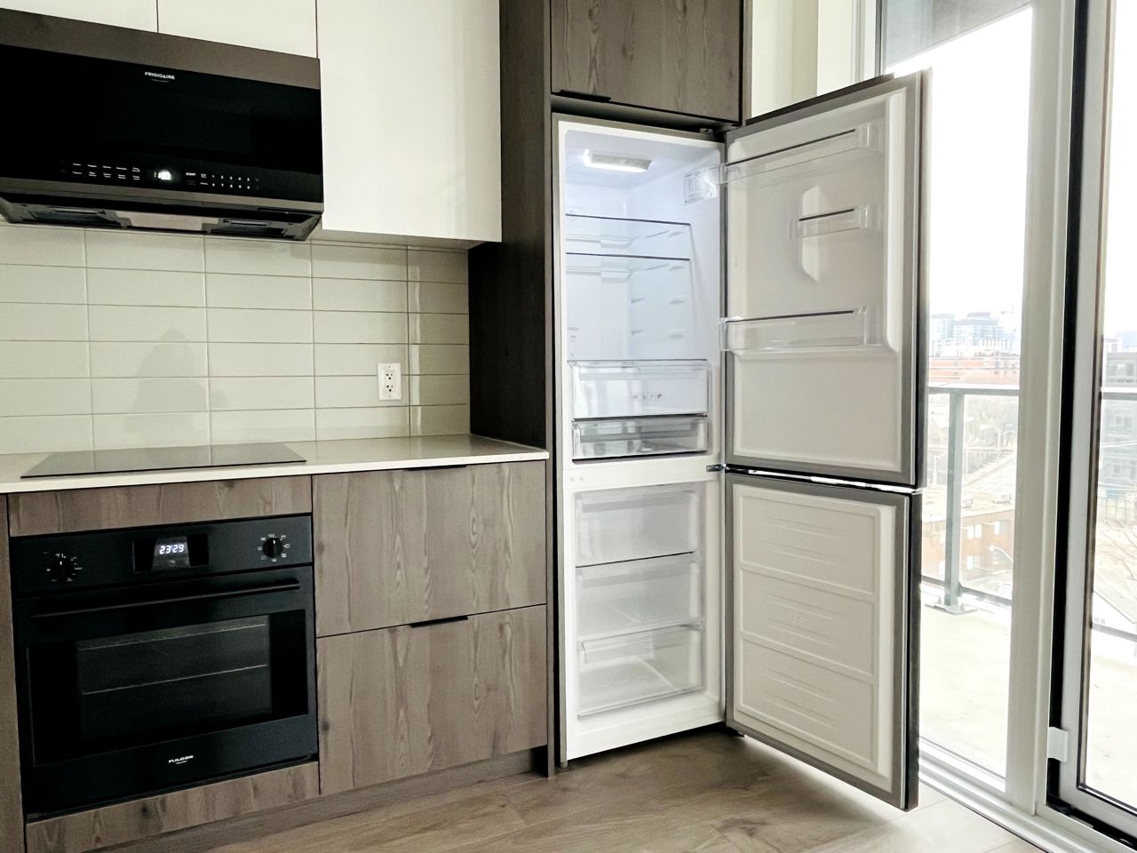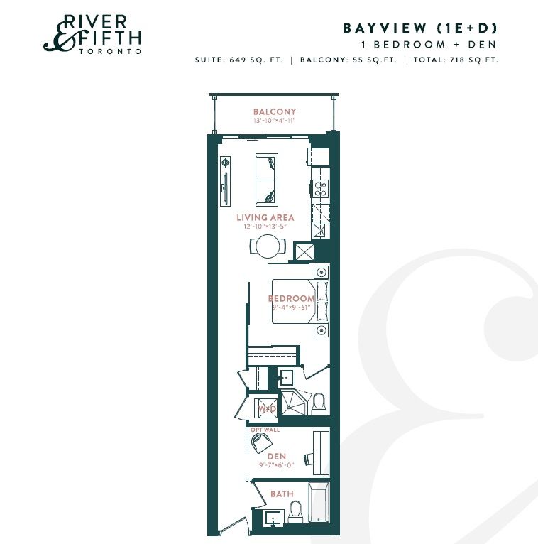 Brand new 1-bedroom unit with a den and 2 full bathrooms, spanning 649 square feet plus a 70-square-foot balcony. The den is convertible into a second bedroom. Located on the west side of Broccolini's impressive River and Fifth Condo Residence. Features include 9-foot ceilings, high-speed internet, a 24-hour concierge, gym, outdoor pool, co-working space, terrace, and a guest suite. The unit boasts high-end finishes, as do the common areas. Conveniently situated steps away from green spaces, conservation areas, paths, parks, restaurants, cafes, and a 2-minute walk to the TTC station. Close proximity to Eaton Centre, two universities, cultural centres, hospitals, and much more.Fridge, Stove, Oven, Microwave, Dishwasher, Washer and Dryer.