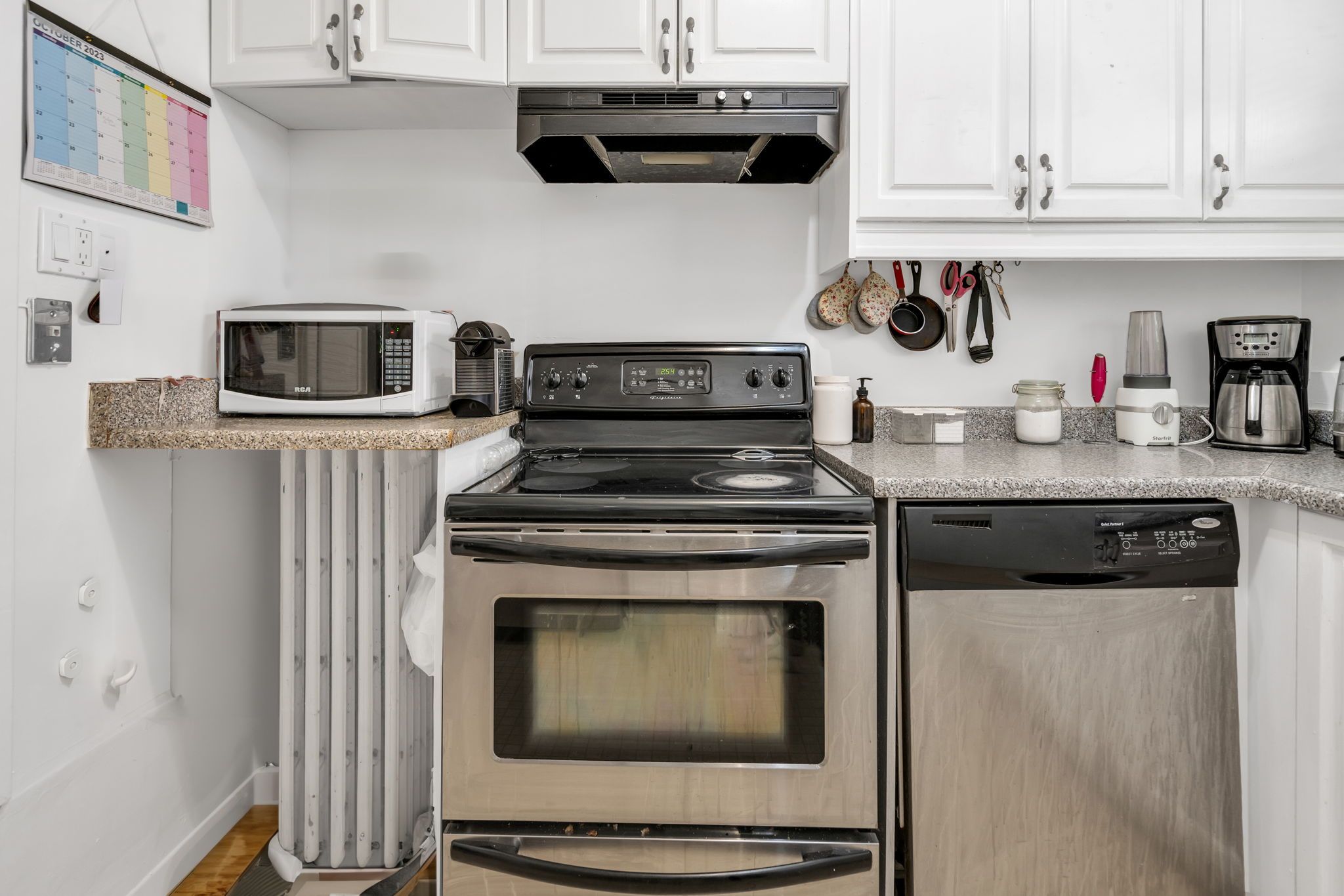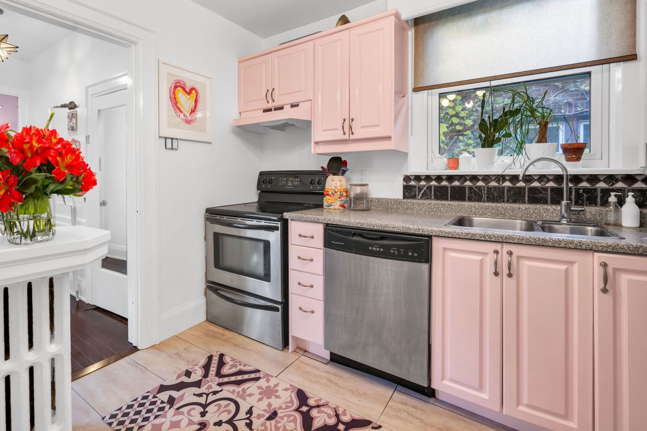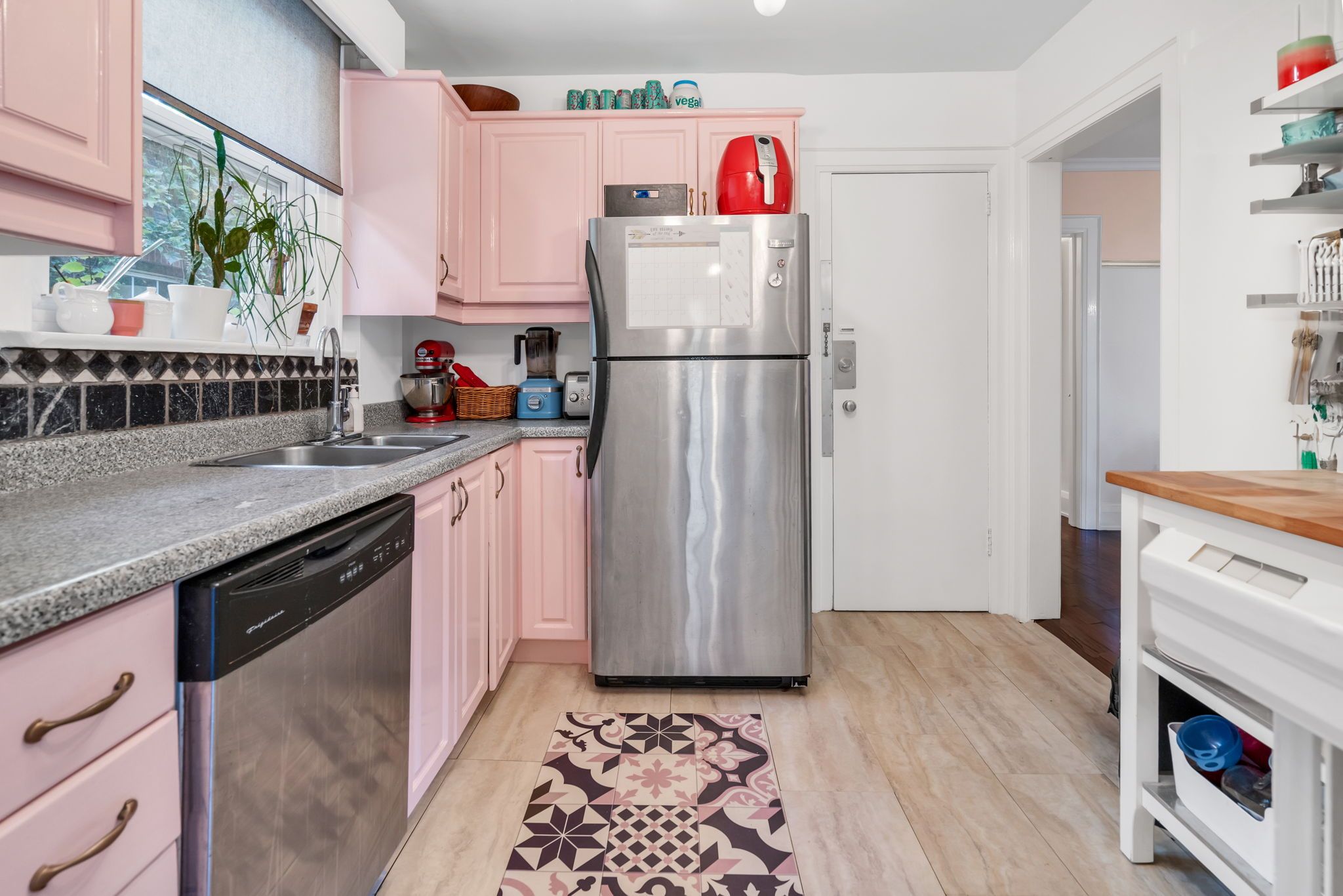BR, 2 BA, 2 fully-equipped kitchens & a generous living & dining area graced w/ a bay windows,