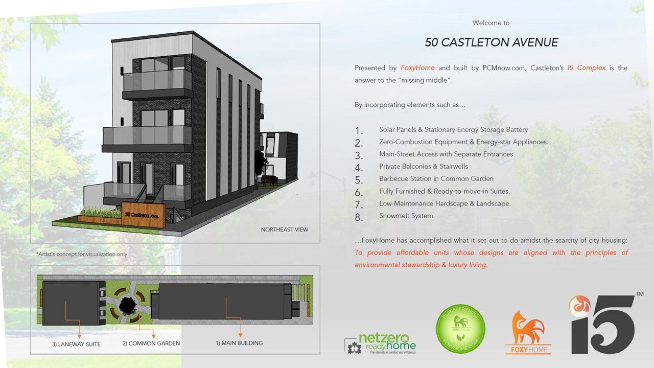 FoxyHome specializes in boutique multi-family rentals in Toronto, offering energy-efficient, transit-friendly housing with this location having a bus stop right at the front door. Our apartments are 40% more energy-efficient, reducing costs and the need for a car. New-immigrant tenants can build credit through our reported rental history. Our fully furnished apartments feature modern, eco-friendly furniture from the Republic of Georgia. Coupled with a unique rental guarantee insurance and a trusted construction partner, PCMnow.com Inc., FoxyHome delivers a comprehensive, financially smart rental experience tailored to new immigrant families and those securing their financial future.Reserve your unit now to ensure availability once completed, availability is pending municipal building permit approvals but we will honor the rental price at time of application and refundable deposit of last months rent