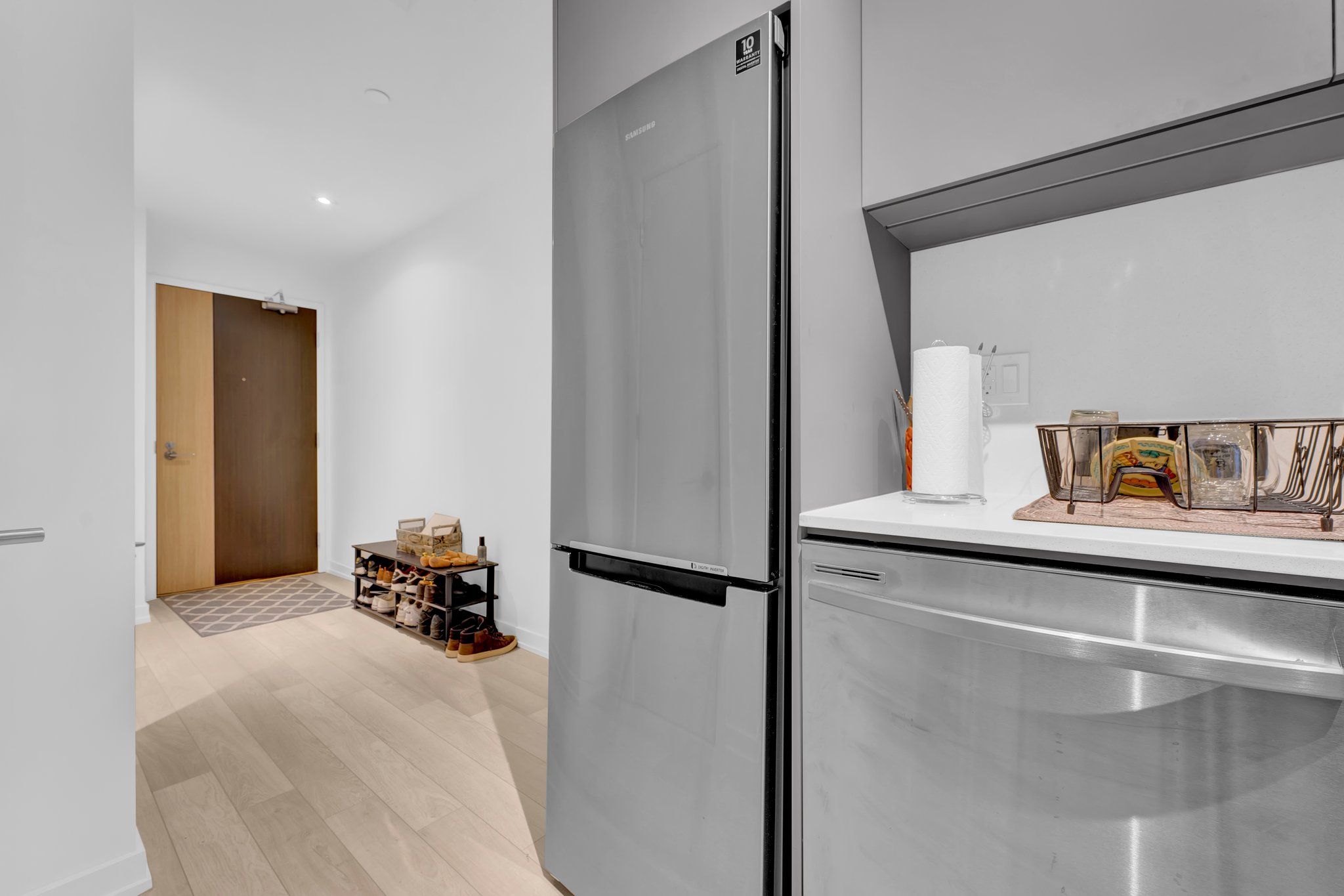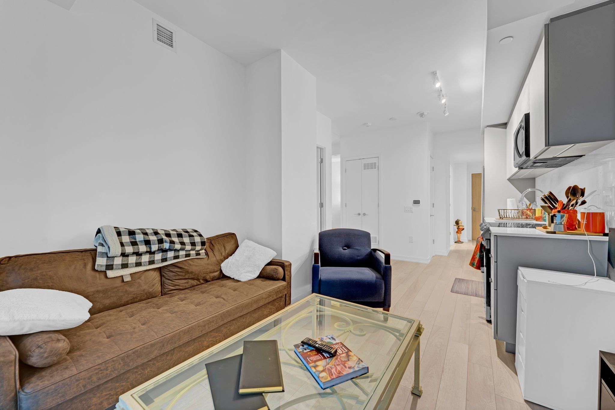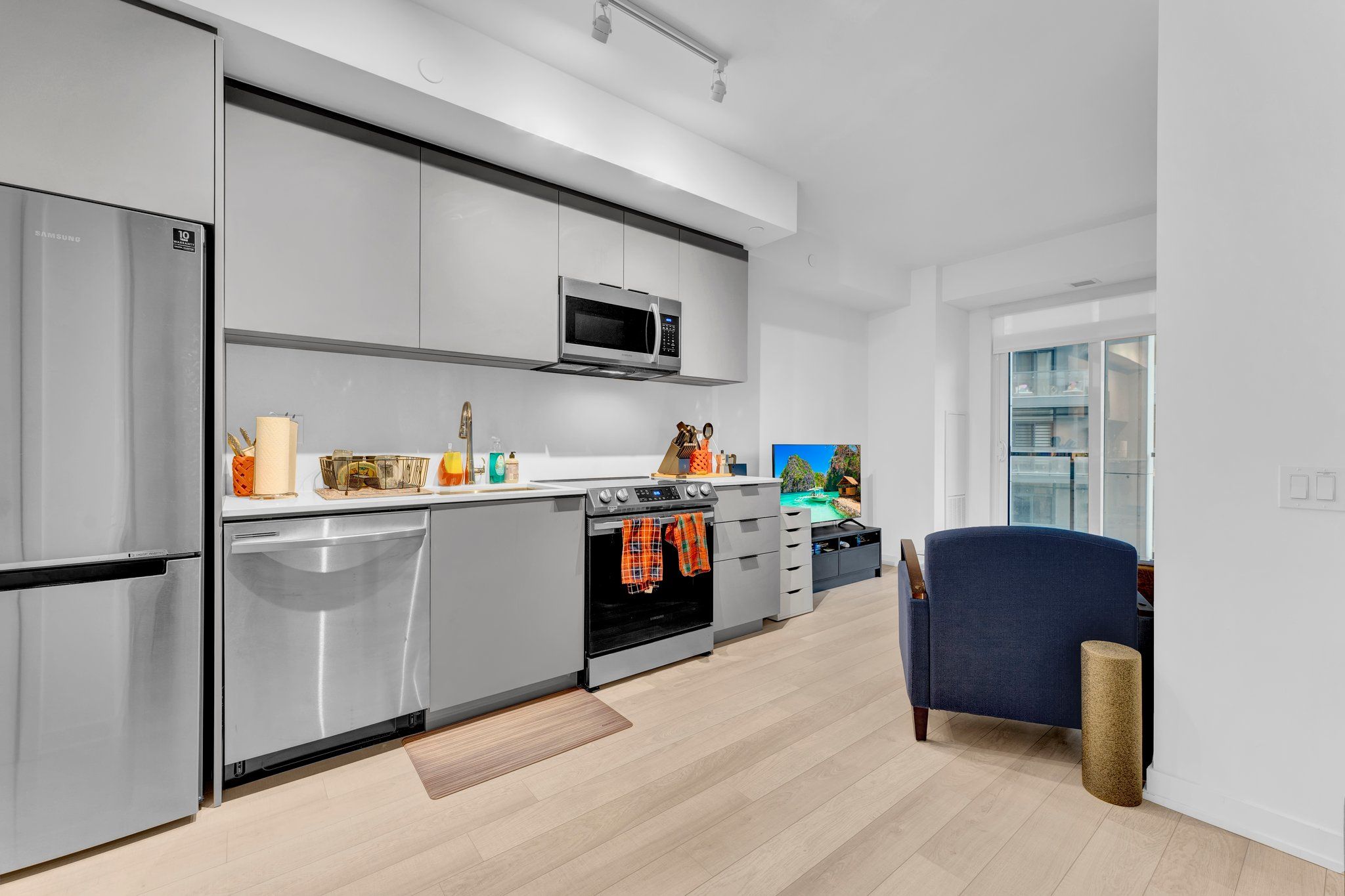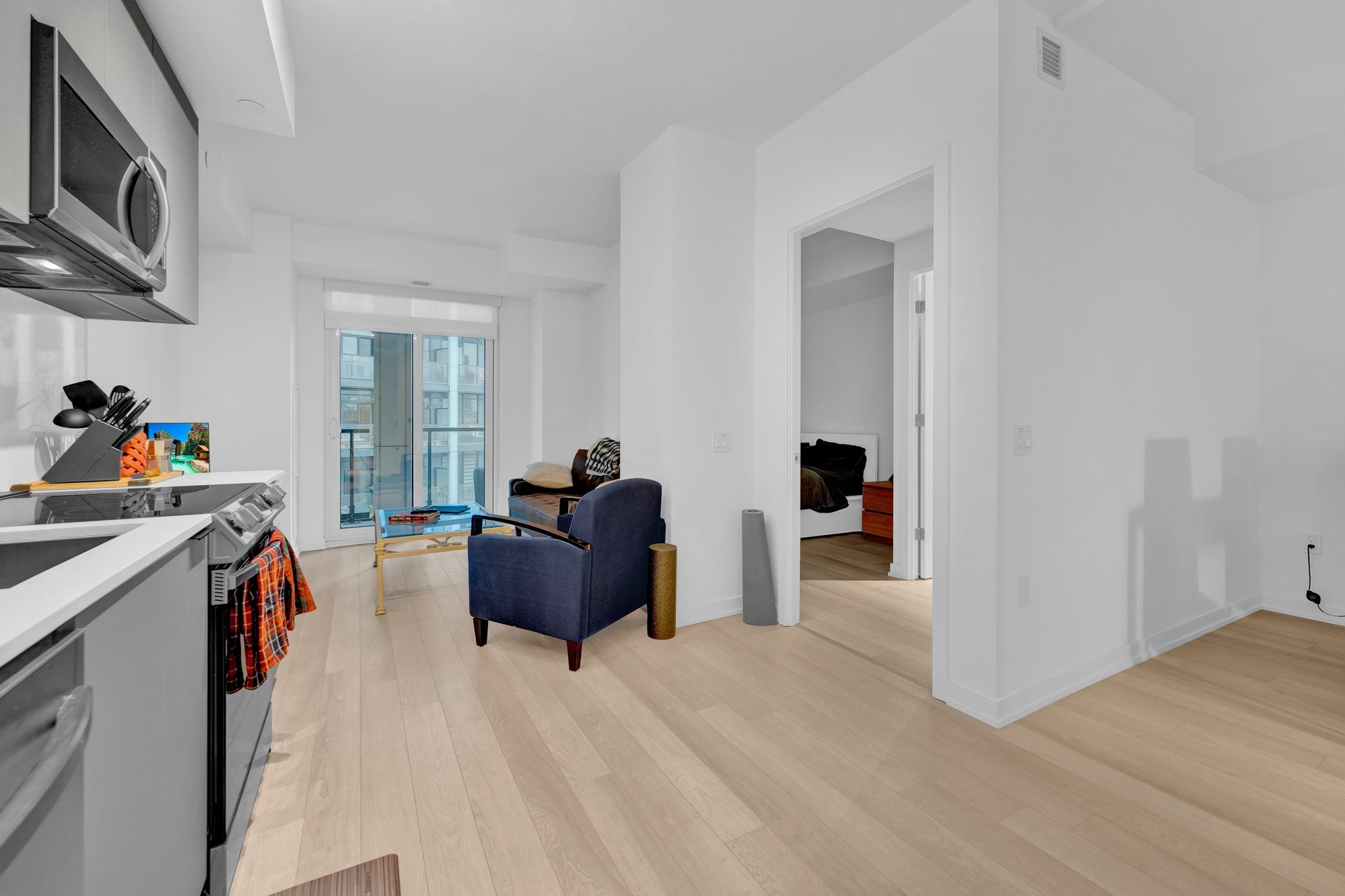 Welcome to urban luxury living in the primary neighbourhood of downtown Toronto. This sophisticated one-bedroom condo boasts an additional den, creating a versatile space ideal for a home office, guest room, or cozy retreat. Meticulously upgraded with a focus on modern elegance. Close to downtown attractions such as the Eaton Centre, walking distance to Neighbourhood of Authentic Charm, St. Lawrence Market, Distillery District, shops, restaurants & cafes, financial core, vibrant Queen St. E. & King St. E., George Brown College, theaters, hospitals, parks & steps to TTC streetcar. Gourmet upgraded Kitchen with elegant backsplash and quartz kitchen counter-top. Featuring top of the line appliances and sleek cabinetry. Spacious living area with hardwood flooring. Luxurious bathroom. Ensuite laundry for ultimate convenience.Building amenities include 24 hr concierge, outdoor pool + sauna, party room w/caterer's kitchen, exercise room, yoga studio, artists workshop, meeting room & lounge (WiFi), community garden w/outdoor BBQ & fireplace.