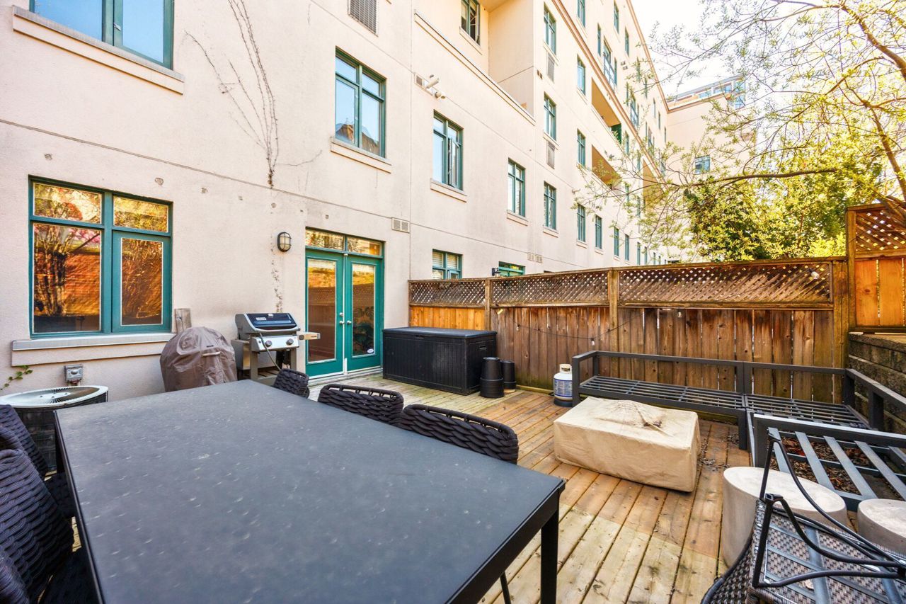 Your next home in the heart of Toronto! Live next to all of the excitement the city has to offer in this fully renovated & stylish 2-storey townhouse. Rental units at 500 Richmond St W rarely come on the market so move fast before it's gone. Ground floor unit means no stairs or waiting for elevators, with Richmond St and transit right at your doorstep! Nestled in the vibrant fashion district, this home offers 1200 sq ft and 9 ft ceilings - beautifully renovated top to bottom in 2024. Including 2 large sunlit bedrooms overlooking a serene 400 sq ft private back terrace perfect for summer BBQs and entertaining. Both bedrooms easily accommodate beds plus dedicated office space, keeping your home office out of the living room. The primary bedroom has a full walk-through closet and sitting area to fit all of your clothes and accessories. The open concept living room is perfect for cozy evenings with a gas fireplace, next to the fully upgraded kitchen & bar with newer stainless steel appliances.A perfect mix of city & convenience for urban professionals, families, or anyone seeking a low-maintenance lifestyle. You'll never be bored here: situated steps from King Wests cultural heart and Queen Streets retail haven, youre surrounded by acclaimed health & wellness destinations like Impact Kitchen, Nutbar, Othership, Body Blitz spa, and Wellbynd - all within a 2 minute stroll. World-class entertainment, top restaurants, boutique shopping, and nightlife abound. Whether its catching a show at the Tiff bell lightbox, dining at a King West hotspot, or walking to a local gallery, the neighbourhood is as energetic as it is livable. Easy transit includes streetcars at your doorstep, bike paths, St Andrew/Osgoode subway stations & the PATH just a 15 minute walk or a 20 minute walk to Union station & the waterfront. Book your showing now, this one won't last long!