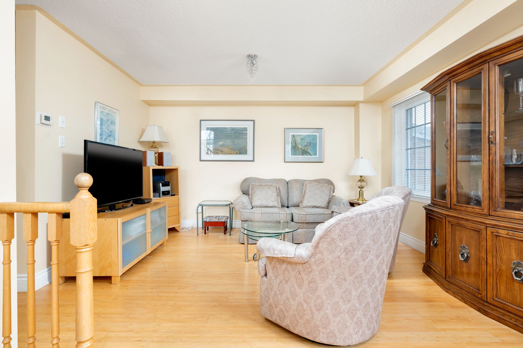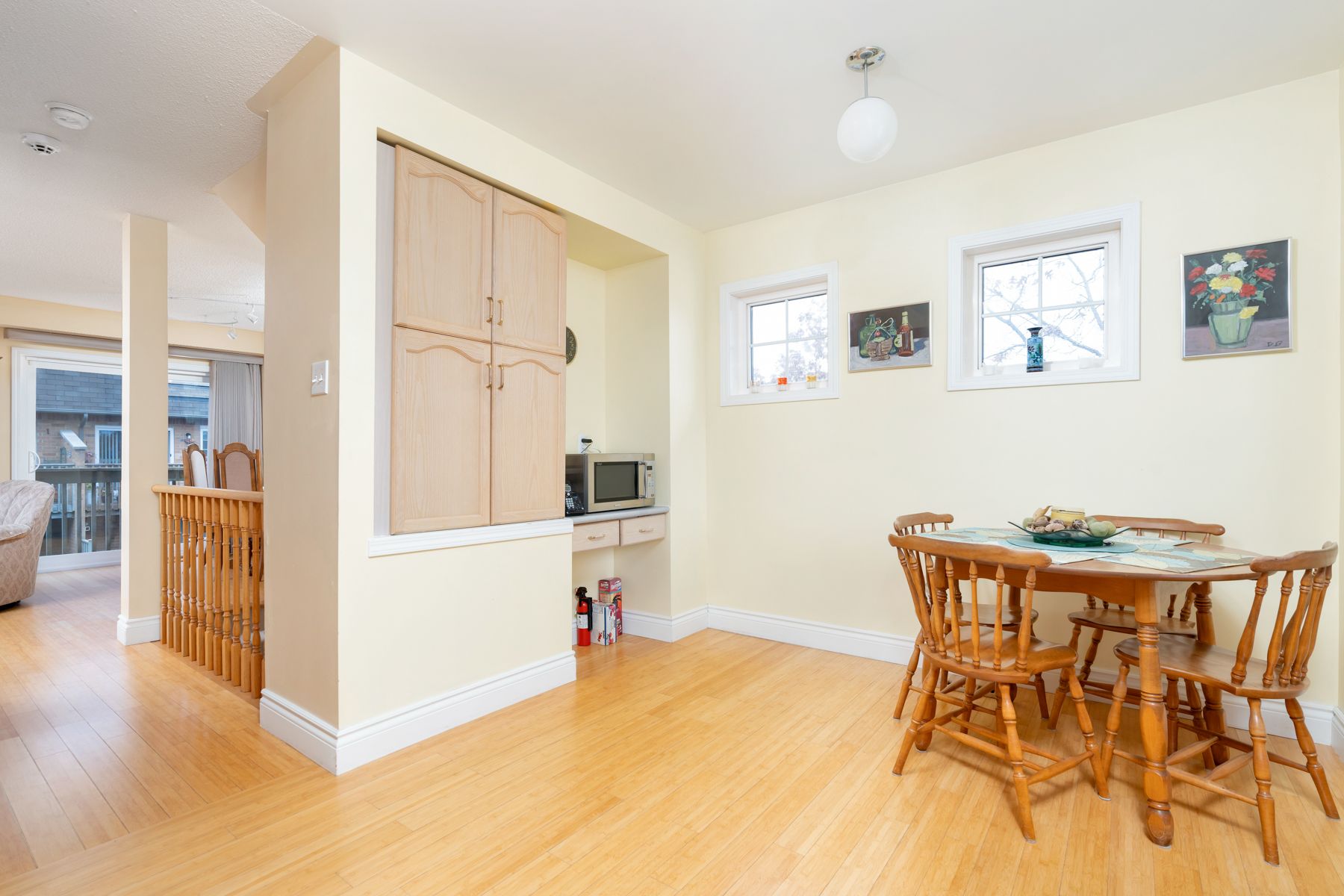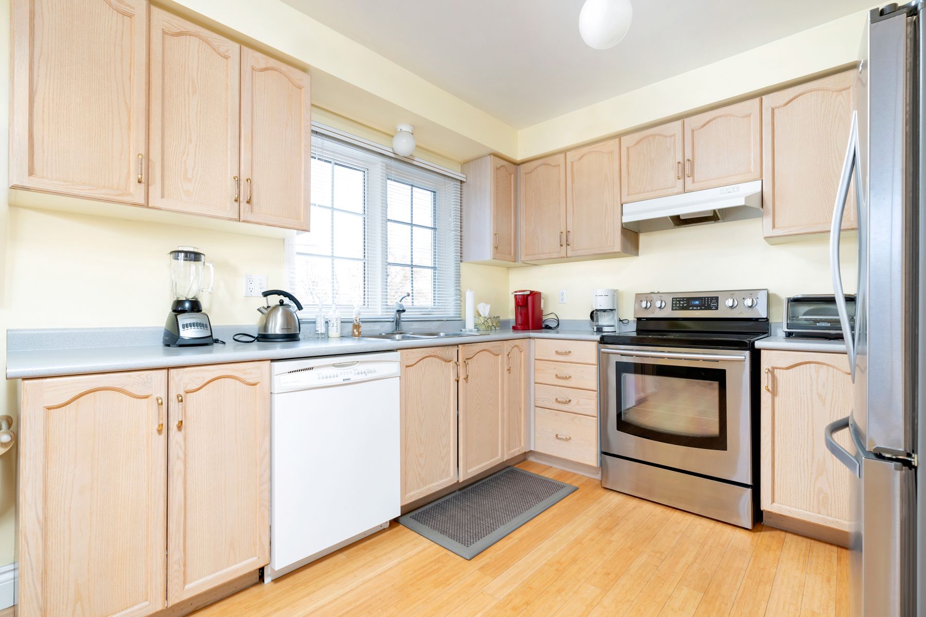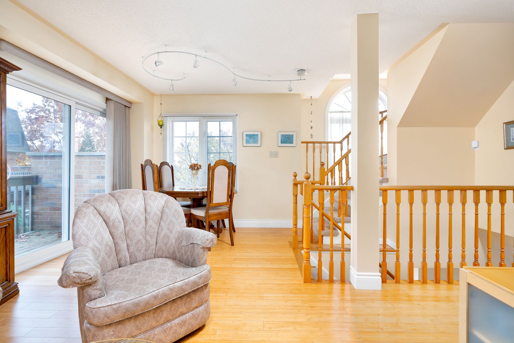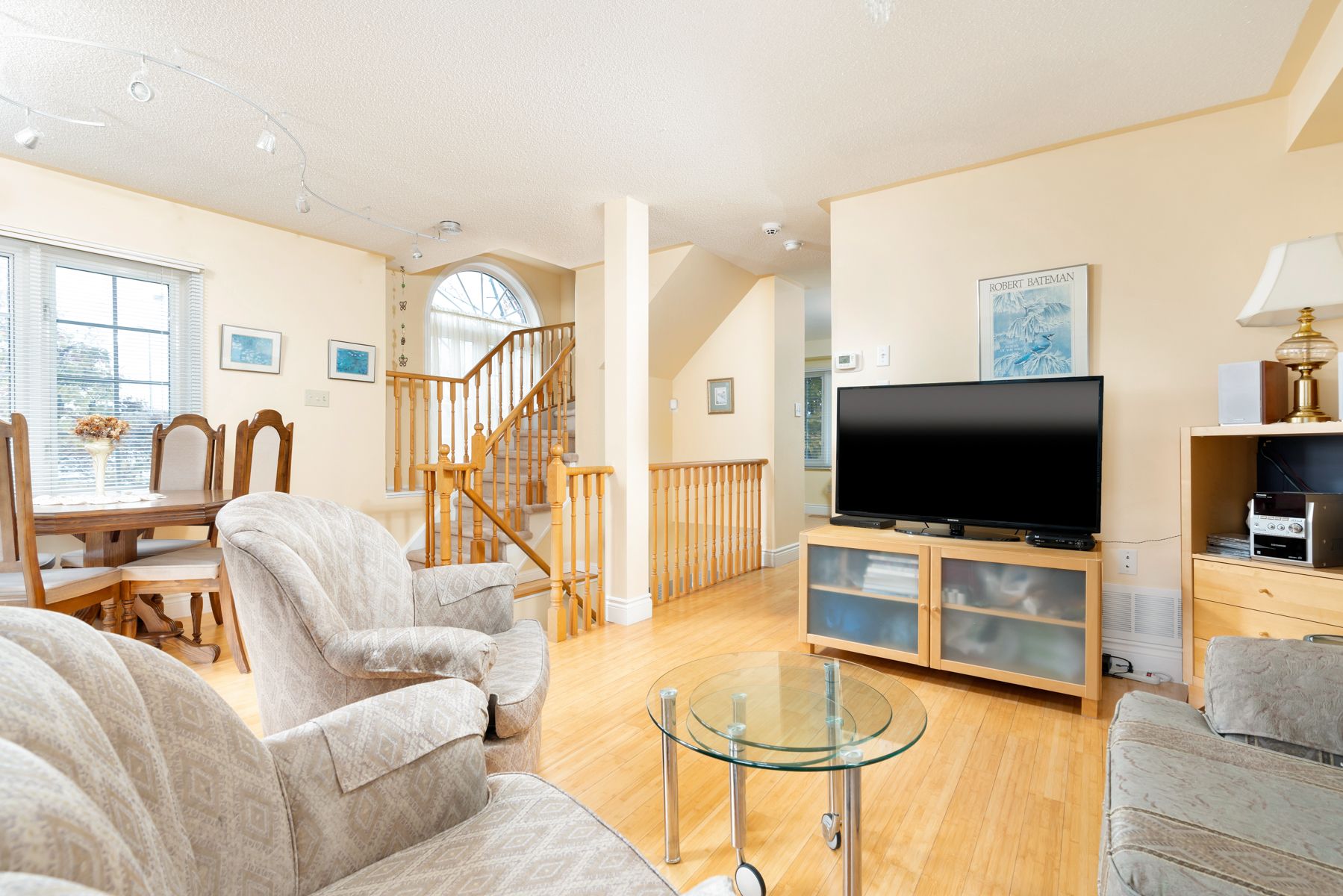 Welcome to 51 East Ave! This lovely 3 storey, 3 bedroom townhome features the perfect blend of charm, function and convenience. Desirable end unit feels like a detached home with a delightful wrap-around porch, private south-facing entry, and natural light from 3 exposures. The main floor features a large, ceramic tiled foyer and walk out to a fenced backyard from the versatile family room, which could be used as a den, office, or home gym. On the second floor you’ll find solid hardwood flooring throughout, and a bright and airy living and dining room with easy access to a convenient 2 piece bathroom. The kitchen is generously sized with enough room for an eat-in kitchen, large pantry and two sunny windows. A spacious balcony that runs the length of the home is the perfect spot for outdoor dining. The top floor contains 3 full bedrooms and 4 piece bath, while the primary suite includes a 2 piece ensuite bath and walk in closet. Private driveway parking and built in garage with remote.Perfectly located in a family friendly community with great schools and recreation nearby. Steps from the lake, waterfront trails and parks. Downtown is minutes away with the Rouge Hill GO Station directly across the street.