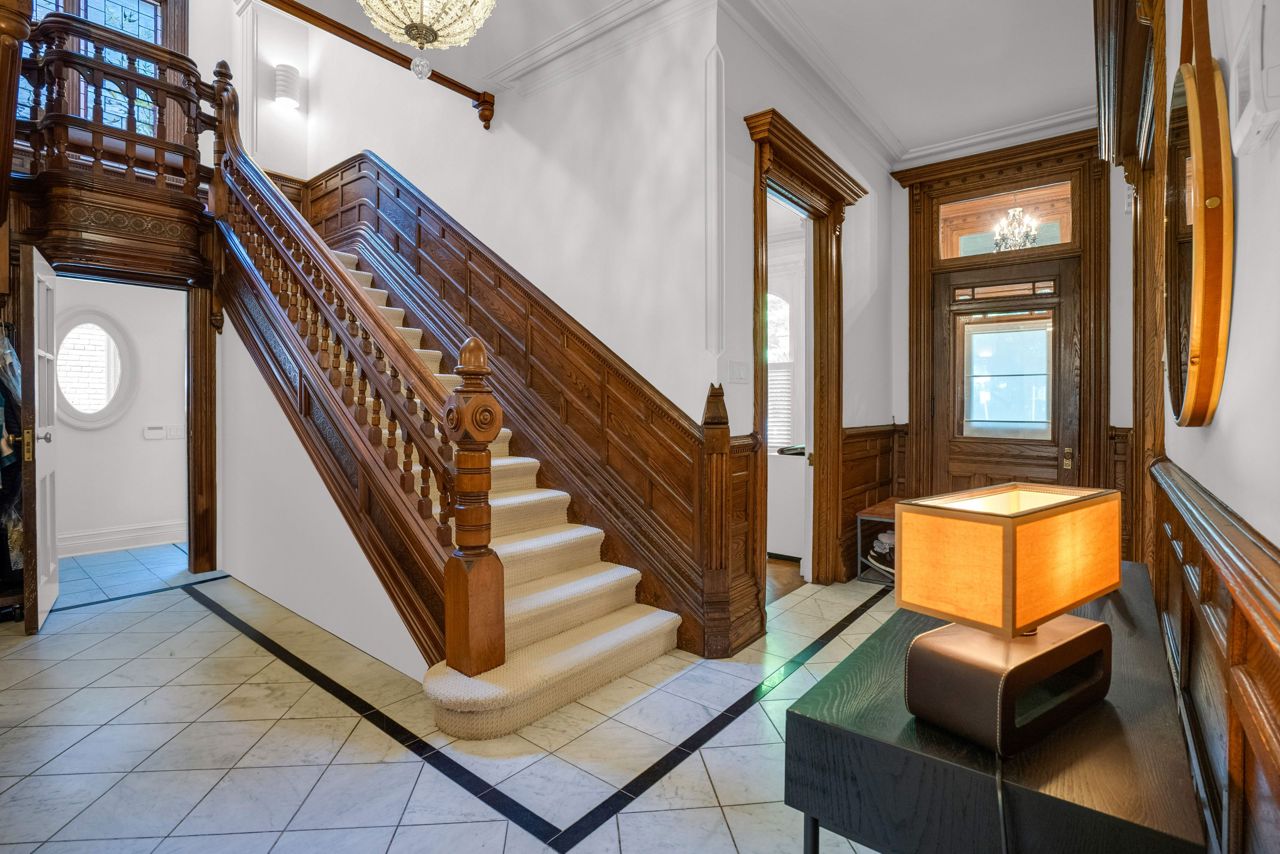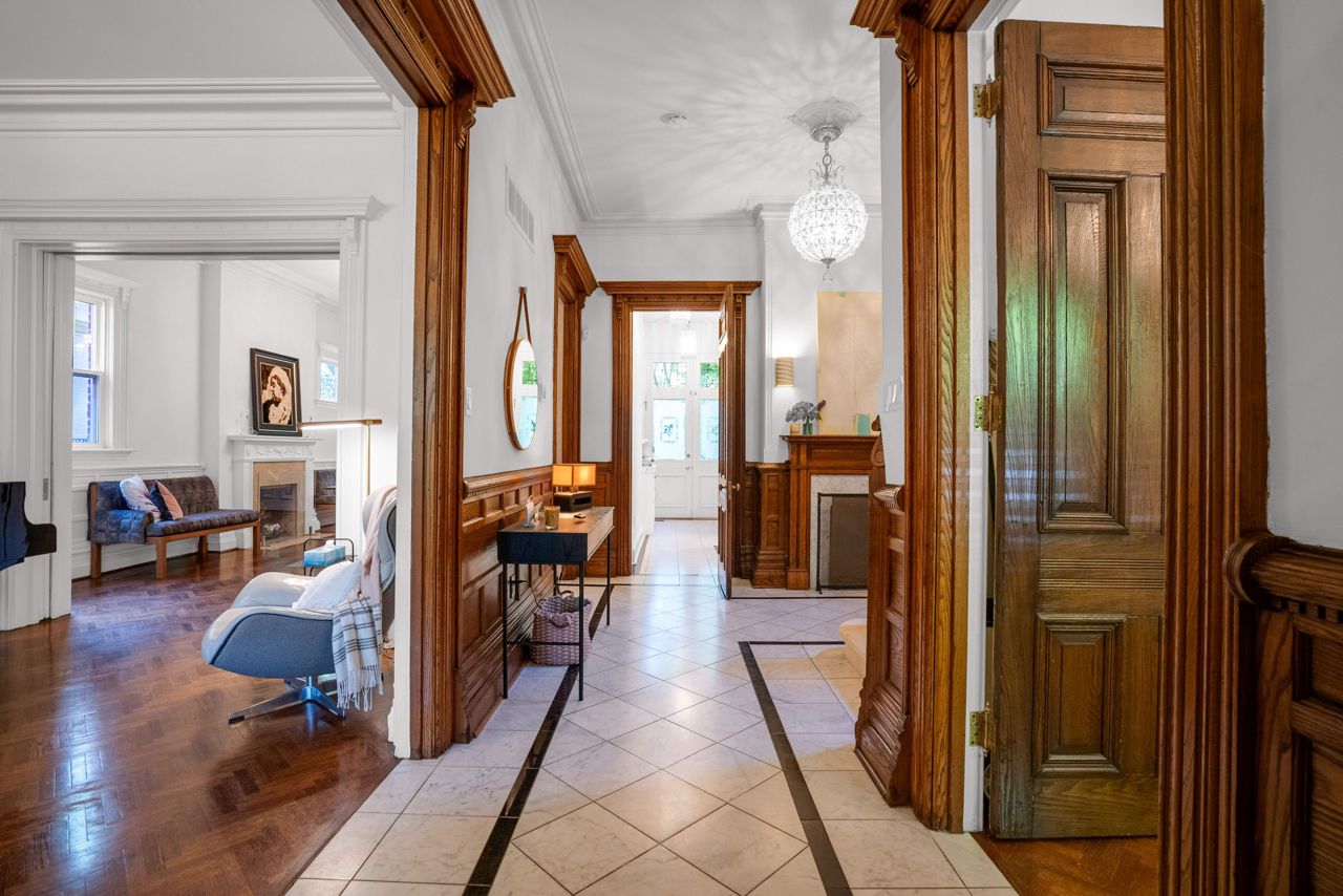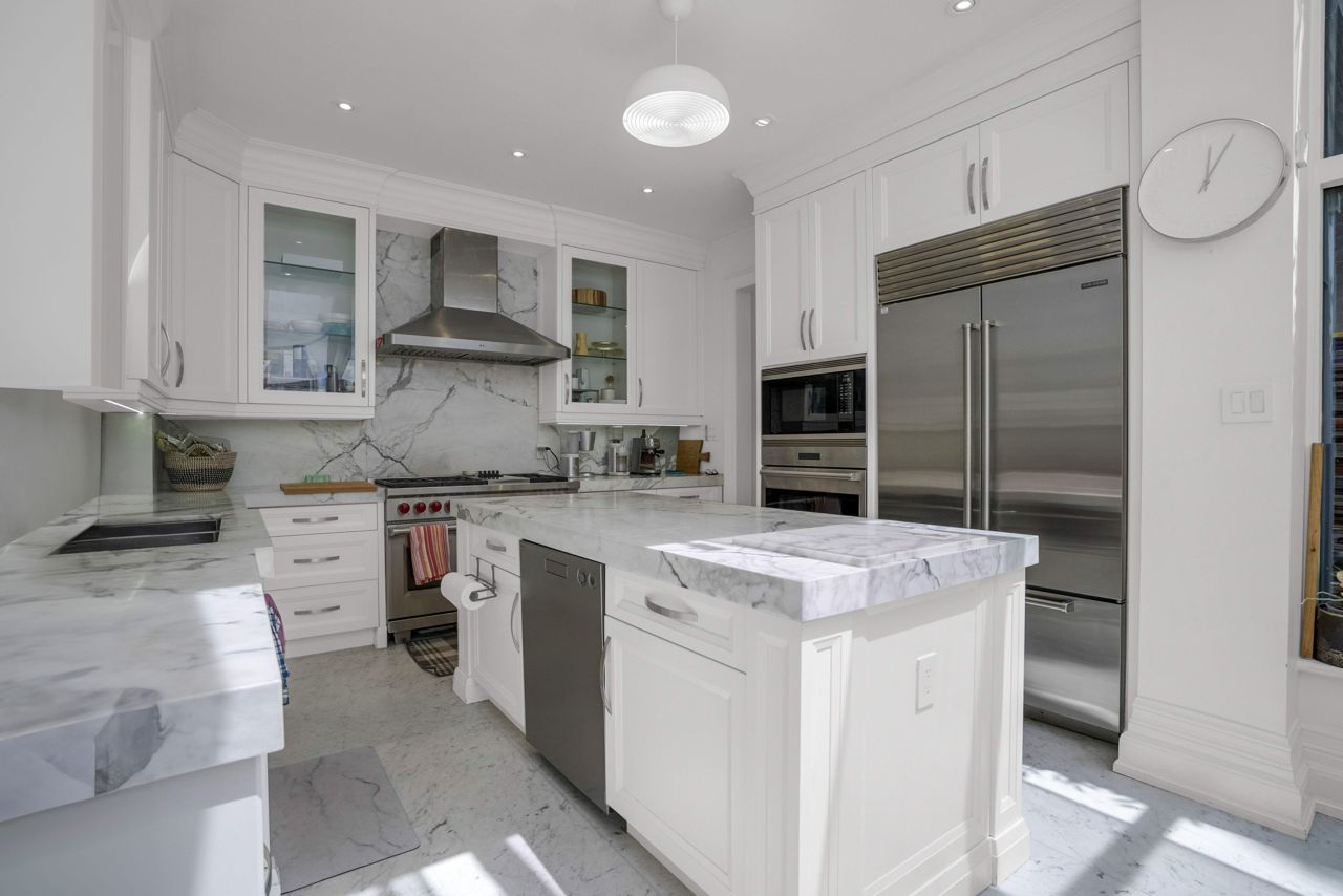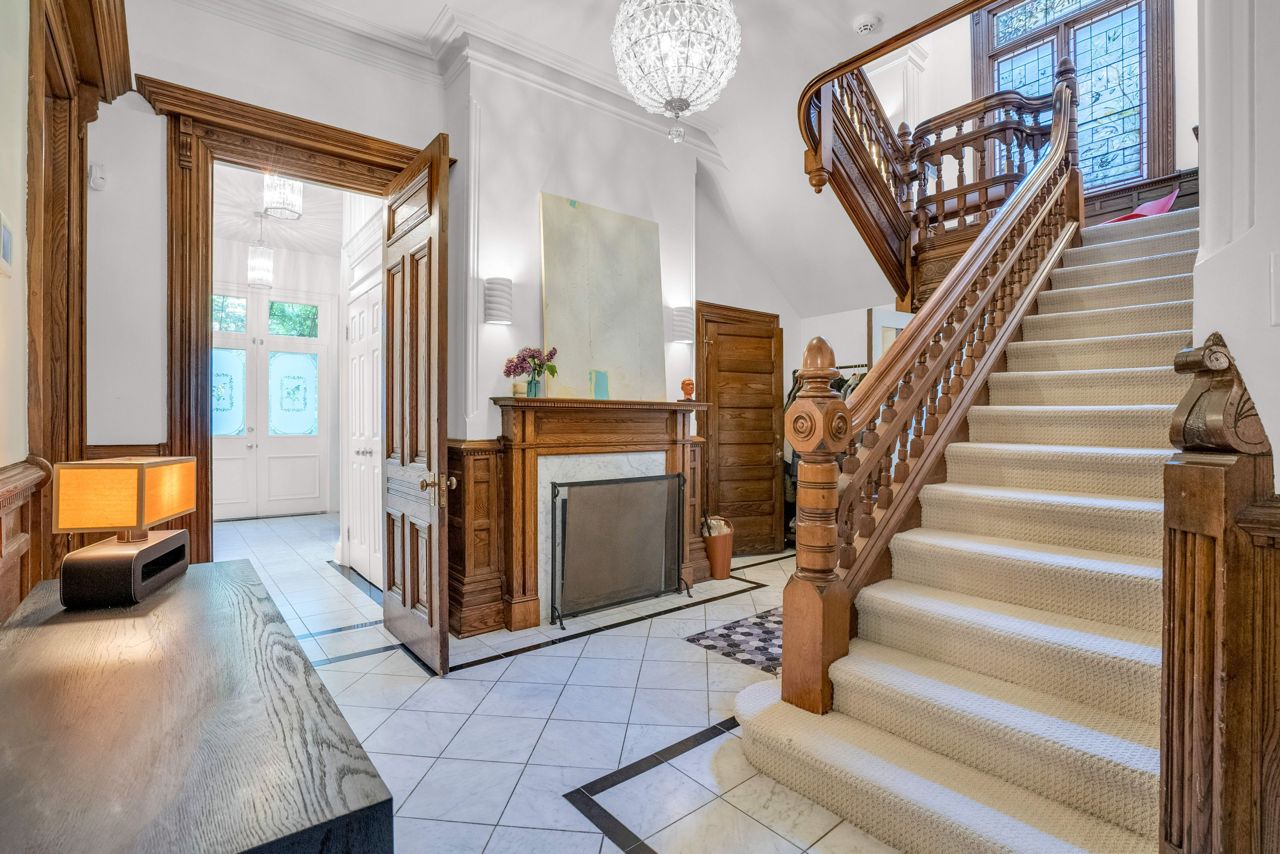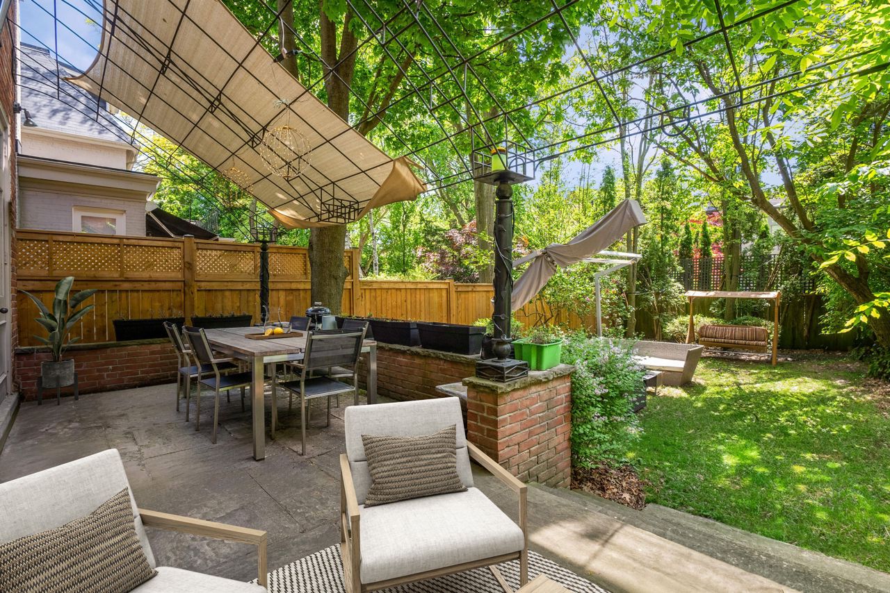 "Elm" brace Elegance in Rosedale - Grand Heritage Home with Private Drive and Two-Car Detached Garage. Step into elegance with this beautifully updated heritage home in prestigious Rosedale. This residence boasts a newly renovated marble kitchen, stone floors, and a separate pantry area. The grand center hall welcomes you with 11-foot ceilings, a library, and an open staircase featuring a hand-painted window. The home is adorned with magnificent architectural details throughout. Enjoy outdoor living with a grand walkout to a large stone terrace and a completely enclosed yard, perfect for privacy and entertaining. The fully finished basement, accessible via a side entrance, offers additional living space and versatility. Located within walking distance to esteemed public and private schools, as well as the shops and restaurants along Bloor Street, this home combines luxury and convenience in one of Torontos most sought-after neighborhoods.Equipped with a sprinkler and central vacuum system. Fully fenced garden accessible from kitchen, dining, and pantry areas. Grand entertaining rooms with 11-foot ceilings and working fireplaces.