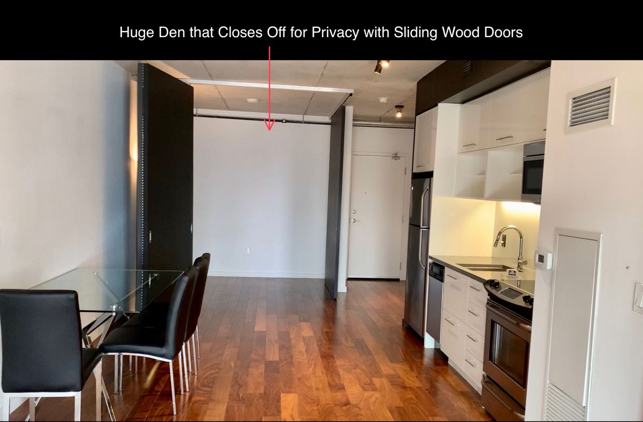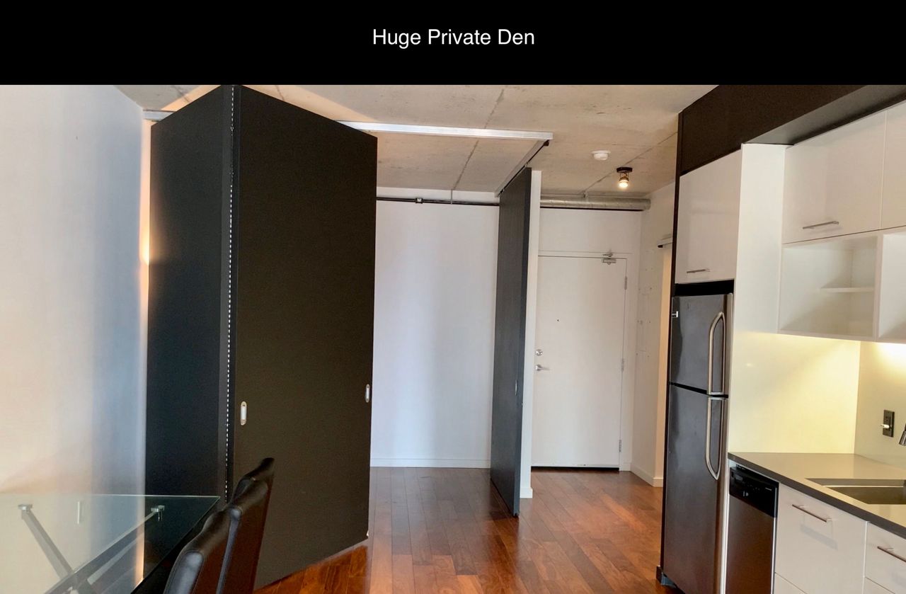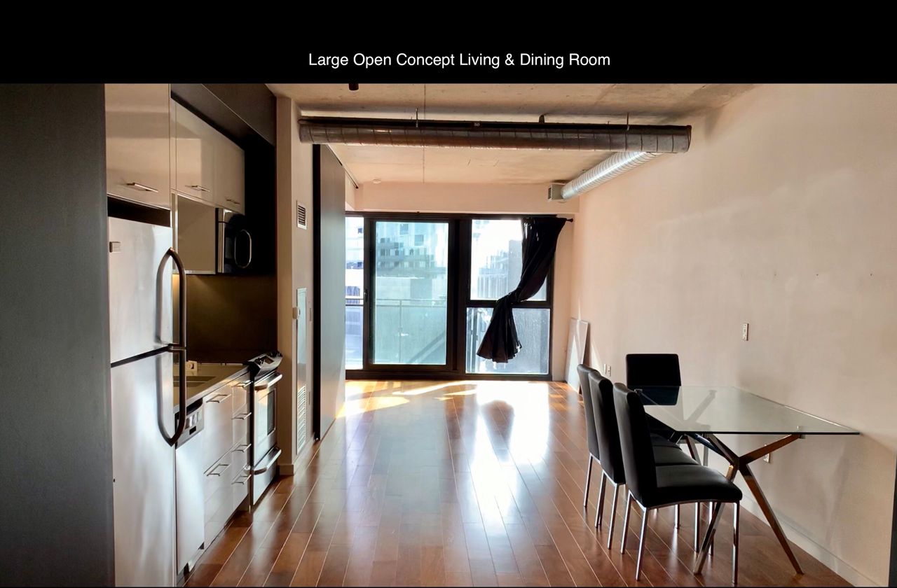 Modern Contemporary Loft Style Condo! Award Winning Building! River City Condo! 9 Ft. Exposed Concrete Ceilings! Approx. 800 Sq. Ft. Spacious 1 Bdrm + Large Den! Parking, Locker & Bike Rack! Hardwood Throughout! Steps To King Streetcar, Close To Leslieville, Cabbagetown, Distillery District, Corktown Commons Park (18 Acres) & Downtown Core!