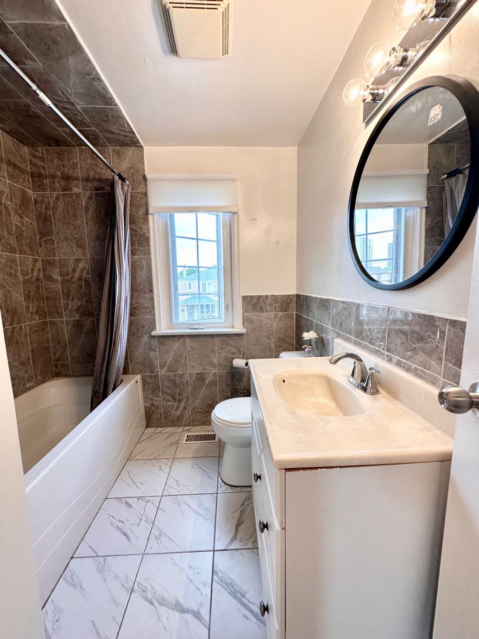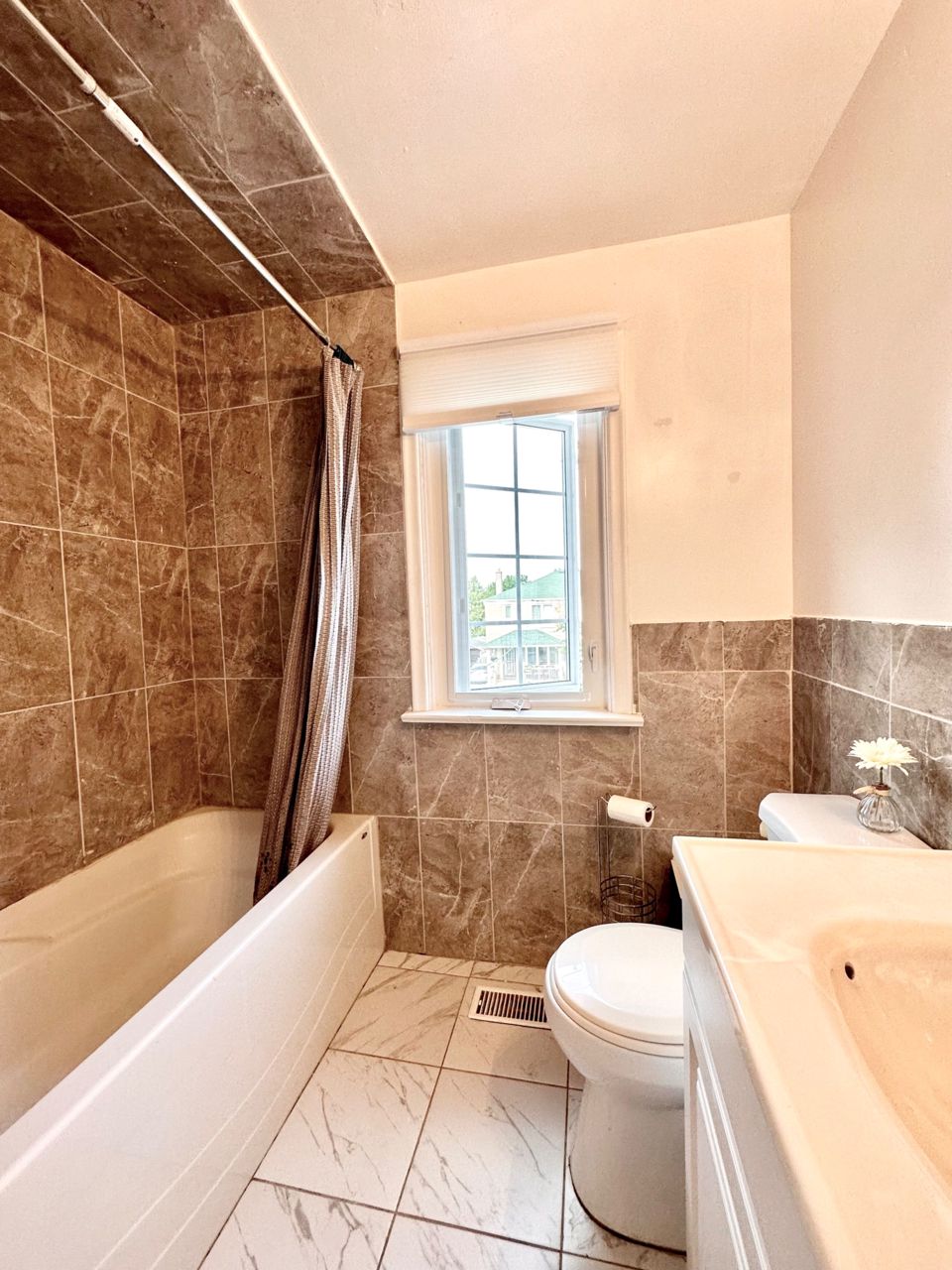 This semi is a fully brick, 3 bedrooms, 3 washrooms, full finished basement, conveniently located to all amenities, walking distance to Scarborough Junction, public schools, Bus stops, parks and grocery stores in a family friendly neighbourhood. Recently finished Kitchen with Quartz countertops and backsplash, pot lights, walk out to deck. Open concept living, dinning & Kitchen. Spacious living room with plenty of natural light in all bedrooms. 3 full washrooms, 1 on each floor. Laundry hook ups ready on the main floor, Separate basement entrance, with laundry full washroom, potential for extra rental income. A/C, Furnace & Hot Water Tank all owned. Plenty of private parking spaces.Stove, 2 fridges, 1 Microwave, 1 Washer, 2 Dryer, All ELFs, Central A/C. Furnace & hot water tank around 5 years old.