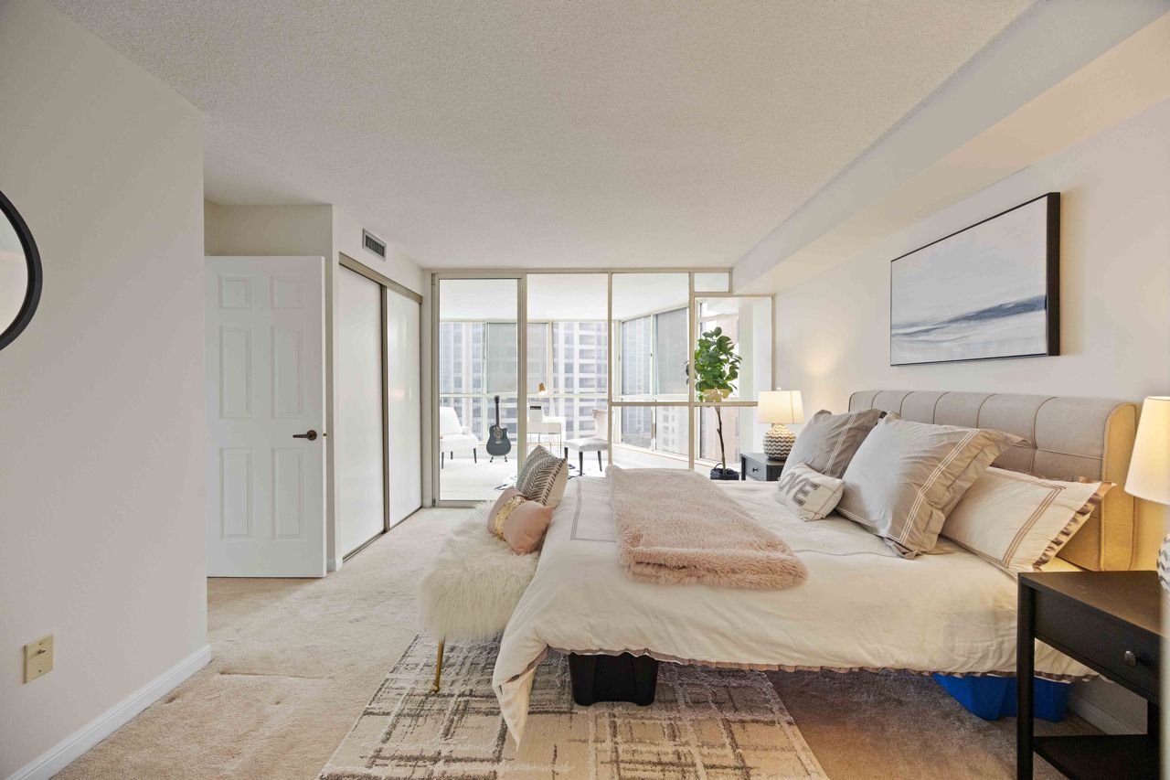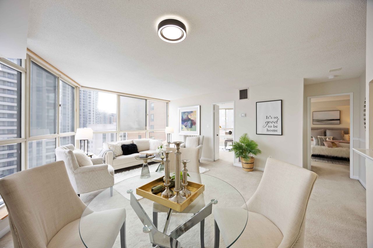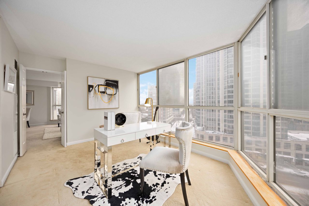 This extra large 1+1 unit is conveniently located in the center of North York. The unit is freshly painted throughout, with over 1100SQFT of natural lighting surrounded by large windows offering street views. It is steps from the subway, shopping, restaurants and entertainment. The master bedroom offers multiple closets, including a walk-in and a 4 pc ensuite and the den can be used as a second bedroom or office. Amenities includes: indoor/outdoor pools, tennis/squash courts, gym, guest suites, visitor parking, 24 security and more. **EXTRAS** All utilities are included in the maintenance fees, except for internet. Unit freshly painted from ceiling to walls to baseboards- Dec 2024. Carpet and unit professionally cleaned.