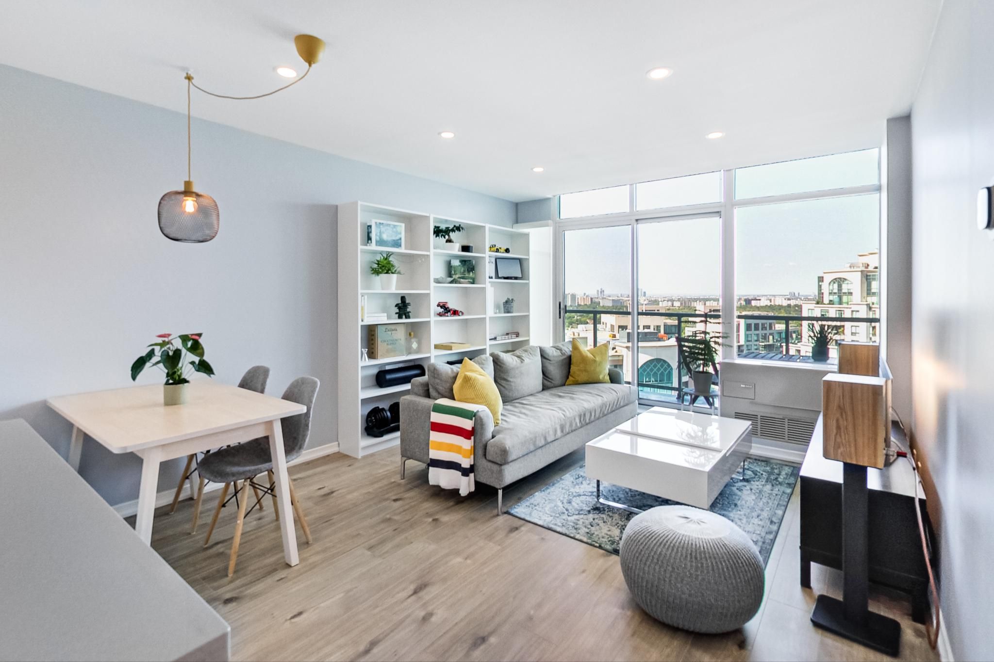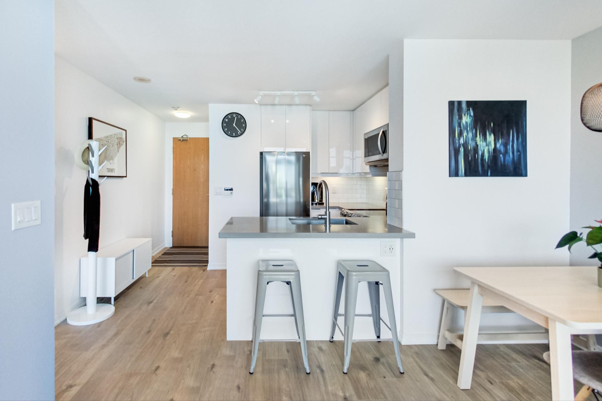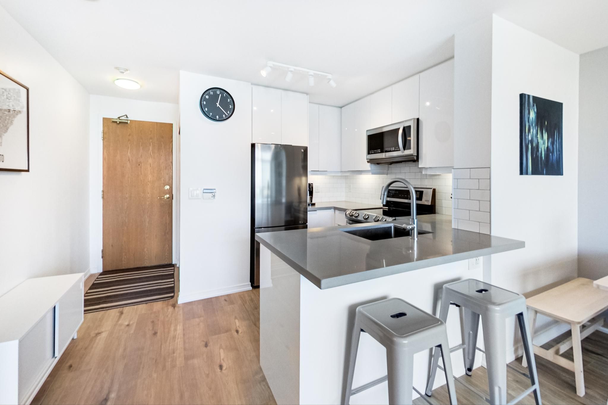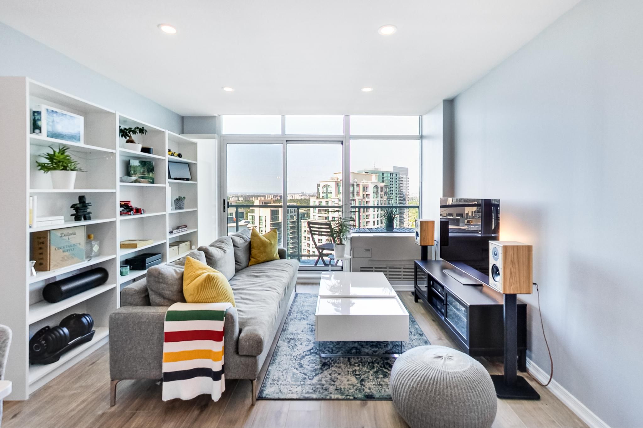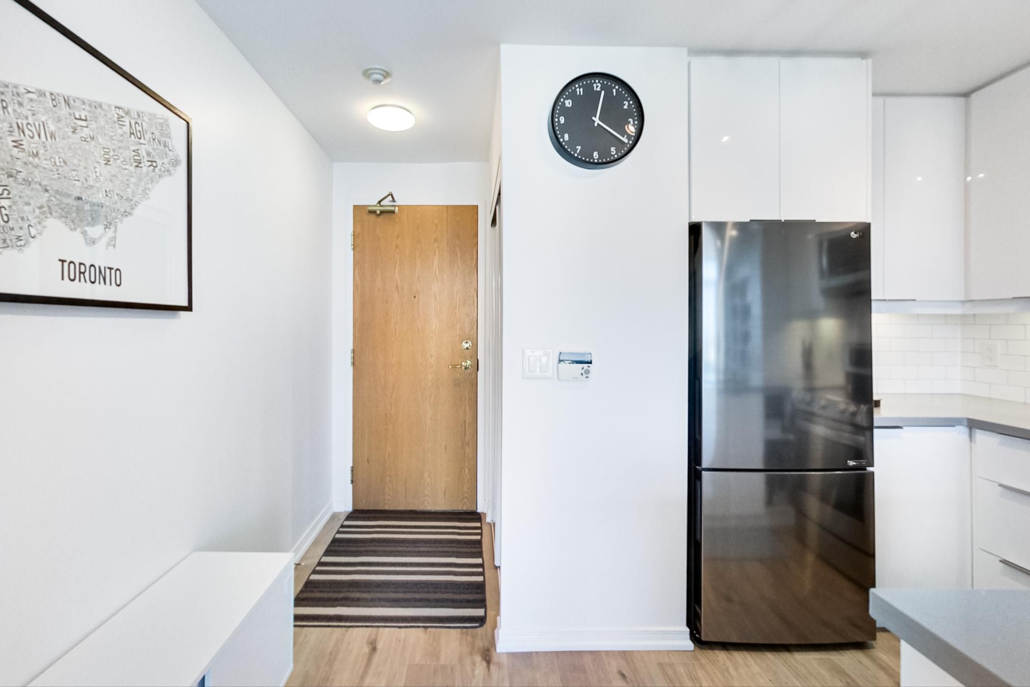 Meticulously renovated penthouse condo with thoughtful, custom improvements. The open-concept space is filled with light and features luxury AC5-grade laminate floors. The kitchen boasts ceiling-height cabinetry, quartz countertops, and stainless-steel LG appliances. Upgraded lighting transforms the space. The balcony spans the suite's length, offering unforgettable sunset views. The updated bathroom includes new fixtures, subway tile, and extra storage. The bedroom features a double closet, floor-to-ceiling windows, and custom roller blinds with blackout shades. One parking spot on P1 near the exit and a large, secure locker included. Prime location: 3-min walk to Finch Station (TTC, GO Bus), short drive to 401/407, walking distance to amenities and Don Trail. Efficient layout adapts to various needs. All improvements were made with condo board approval. This penthouse combines urban excitement with modern comfort, perfect for young professionals seeking a chic, move-in-ready home.Amenities Include: Concierge, Gym/Fitness Centre, Visitor parking, Party Room, Media Room/Theatre, Billiards/Games room, Guest Suites