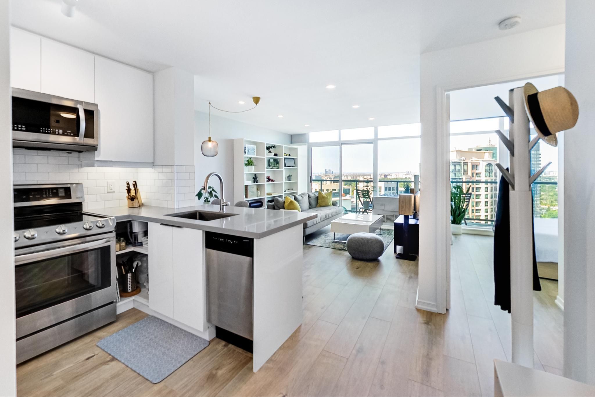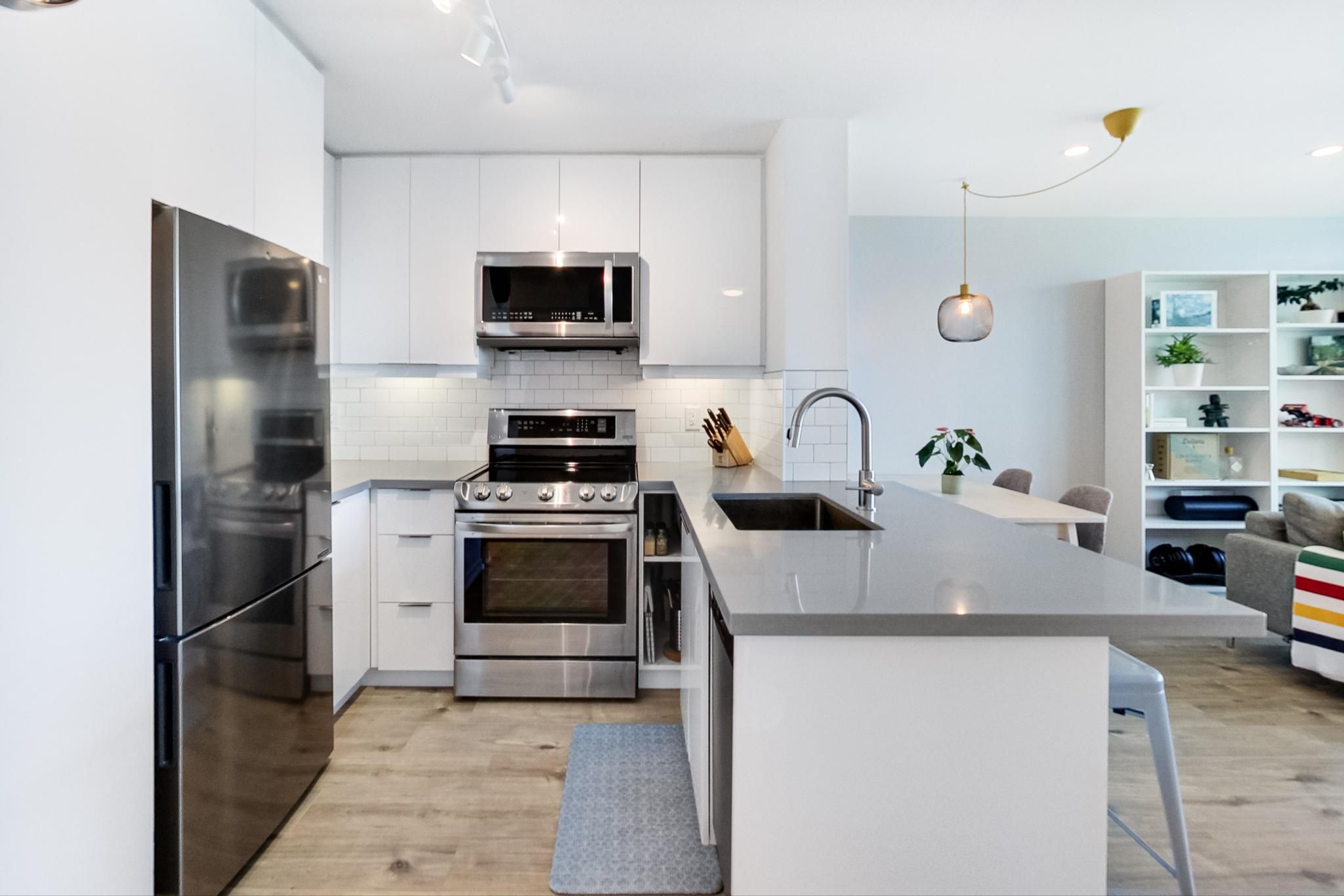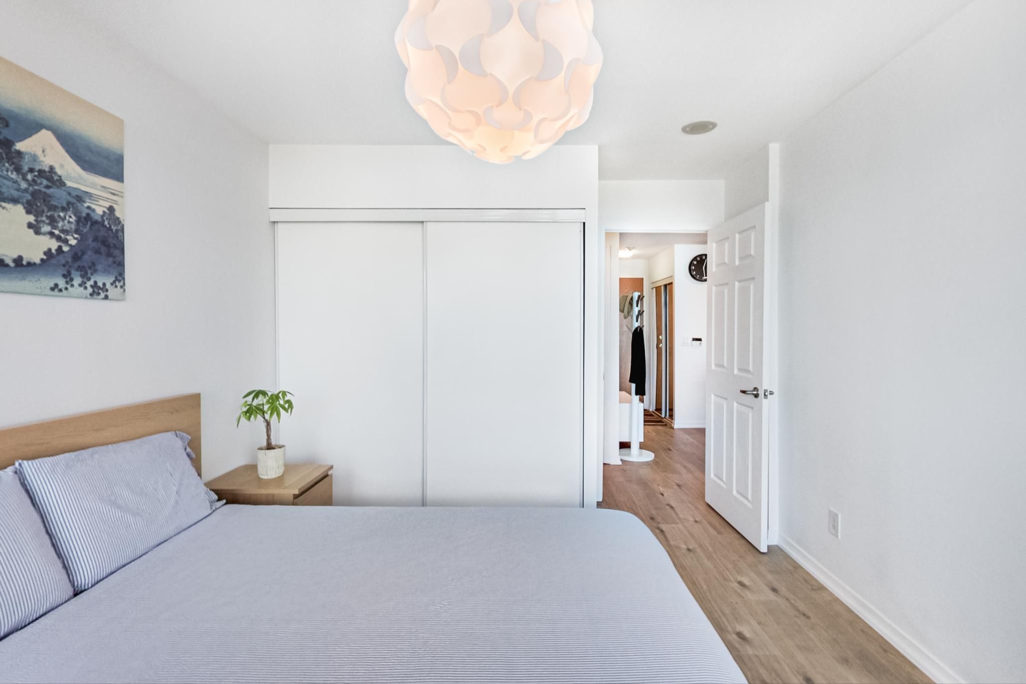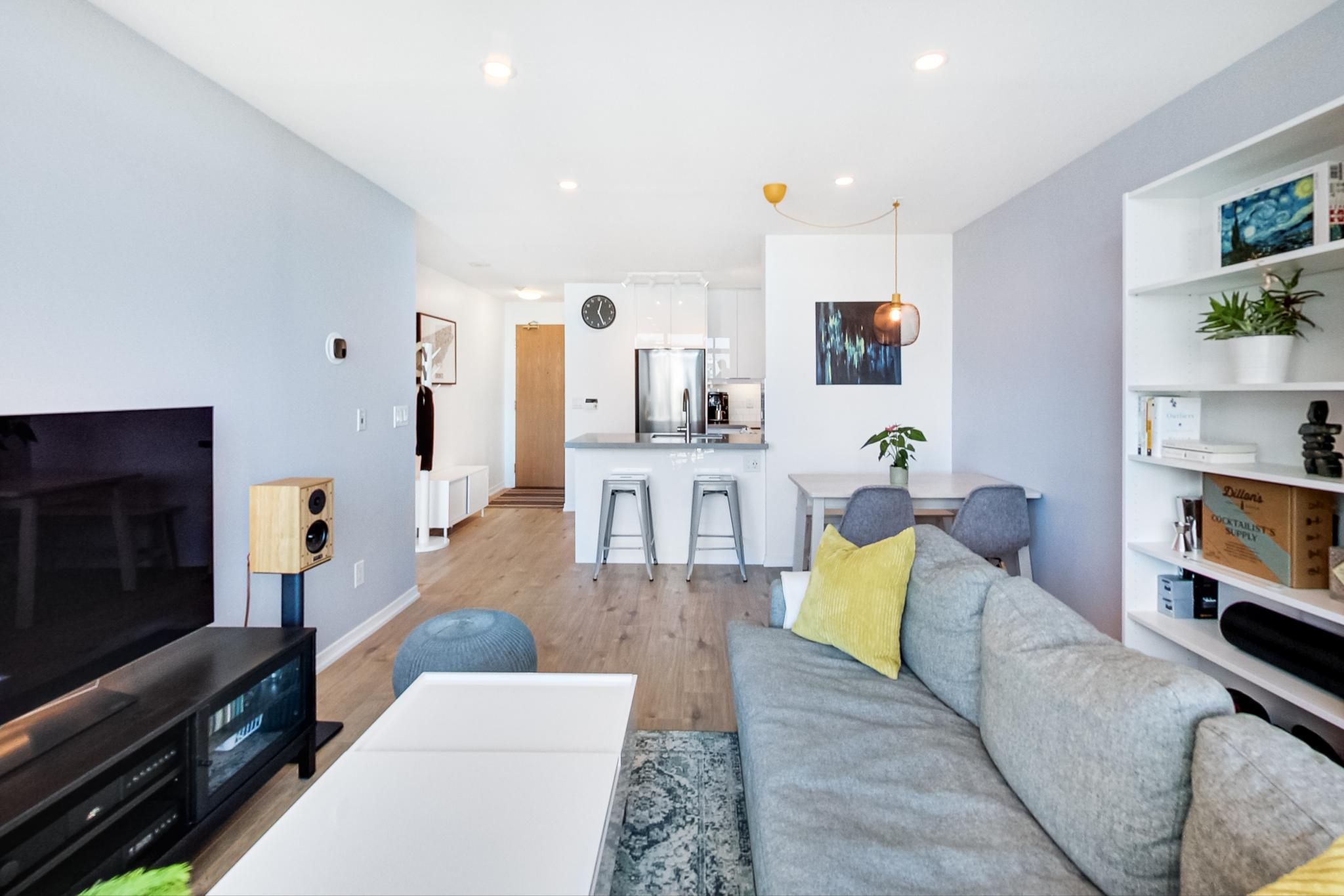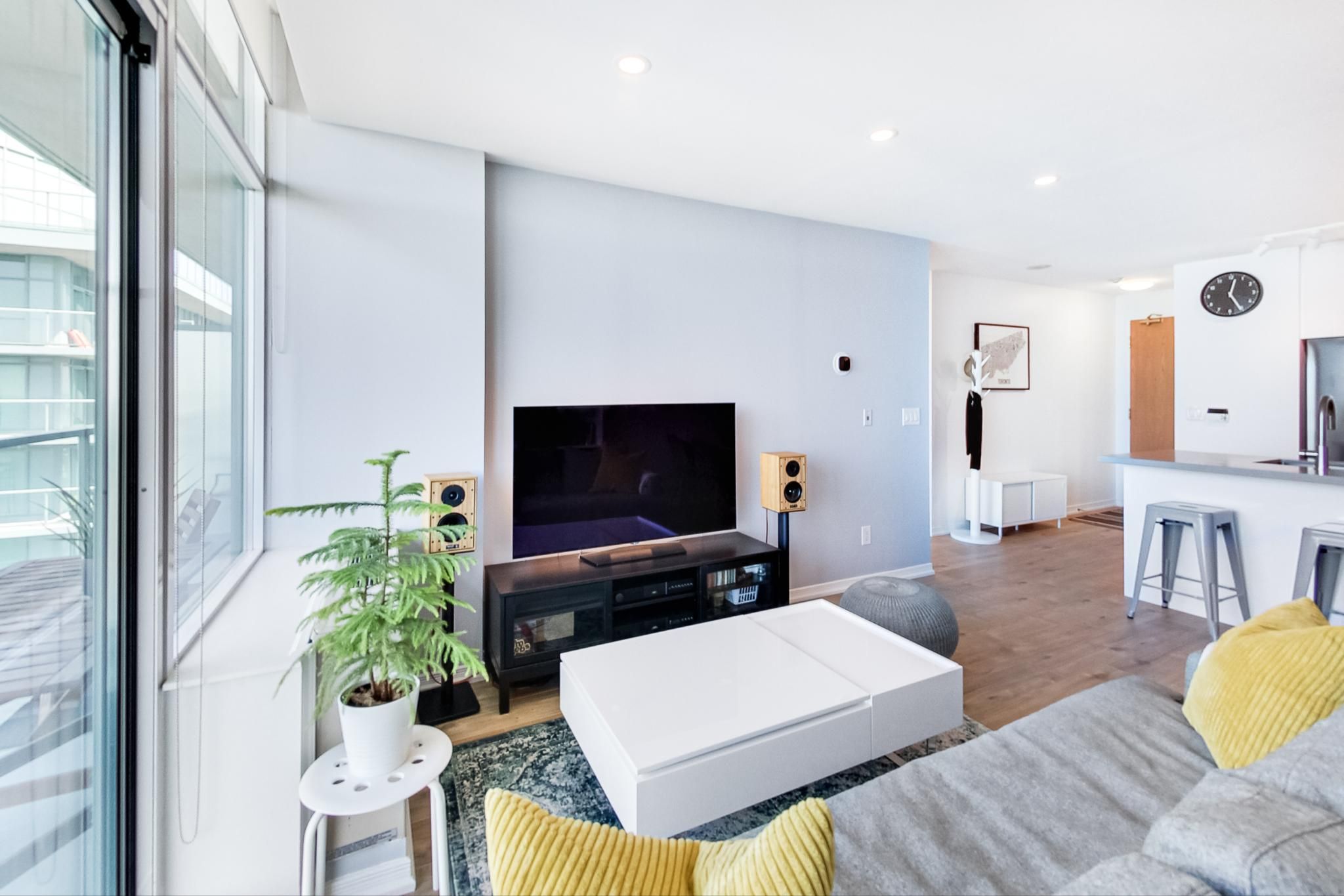Meticulously renovated penthouse condo with thoughtful, custom improvements. The open-concept space is filled with light and features luxury AC5-grade laminate floors. The kitchen boasts ceiling-height cabinetry, quartz countertops, and stainless-steel LG appliances. Upgraded lighting transforms the space. The balcony spans the suite's length, offering unforgettable sunset views. The updated bathroom includes new fixtures, subway tile, and extra storage. The bedroom features a double closet, floor-to-ceiling windows, and custom roller blinds with blackout shades. One parking spot on P1 near the exit and a large, secure locker included. Prime location: 3-min walk to Finch Station (TTC, GO Bus), short drive to 401/407, walking distance to amenities and Don Trail. Efficient layout adapts to various needs. All improvements were made with condo board approval. This penthouse combines urban excitement with modern comfort, perfect for young professionals seeking a chic, move-in-ready home.Amenities Include: Concierge, Gym/Fitness Centre, Visitor parking, Party Room, Media Room/Theatre, Billiards/Games room, Guest Suites