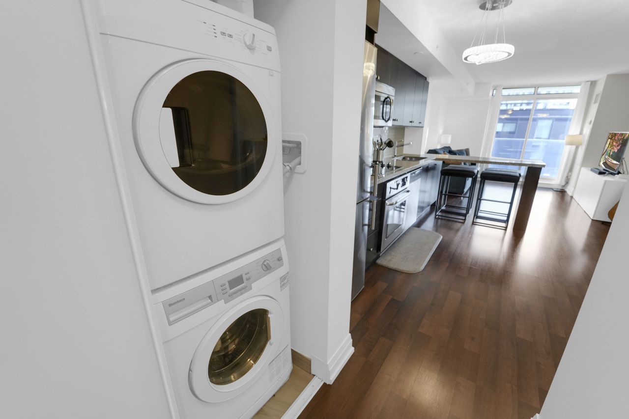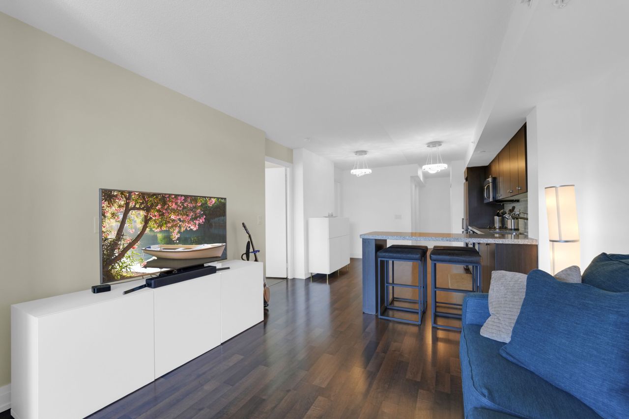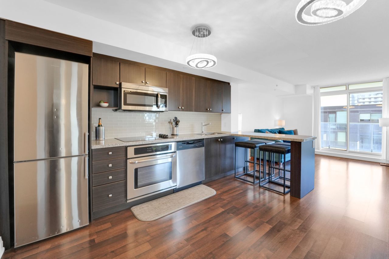 Experience the allure of Station Condos with this exquisite 2-bed, 2-bath corner unit flooded with natural light and boasting sought-after south-west exposure. This sun-filled residence features a spacious layout with floor-to-ceiling windows on two sides, complemented by a large balcony offering expansive views.The kitchen is equipped with quartz countertops, a breakfast bar, and stainless steel appliances, seamlessly blending into the dining and living areas for both comfort and practicality. The primary bedroom is generously sized, accommodating furniture or work-from-home needs, and includes a sizable closet, balcony access, and a private ensuite with a large shower and rare floor-to-ceiling window.The second bedroom offers ample closet space and bright windows, while a spacious foyer provides additional storage and includes in-unit laundry facilities within a large double closet. Premium laminate flooring spans throughout the unit, enhancing its contemporary appeal.Residents of Station Condos enjoy peace of mind with a 24-hour concierge and access to resort-style amenities, including an indoor pool, sauna, gym, meeting room, party room, and a rooftop deck with BBQs - an ideal environment for relaxation and entertaining.Perfectly situated just steps from Wilson subway station, "The Station Condos" provide exceptional urban accessibility. Commuters will appreciate the convenience of nearby Hwy 401 & Allen Rd. Plus, enjoy proximity to Yorkdale Mall, Costco, Home Depot, Best Buy, and a variety of dining options, ensuring a lifestyle of convenience and luxury.