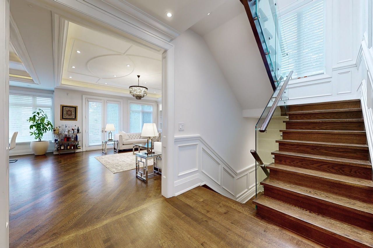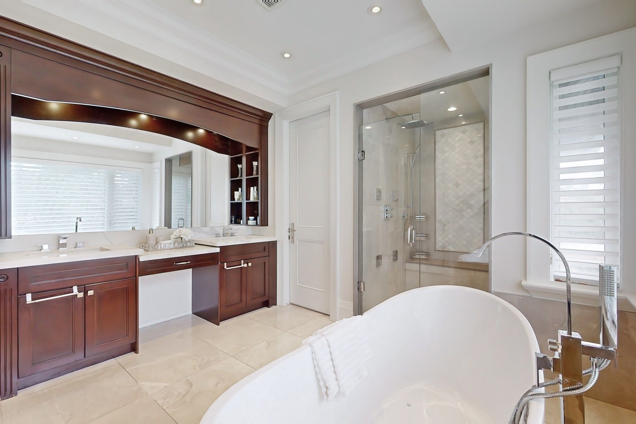 Exquisite And Luxurious Custom Res W Ravishing Indiana Lime Stone Ext and Cedar Roof. Approx 4849 S.Ft Of Luxurious Finishes And Features . Out Standing Layout/Elegant Workmanship. Gorgeous Foyer W/ Over Sized Porcelain Slab. Soaring Ceiling In Main Floor & Library. Elaborate Gourmet Kitchen With Over-Sized Island & Breakfast Area. Spacious Master Bedroom , Offers Huge Closet & Opulent 6 Pc Ens. Wet Bar & Nanny's Suite. 2 Car Garage, Heated Driveway roughed in .Top Of the line app App. Radiant Heated Floor In Master Bath, Main Foyer and Bsmt .Underground Sprinkler System, Sec System .All Light Fixtures. Steps to Gwendolen Park and Earl Bales Park .