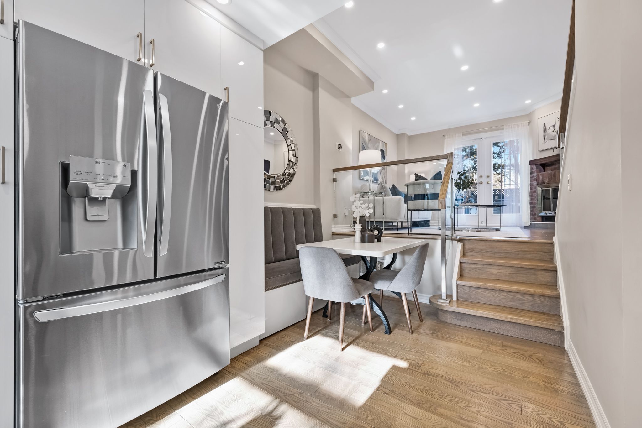 Beautiful Semi Renovated from Top to Bottom on A Pretty Tree Lined Street That's A 5 Min Walk to The Danforth & Subway. Bright Open Concept Main Floor with A Gorgeous Kitchen with Modern Fixtures & Italian Backsplash. Built In Banquette (Has Storage) With Custom Table & Two Chairs. Elegant Living Room with Glass Railing, Brick Fireplace, & French Doors Leading to A Private Deck, Ideal for Entertaining. A Custom Walnut Mantle Caps a Working Fireplace for Winter Ambiance. The Main Bath Was Renovated with Custom Cabinets, A Heated Floor and Towel Rack, & Quality Fixtures. Great Location. Great Location for Transit Access, Restaurants & Parks.S/Steel LG Fridge, Stove, Bosch D/W, F/Load Washer & (Steam) Dryer, Built In Banquette W/Storage, Custom Breakfast Table & 2 Chairs, All ELF's, CAC, Nest Thermostat, Ring Doorbell & Alarm, T. V. Bracket & Built-In Shelving Under T.V.